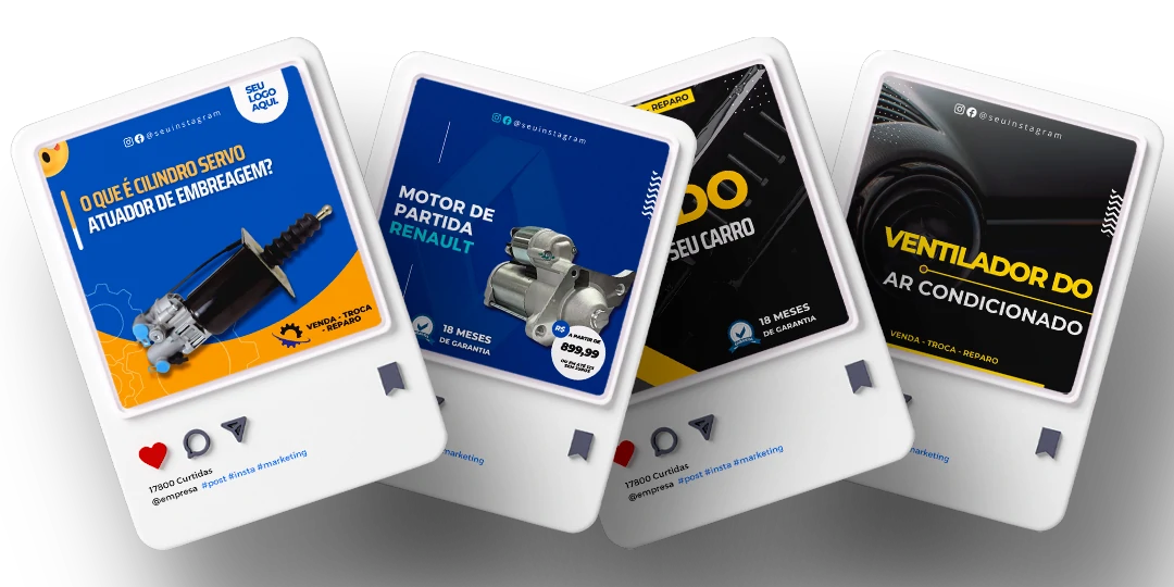 Pack de Posts Prontos – Oficina Mecânica – Auto Peças – Photoshop