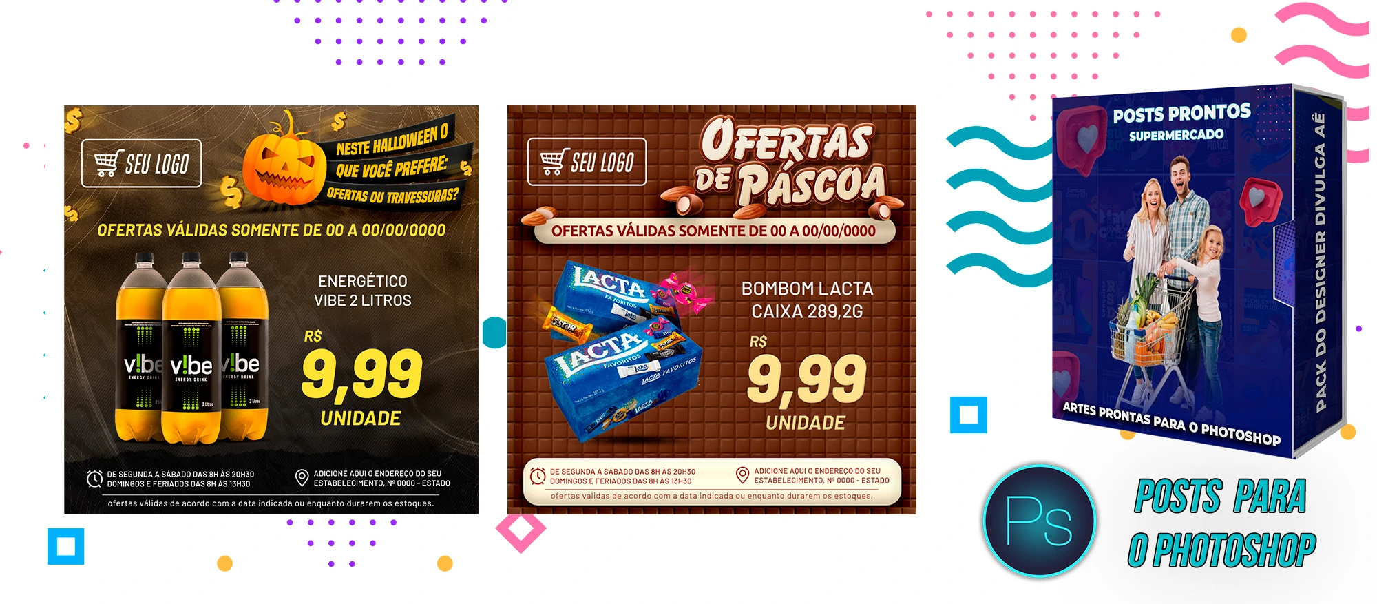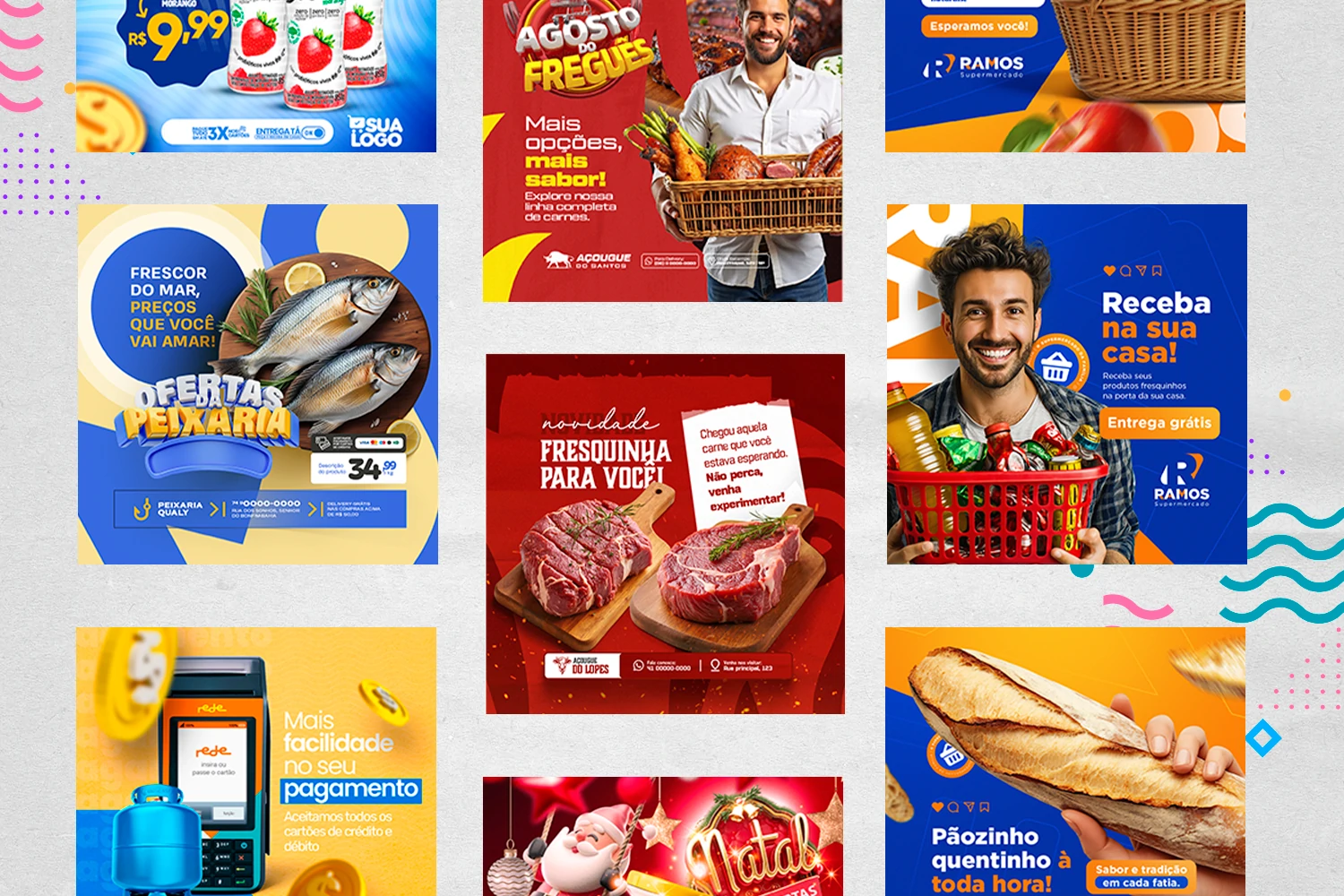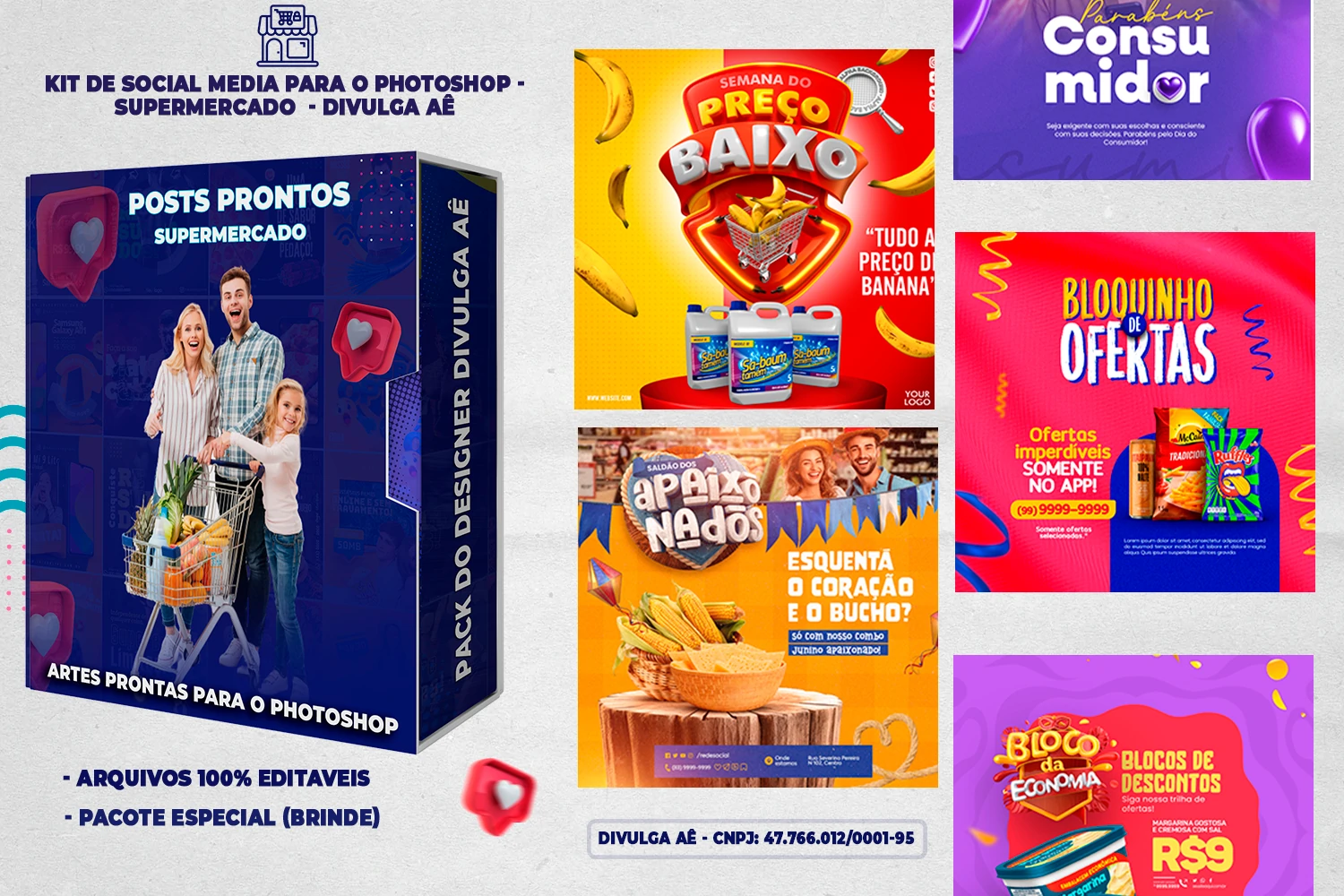 🛒📢 Pack elaborado sob demanda com centenas de artes e encartes para Supermercados, ideal também para designers que precisam criar posts de forma rápida e prática. Basta editar os arquivos no Photoshop, inserir a marca, alterar o nome e adicionar o WhatsApp — tudo em poucos segundos! ⚡