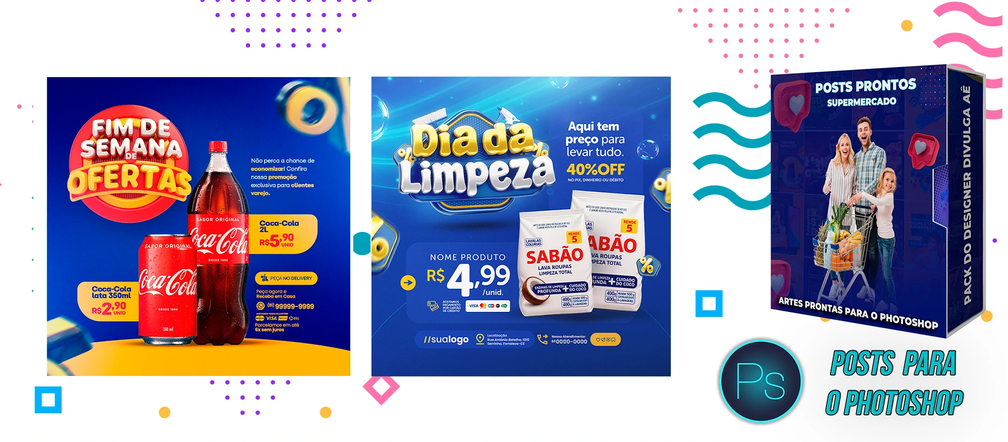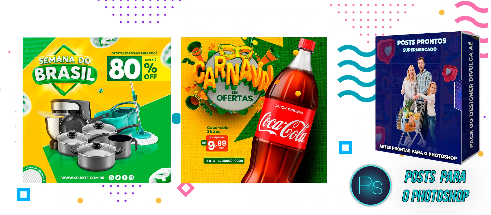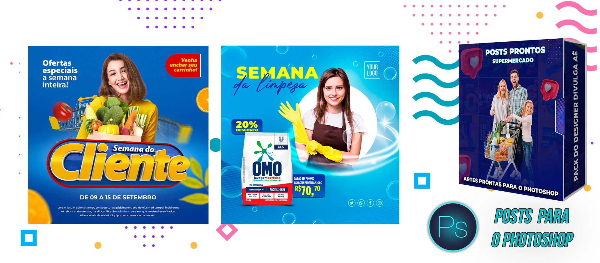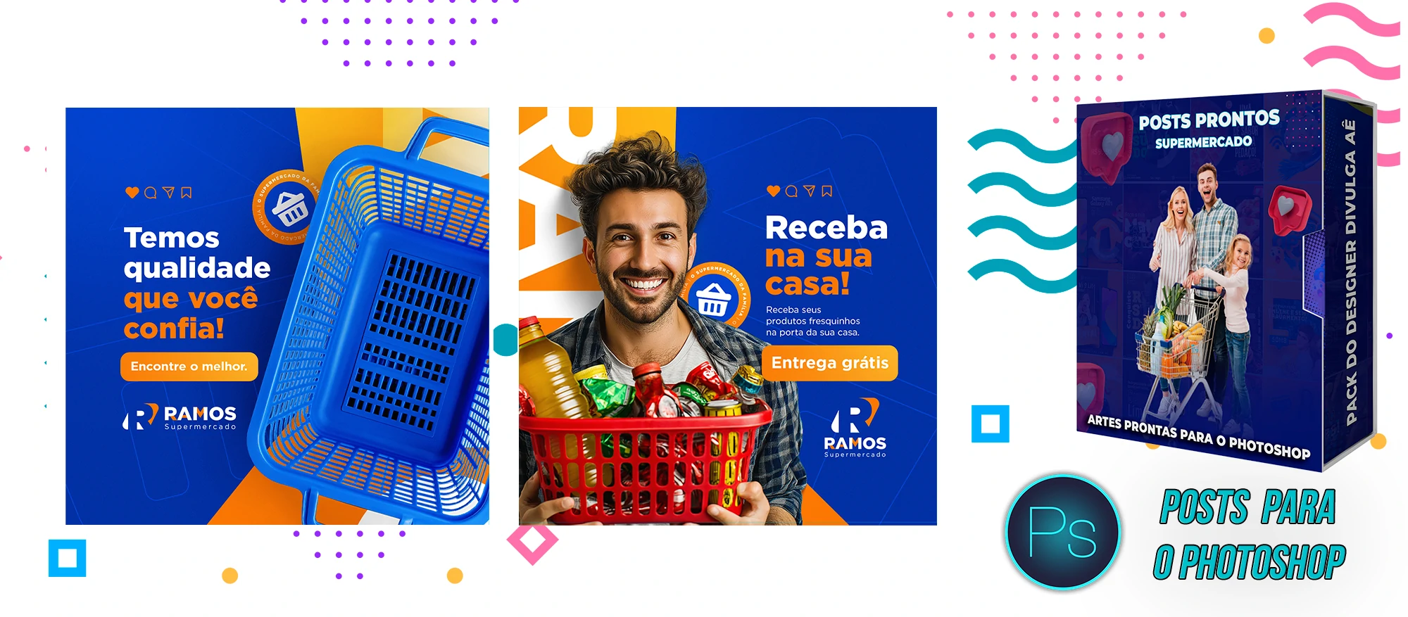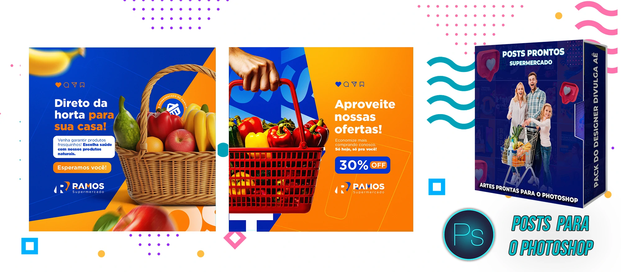 Mega Pack de Social Media – Supermercados no Photoshop