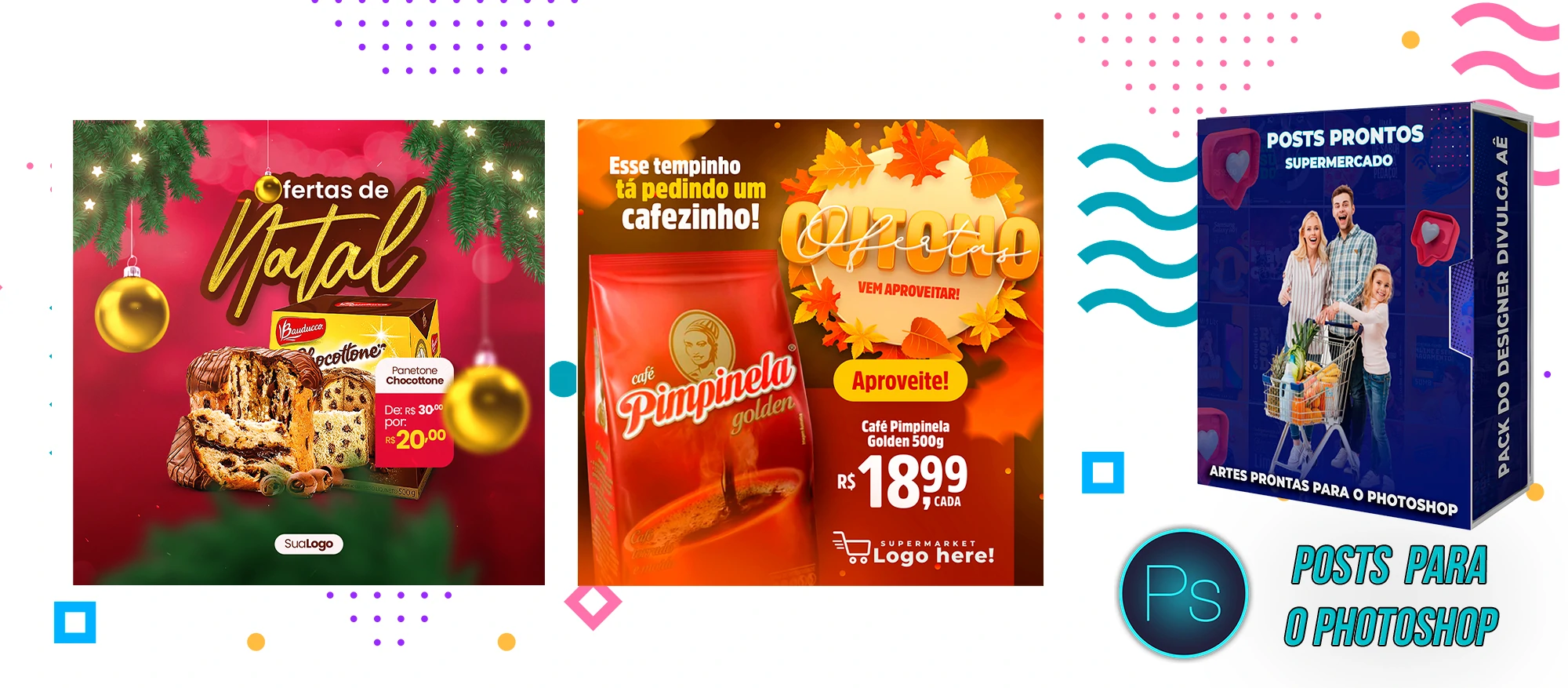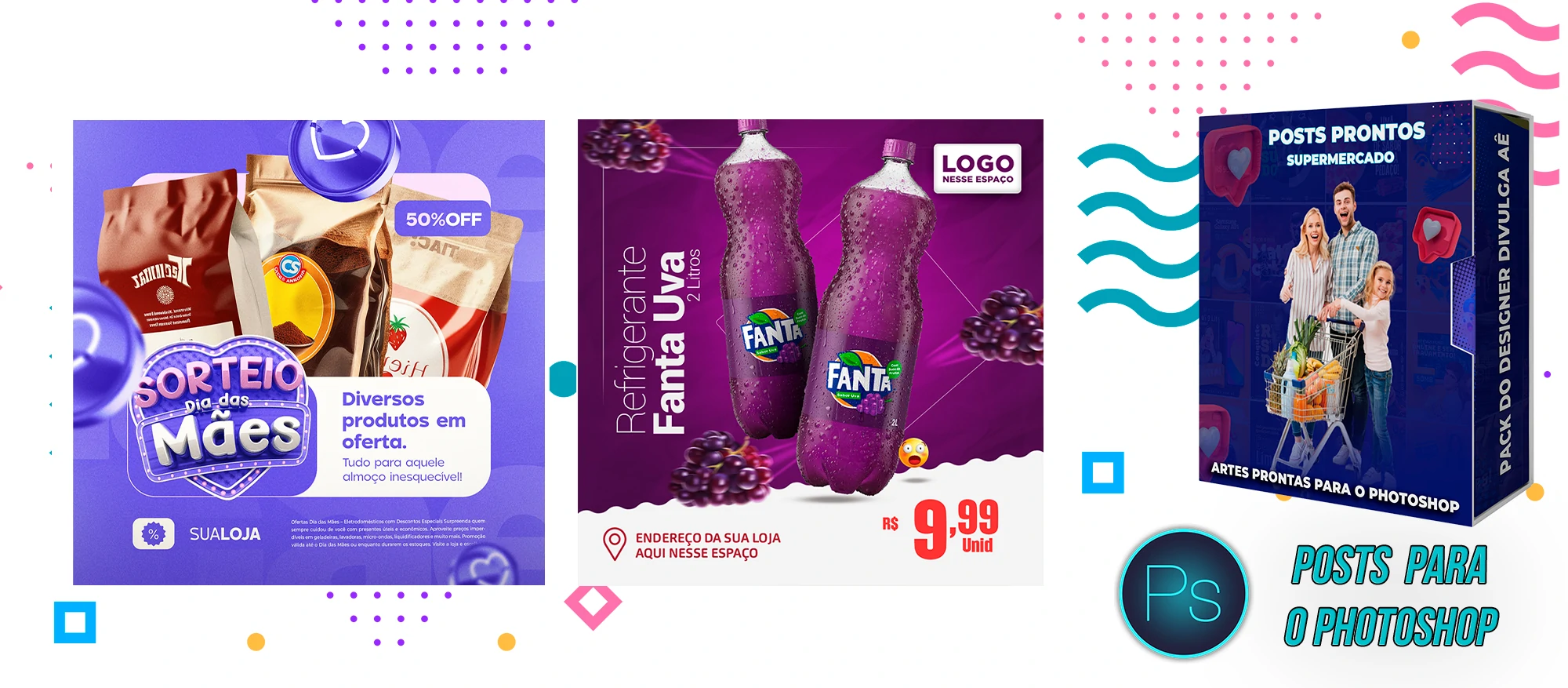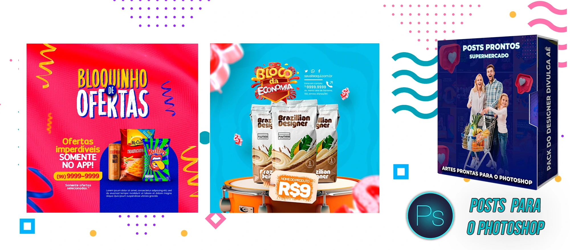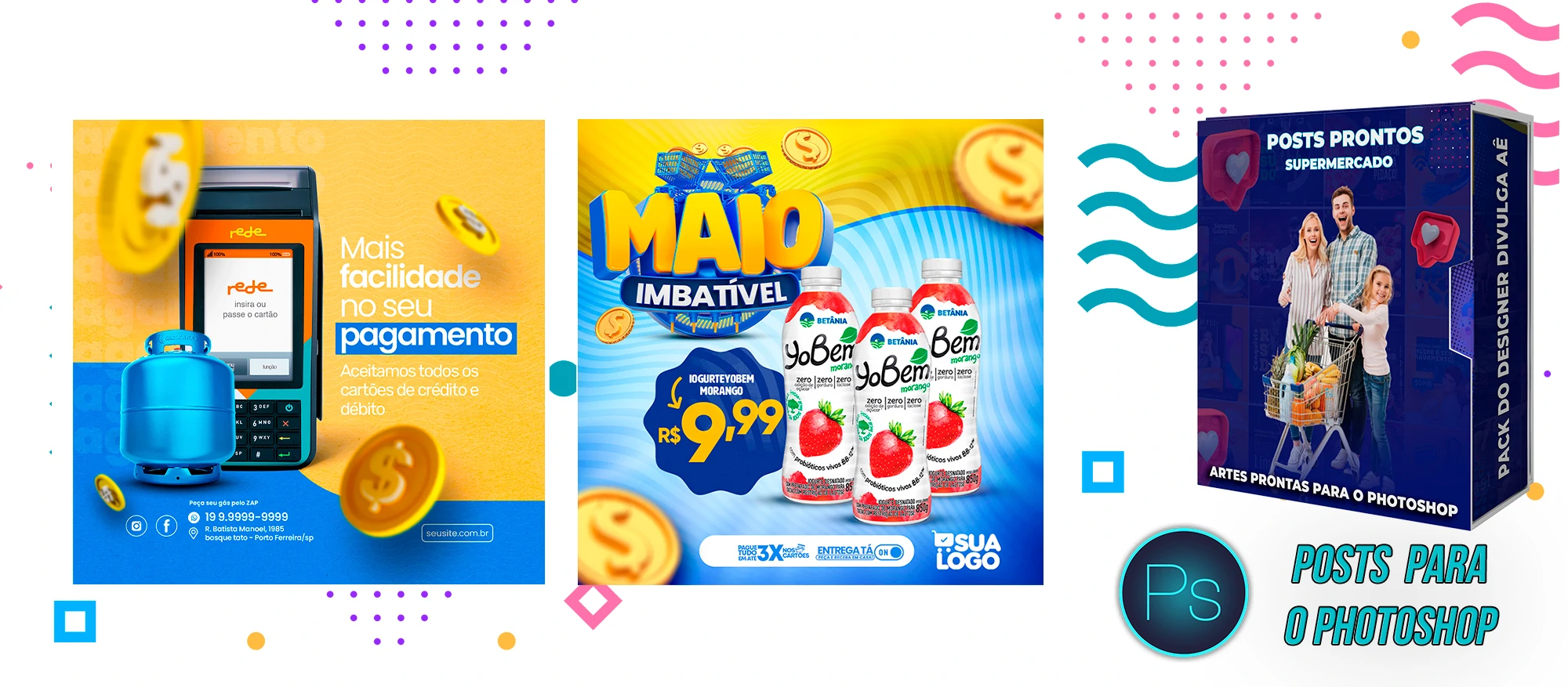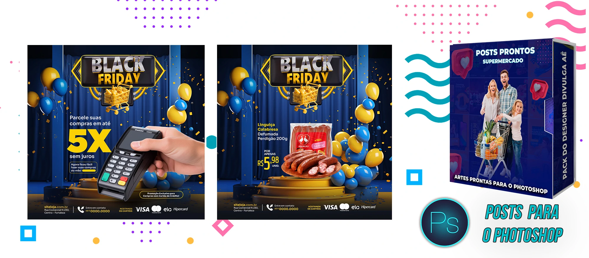 Mega Pack de Social Media – Supermercados no Photoshop