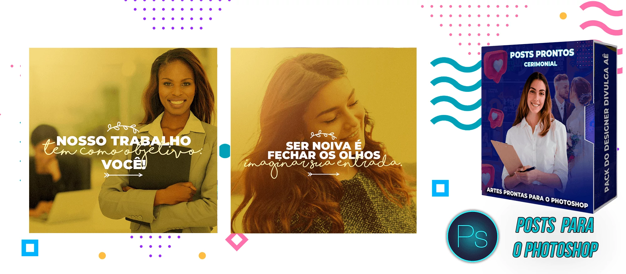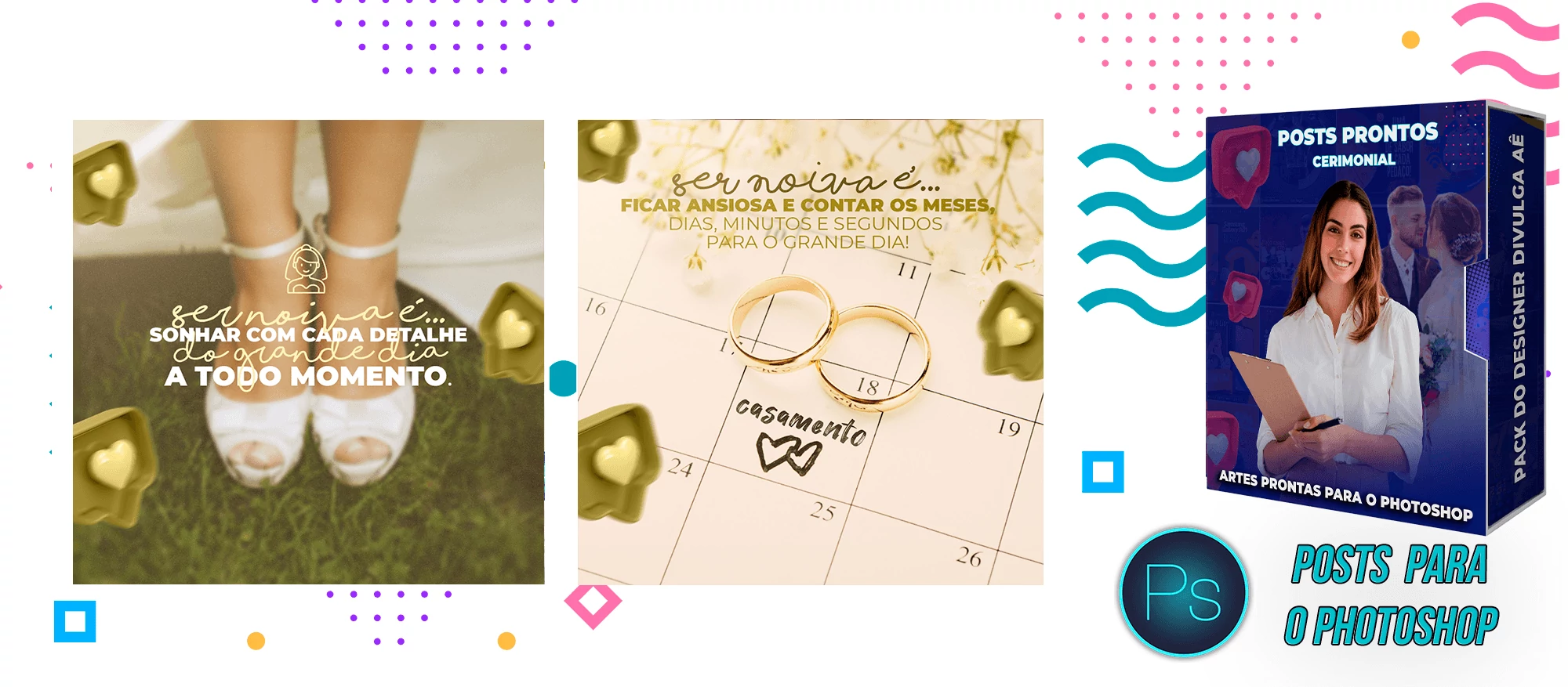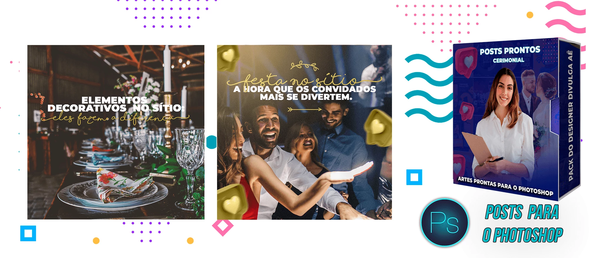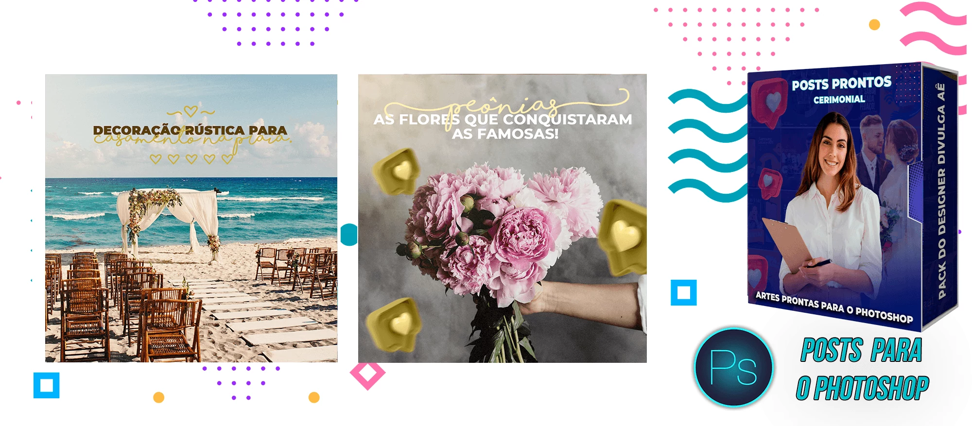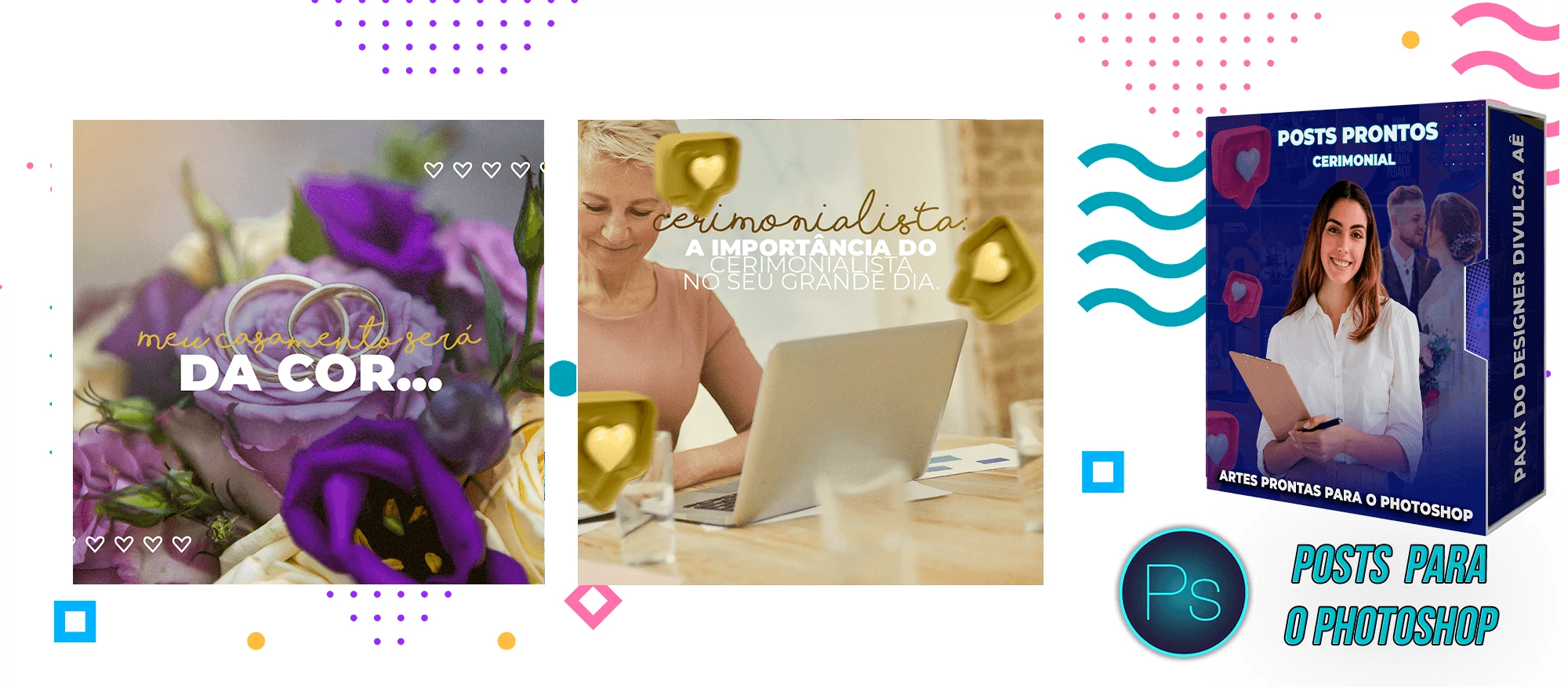 ✅ + Pack de Posts com 130 Artes Editáveis para Organização de eventos e Cerimonial