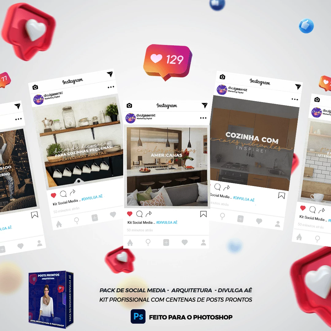 Pack de Posts Prontos com 130 Postagens elaborado sob demanda para empresas de Arquitetura. Bastando apenas possuir o Photoshop para editar os Arquivos colocar a marca da empresa, alterar o nome, e adicionar o WhatsApp, tudo em poucos segundos!