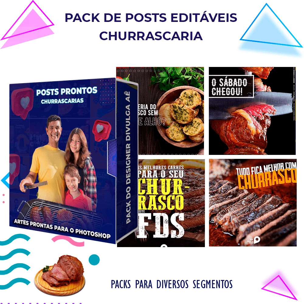 ✅ Pack com mais de 250 Posts Prontos para Churrascarias.