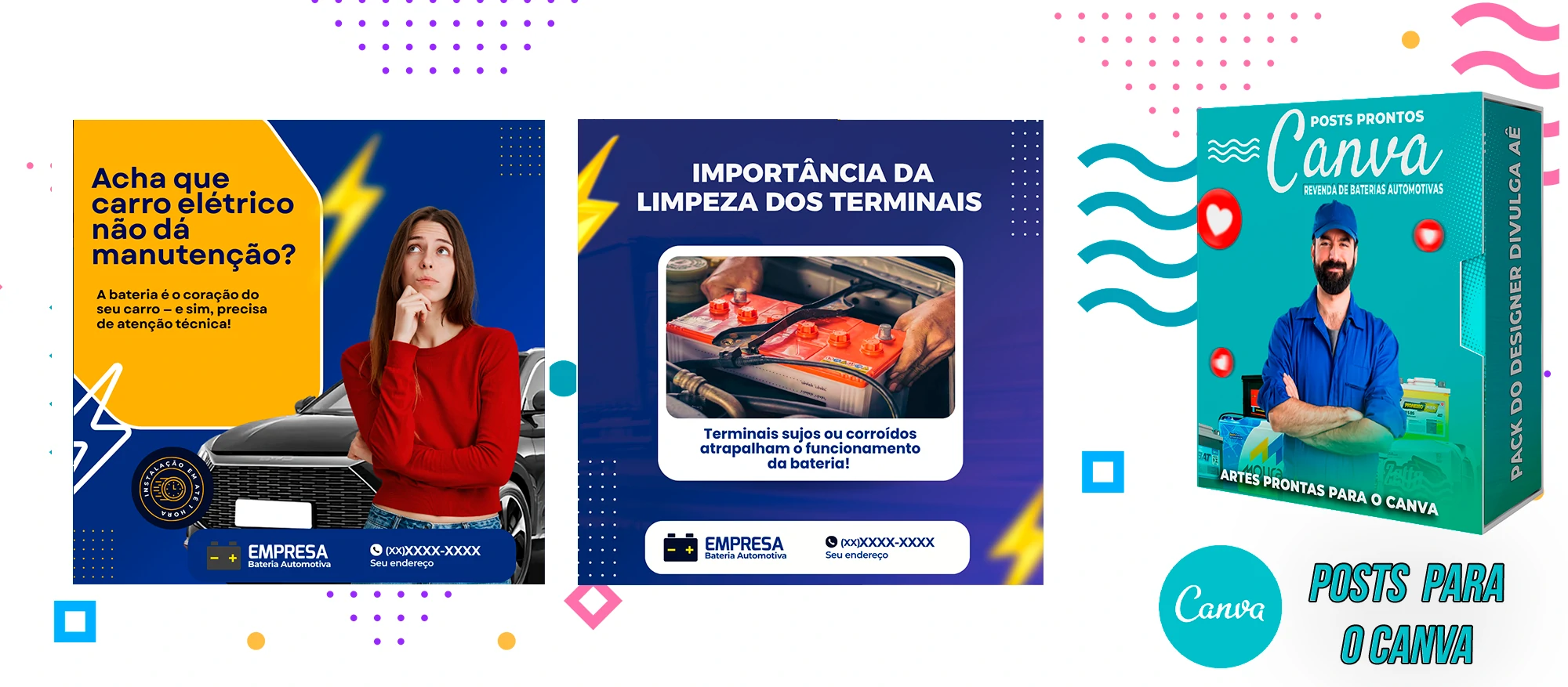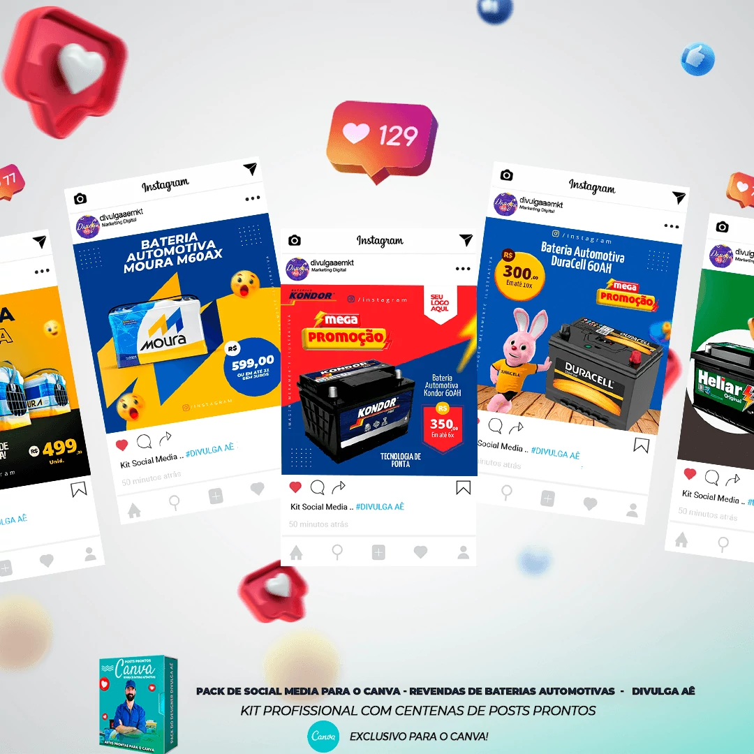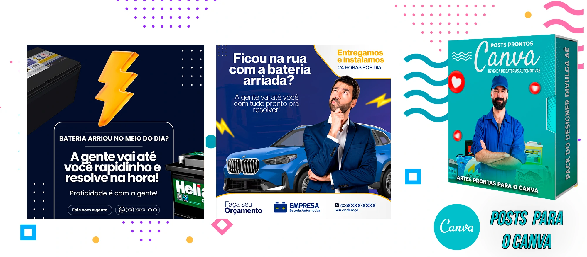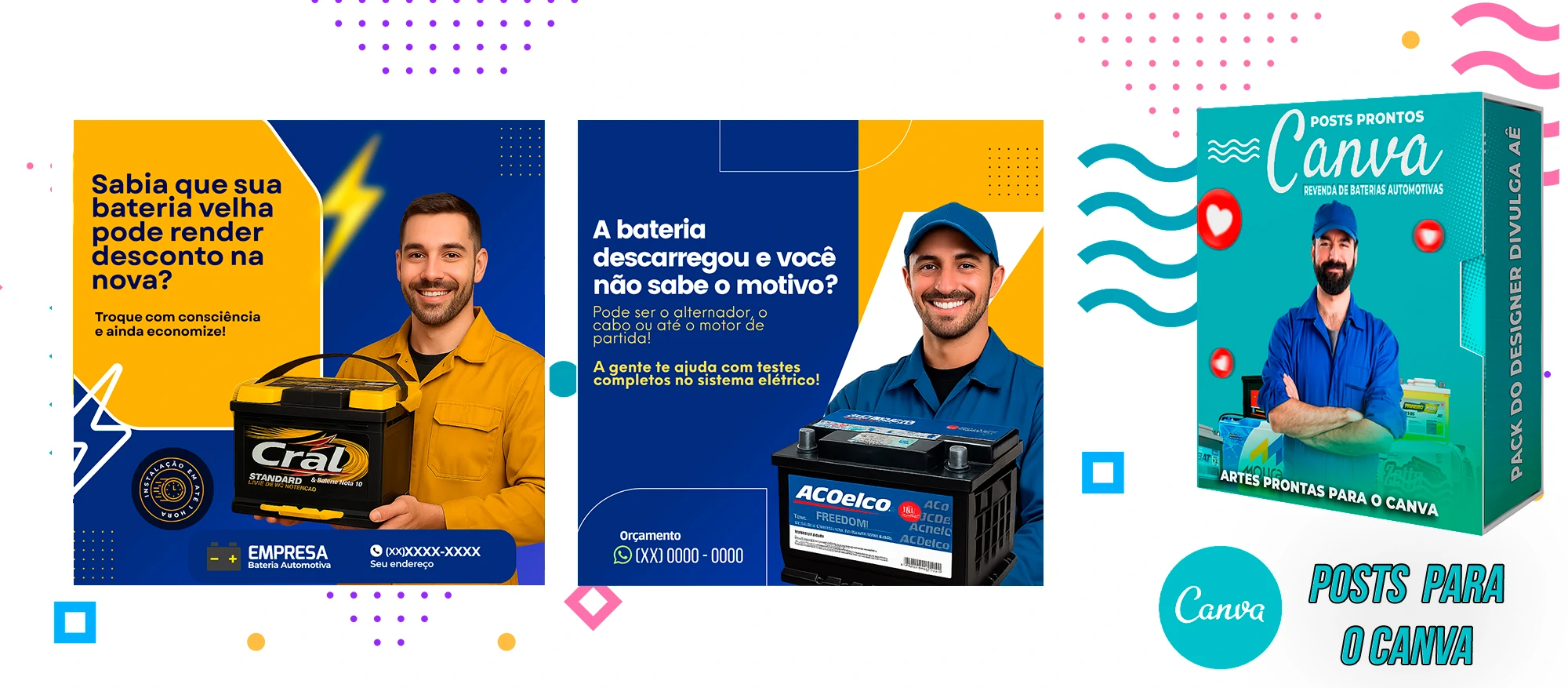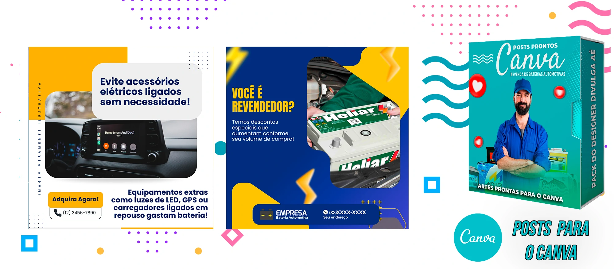 Pack De Posts Prontos para o Canva – Revendas de Baterias Automotivas