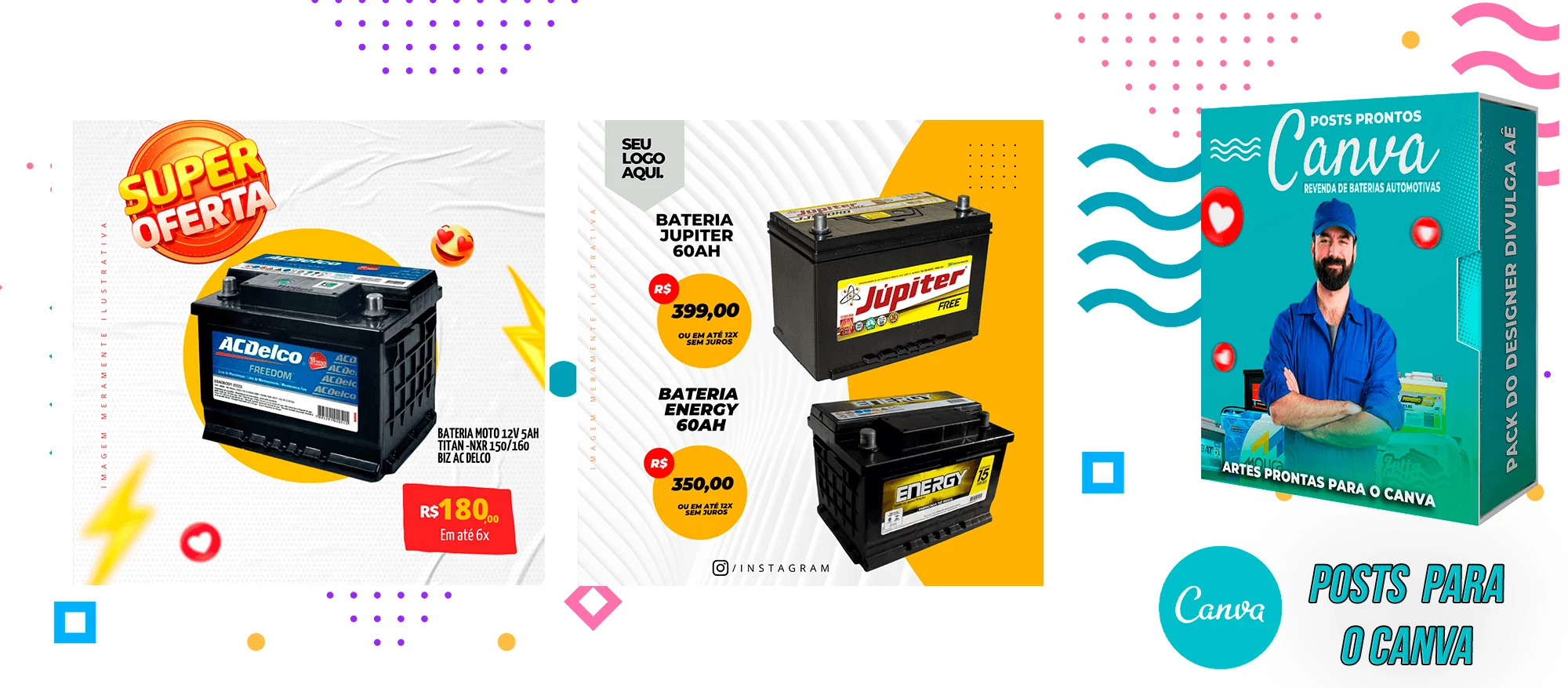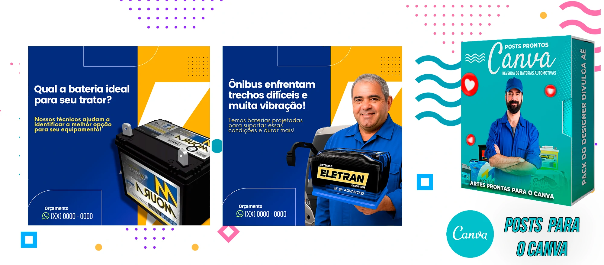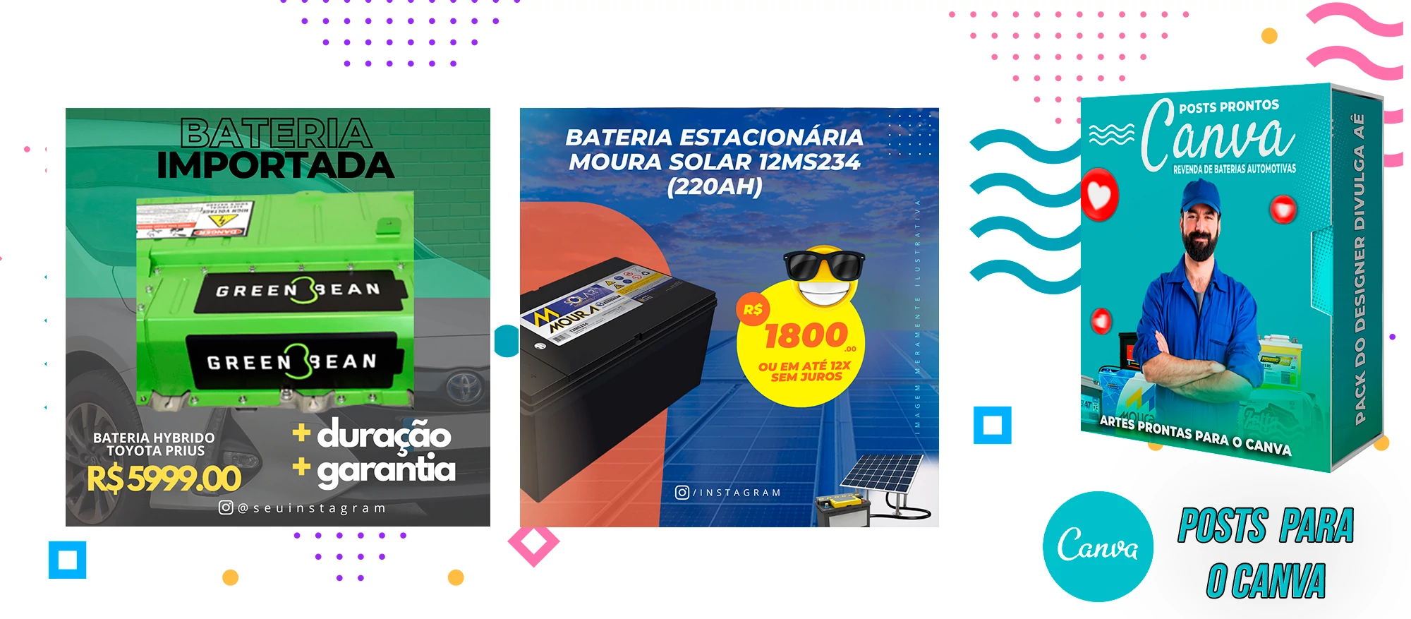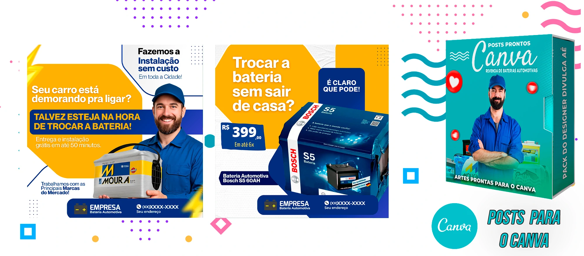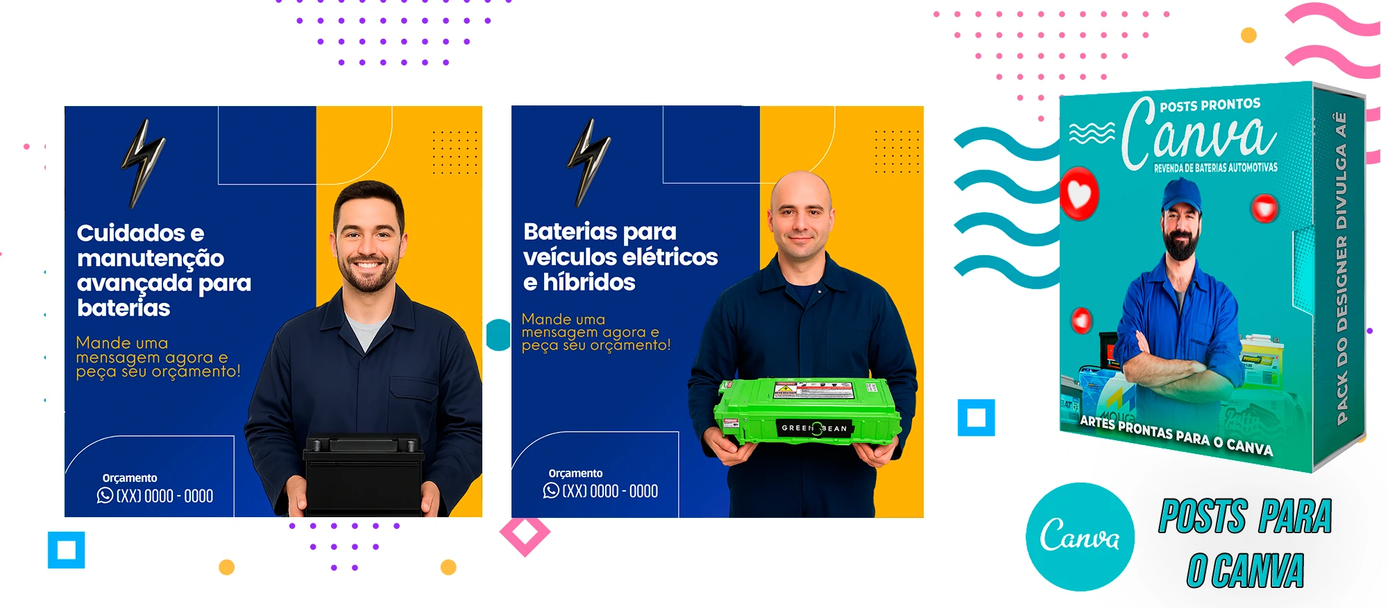 Pack De Posts Prontos para o Canva – Revendas de Baterias Automotivas