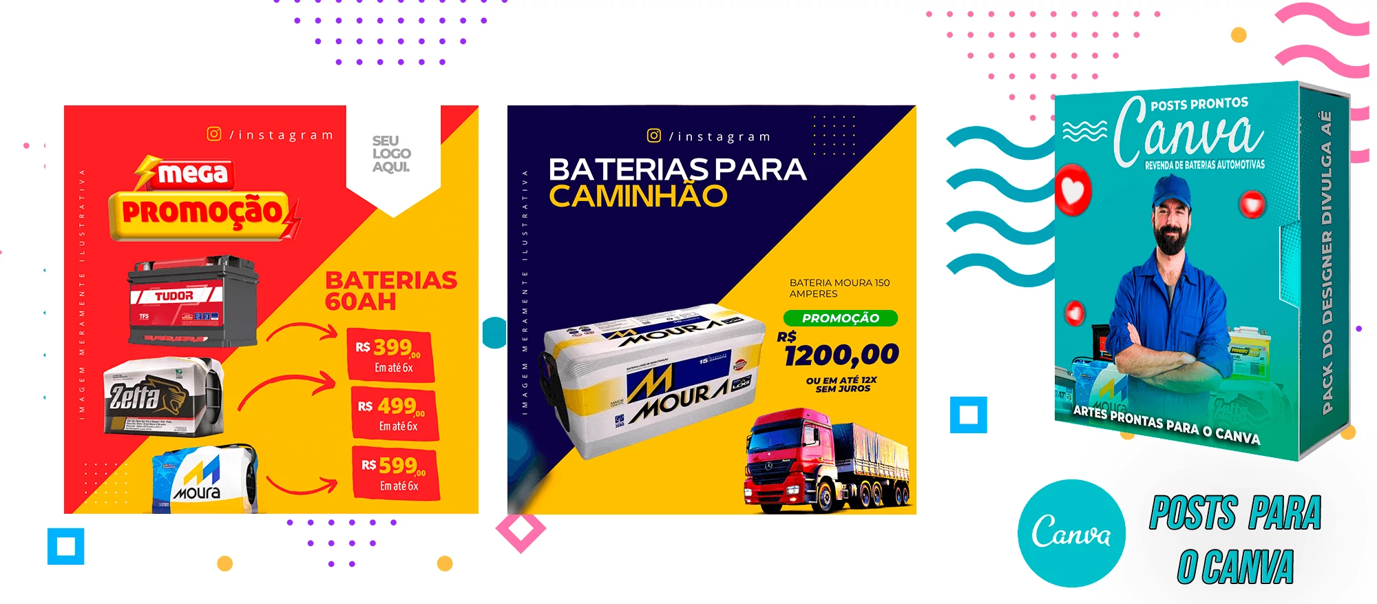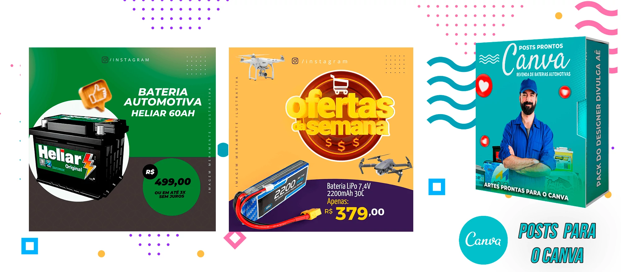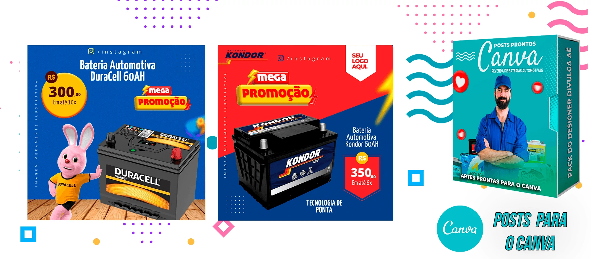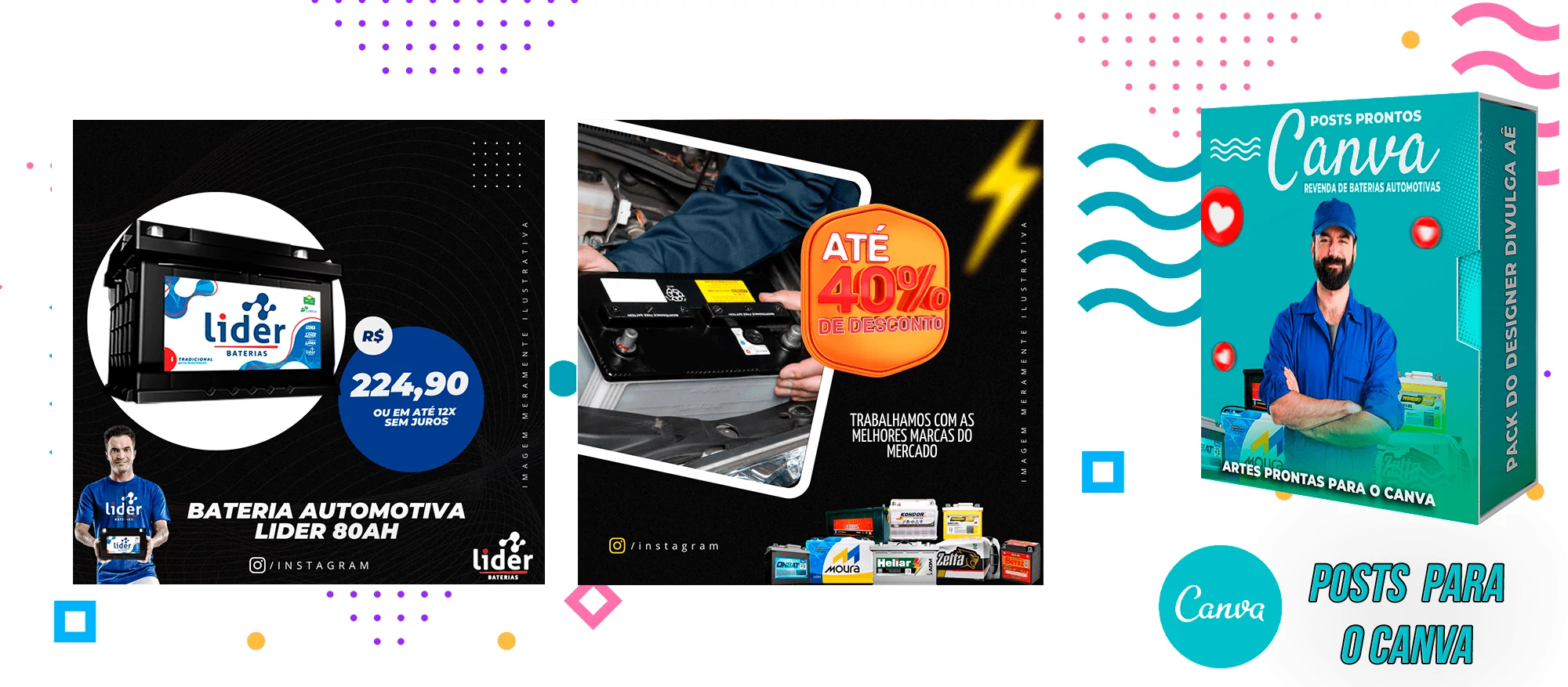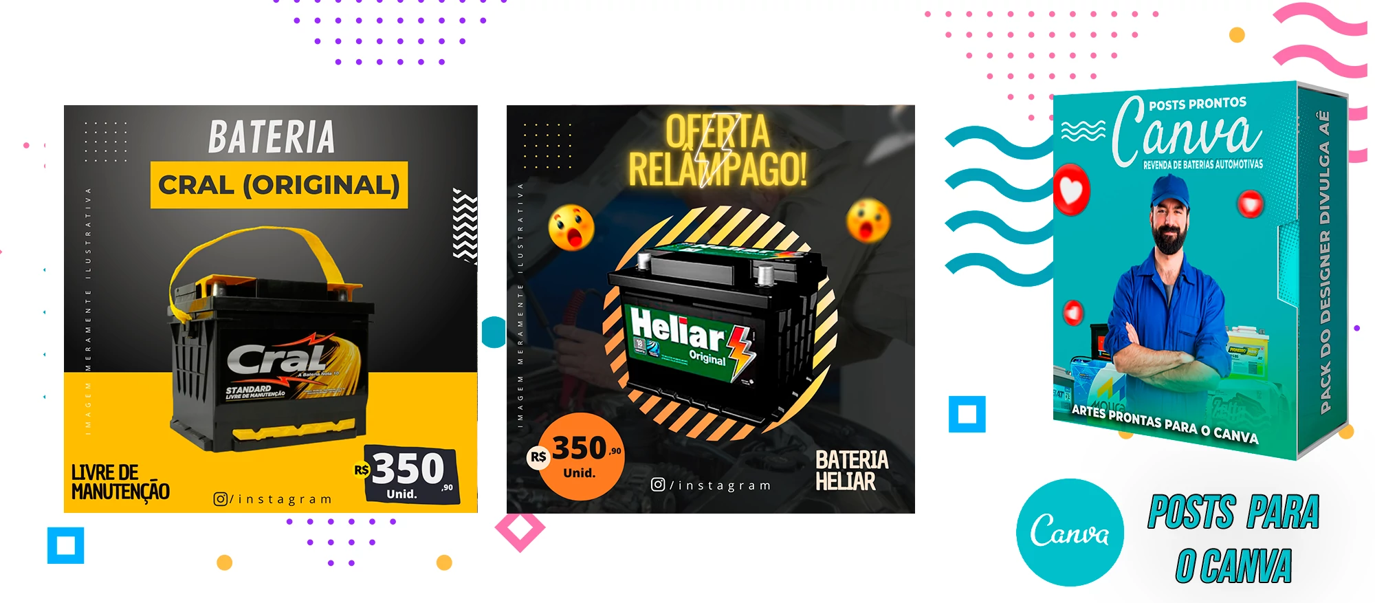 Pack De Posts Prontos para o Canva – Revendas de Baterias Automotivas