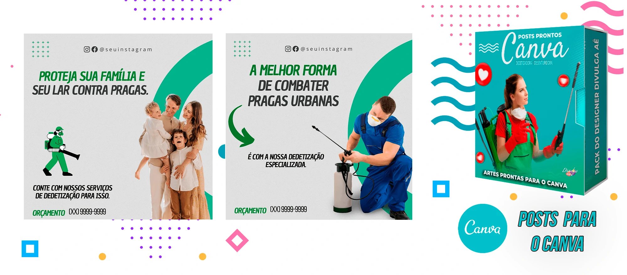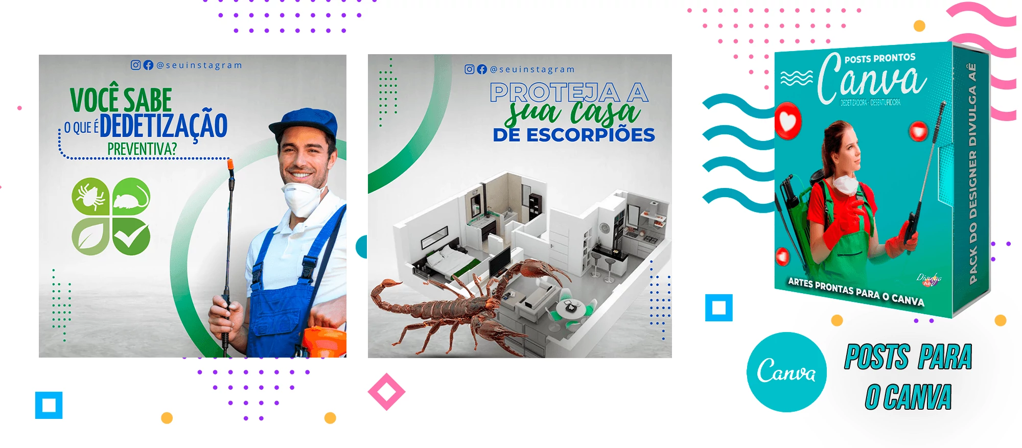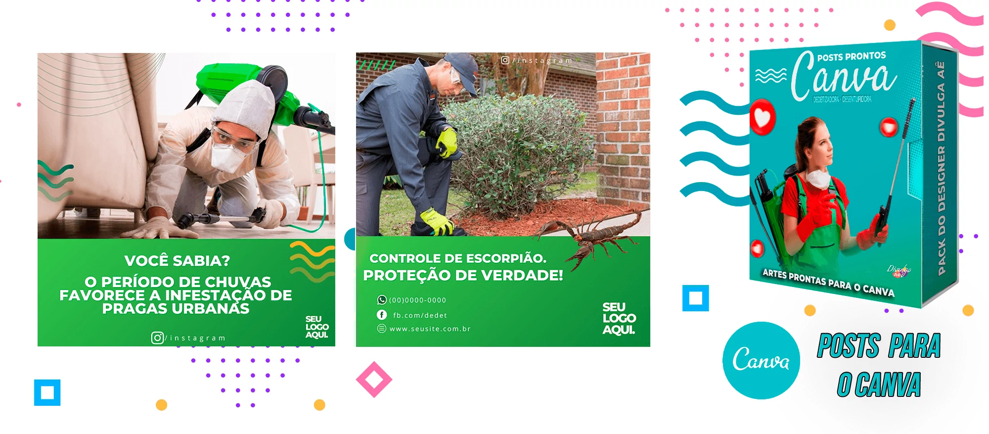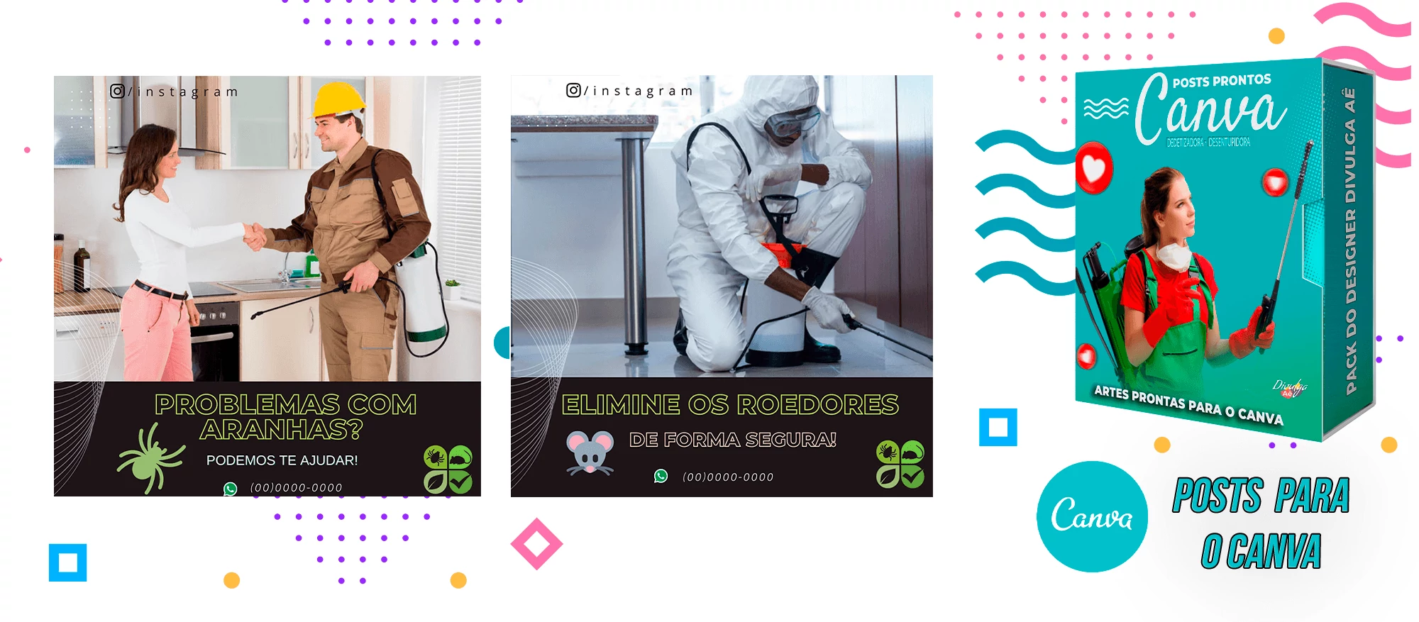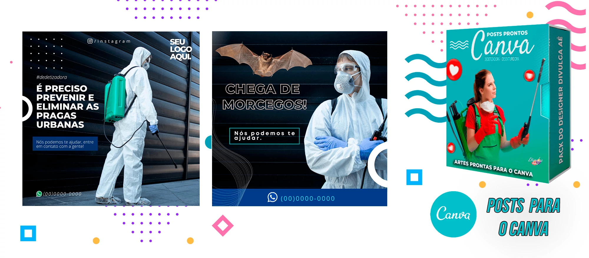Pack de posts prontos para o Canva – Empresas de Dedetização/Dedetizadoras