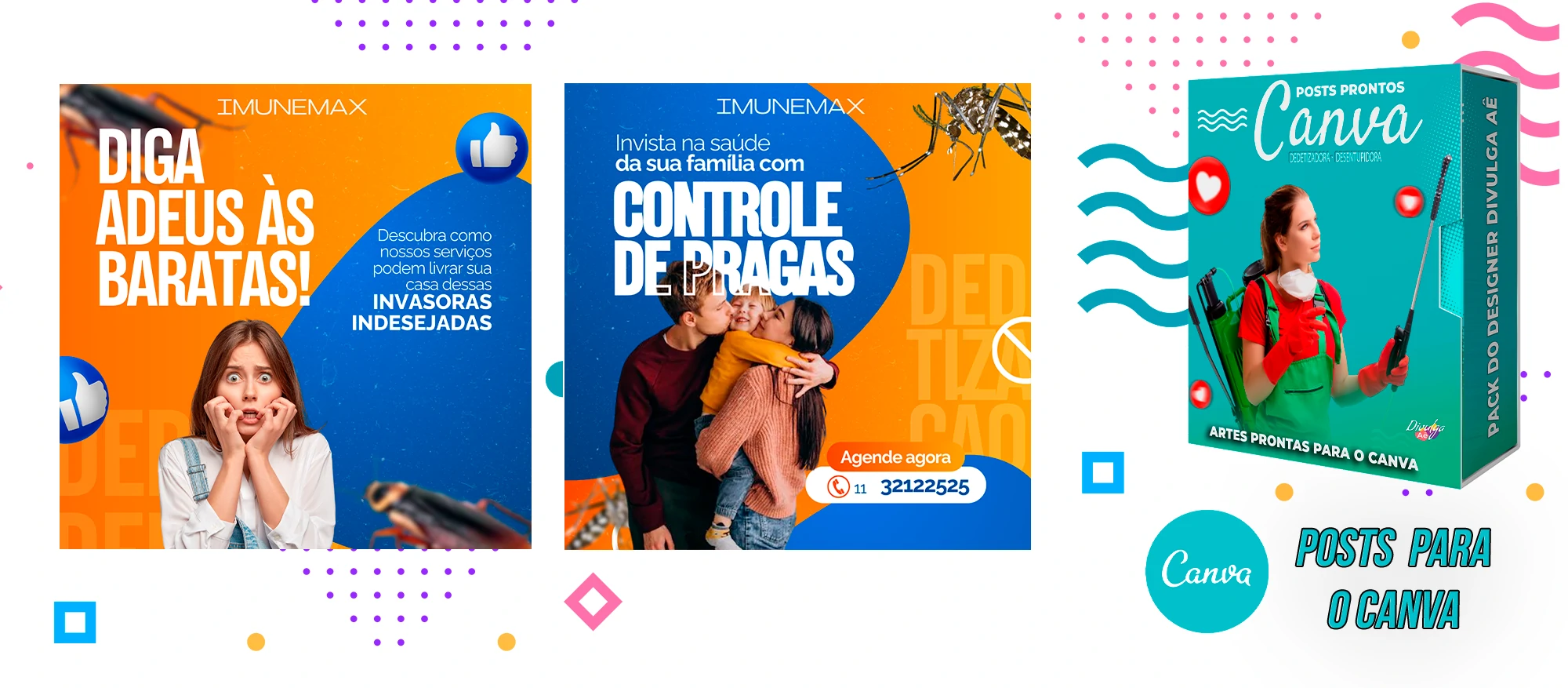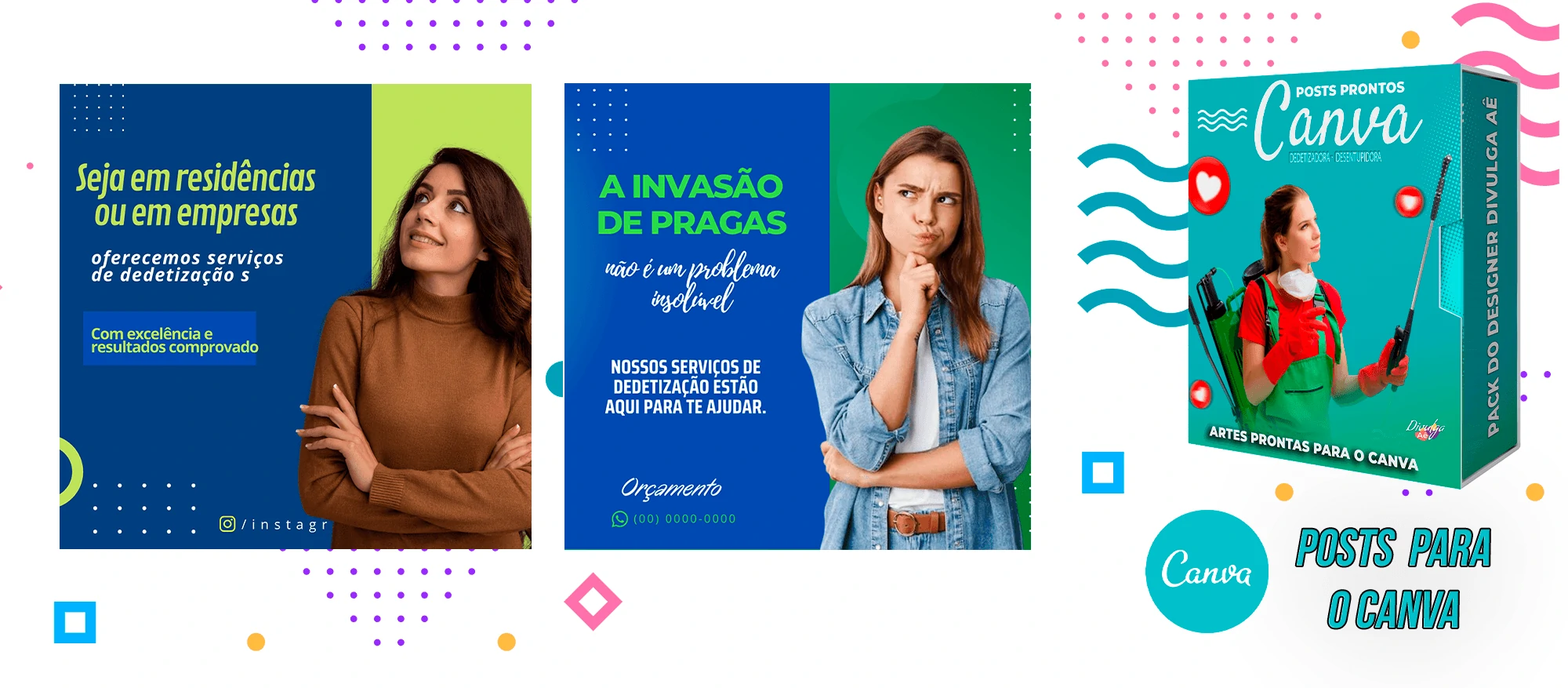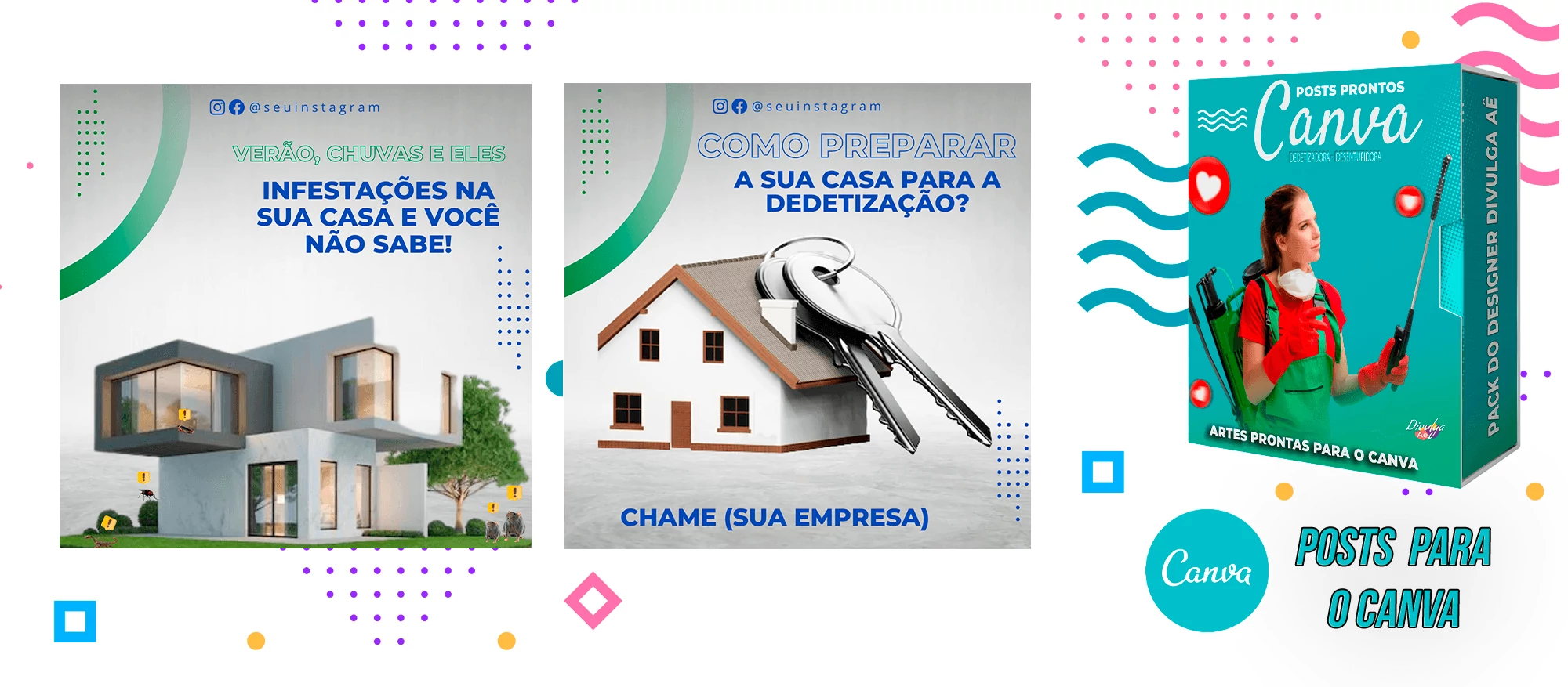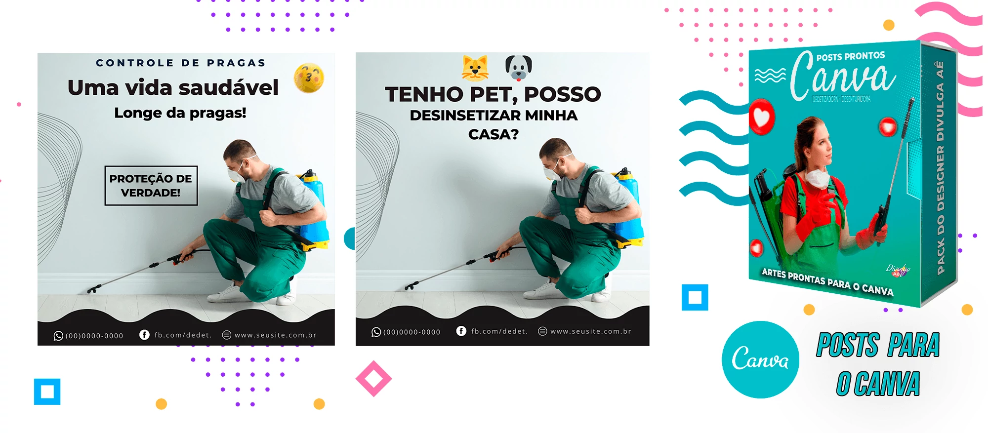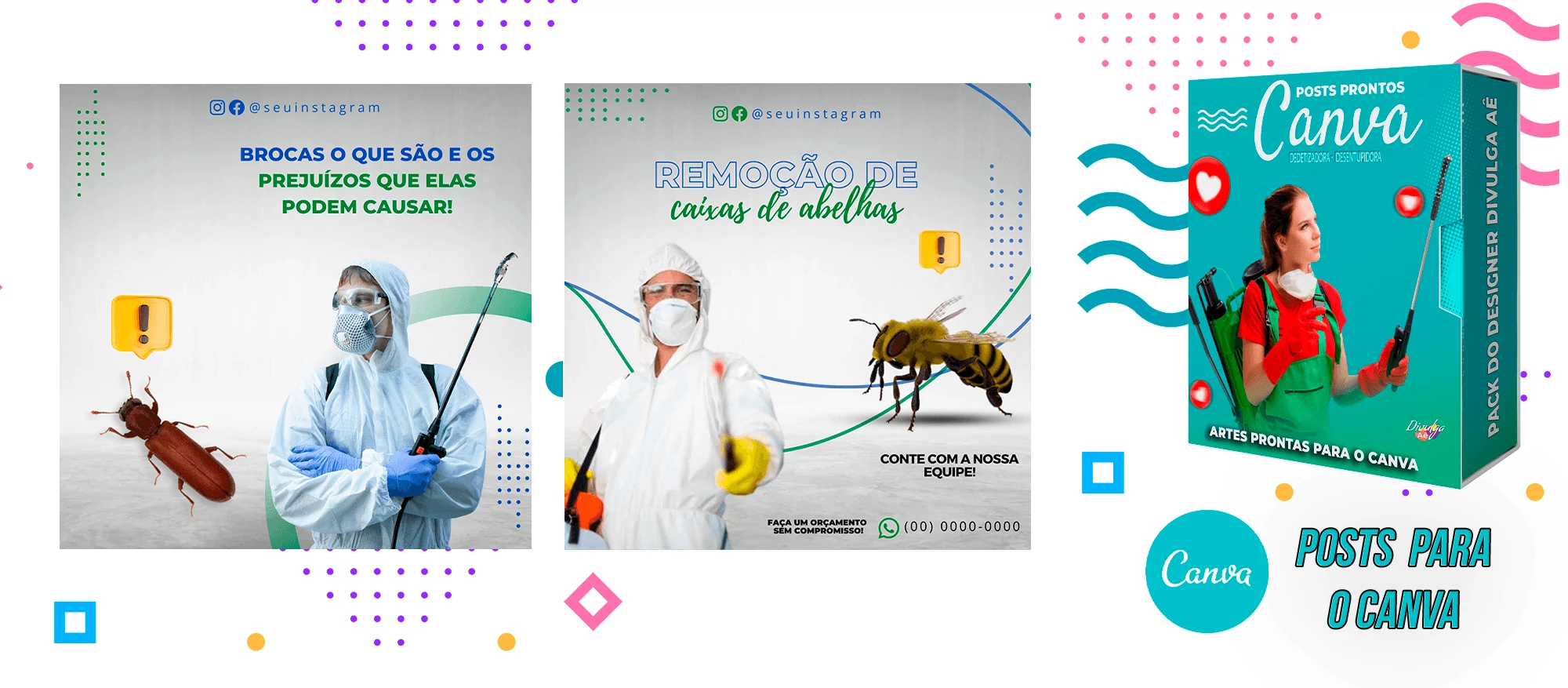 Pack de posts prontos para o Canva – Empresas de Dedetização/Dedetizadoras
