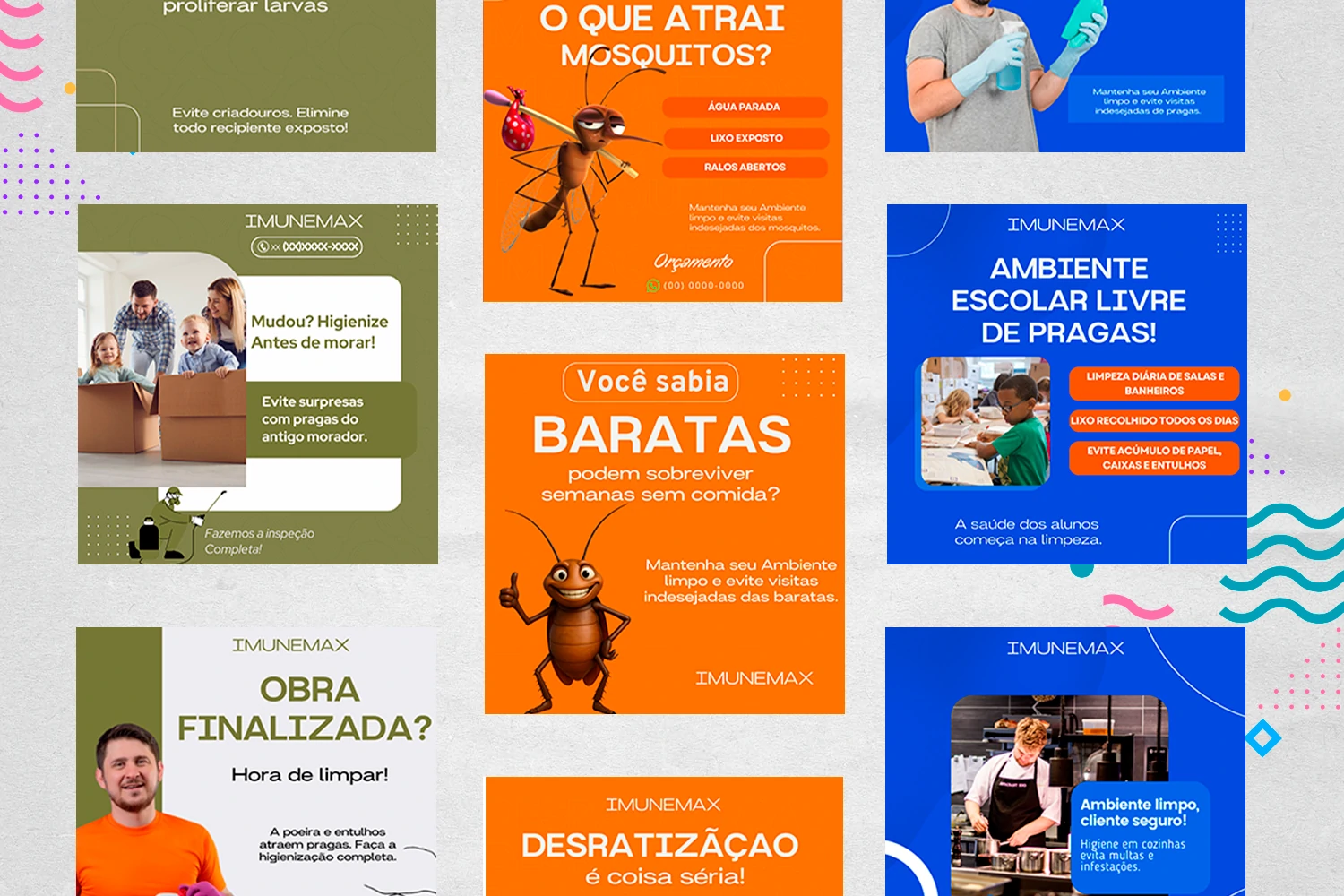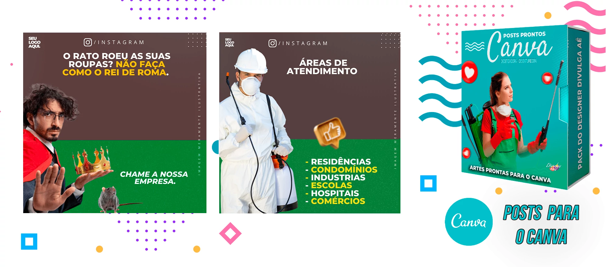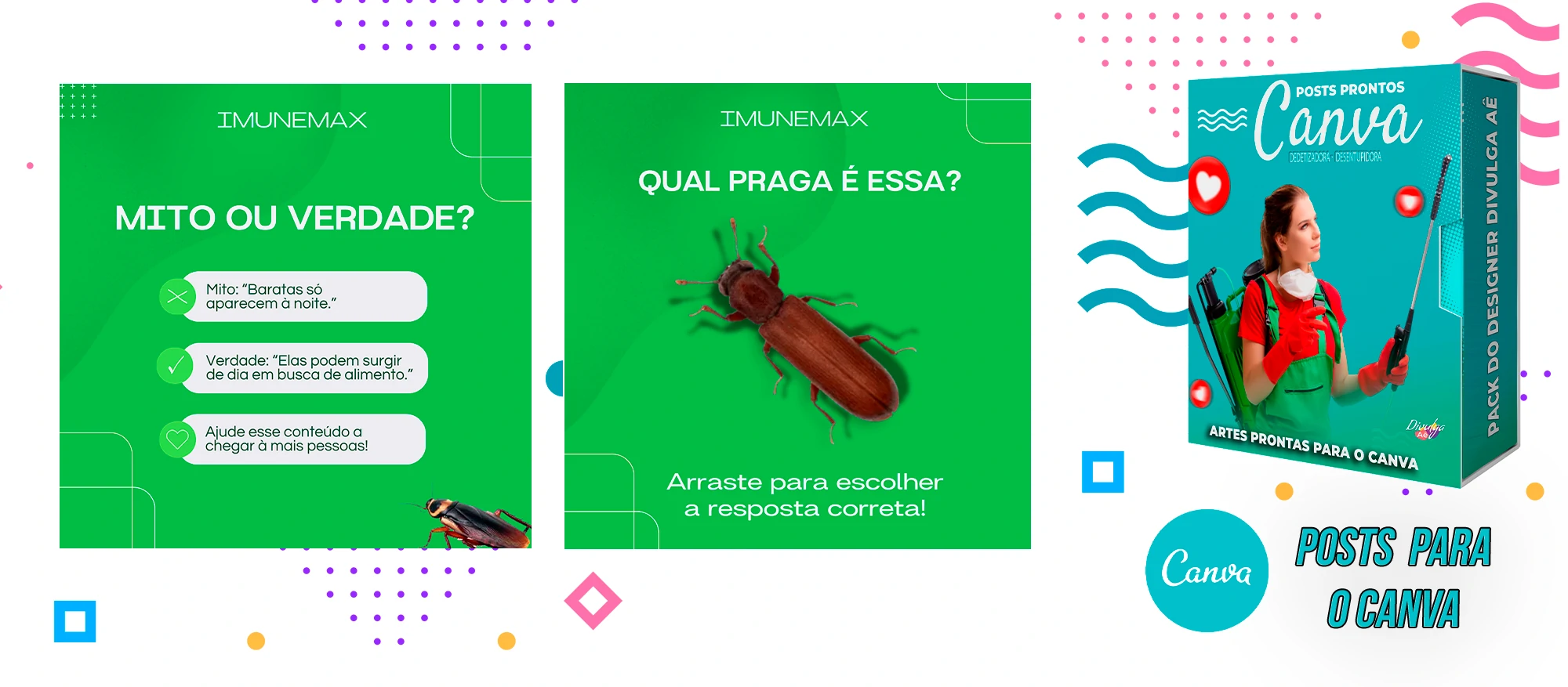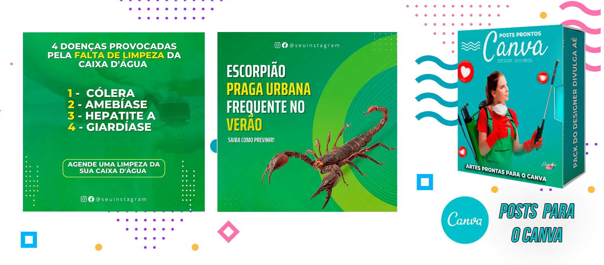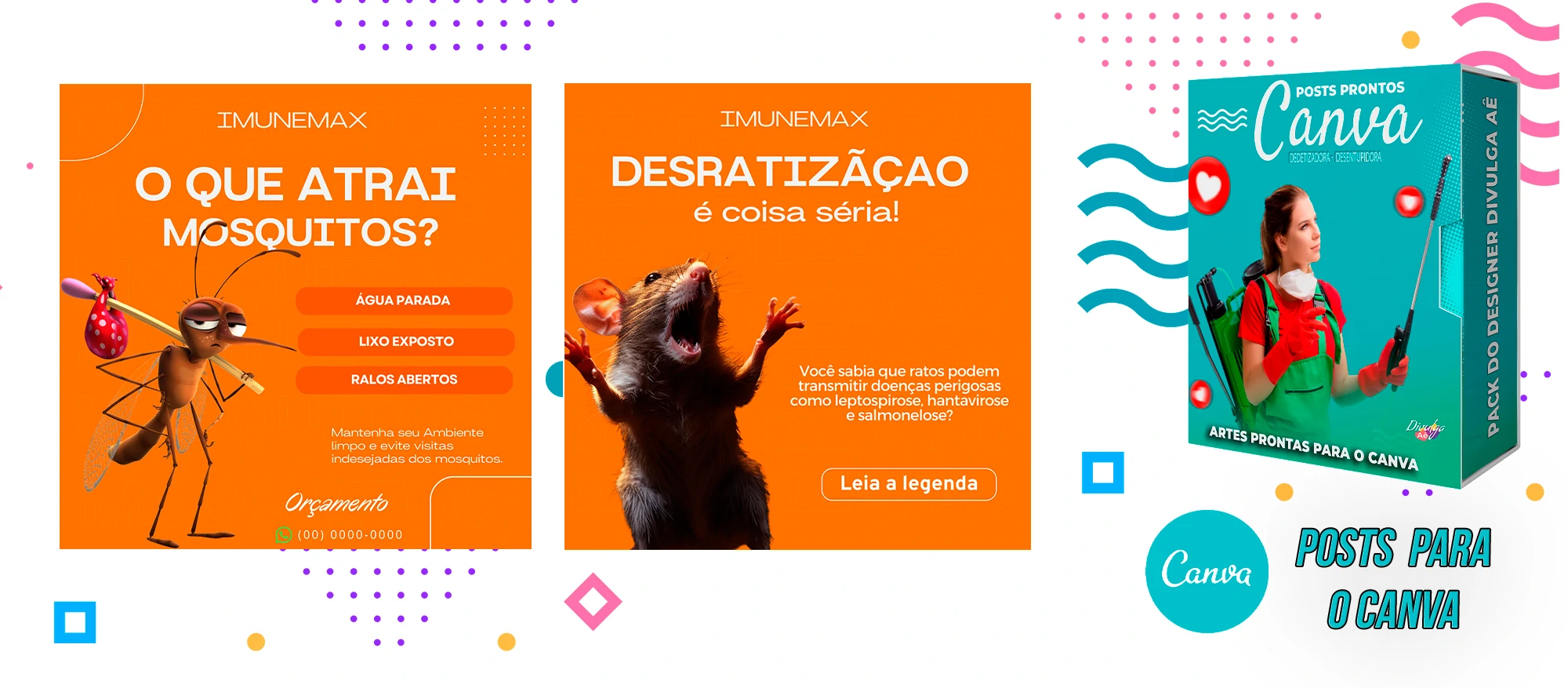 Pack de posts prontos para o Canva – Empresas de Dedetização/Dedetizadoras