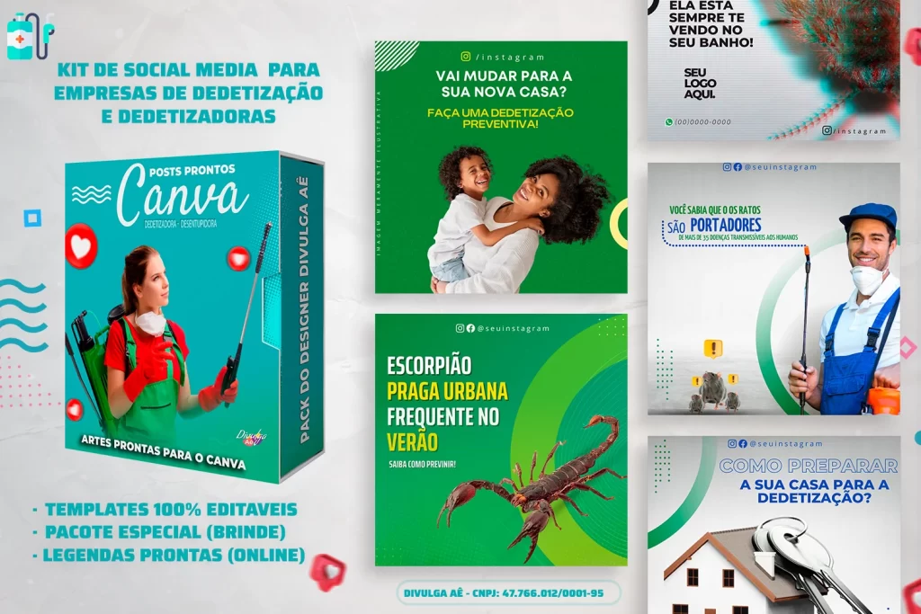 🎁 Conheça o Pack Exclusivo para Empresas de Dedetização, Dedetizadoras e Desentupidoras, com mais de 310 Posts Editáveis incríveis, feitos sob medida para o seu negócio! 🐜🚽 Simplifique sua comunicação e atraia o engajamento dos seus clientes com templates prontos e personalizáveis, elaborados especialmente para empresas do setor de dedetização e desentupimento. Com a facilidade do Canva e uma conta gratuita, você poderá editar os templates em poucos segundos!