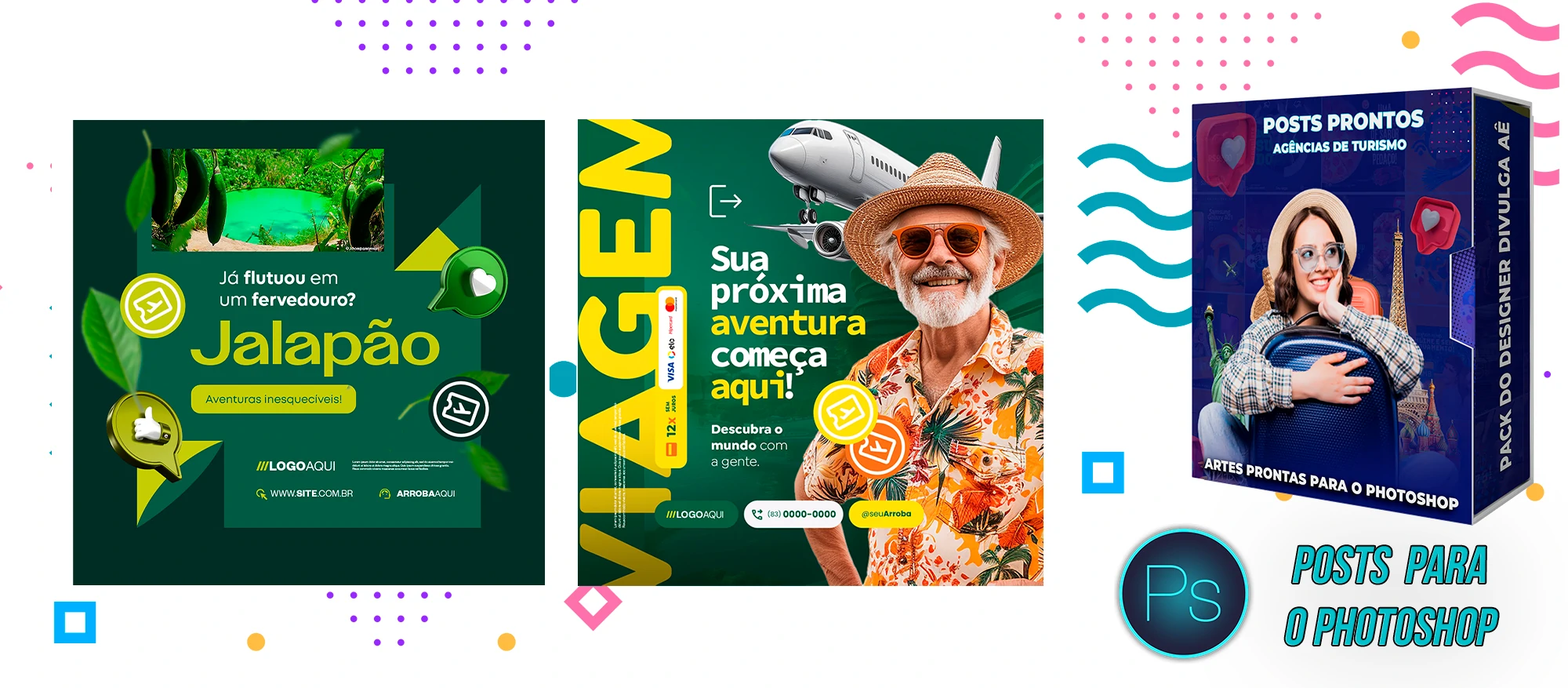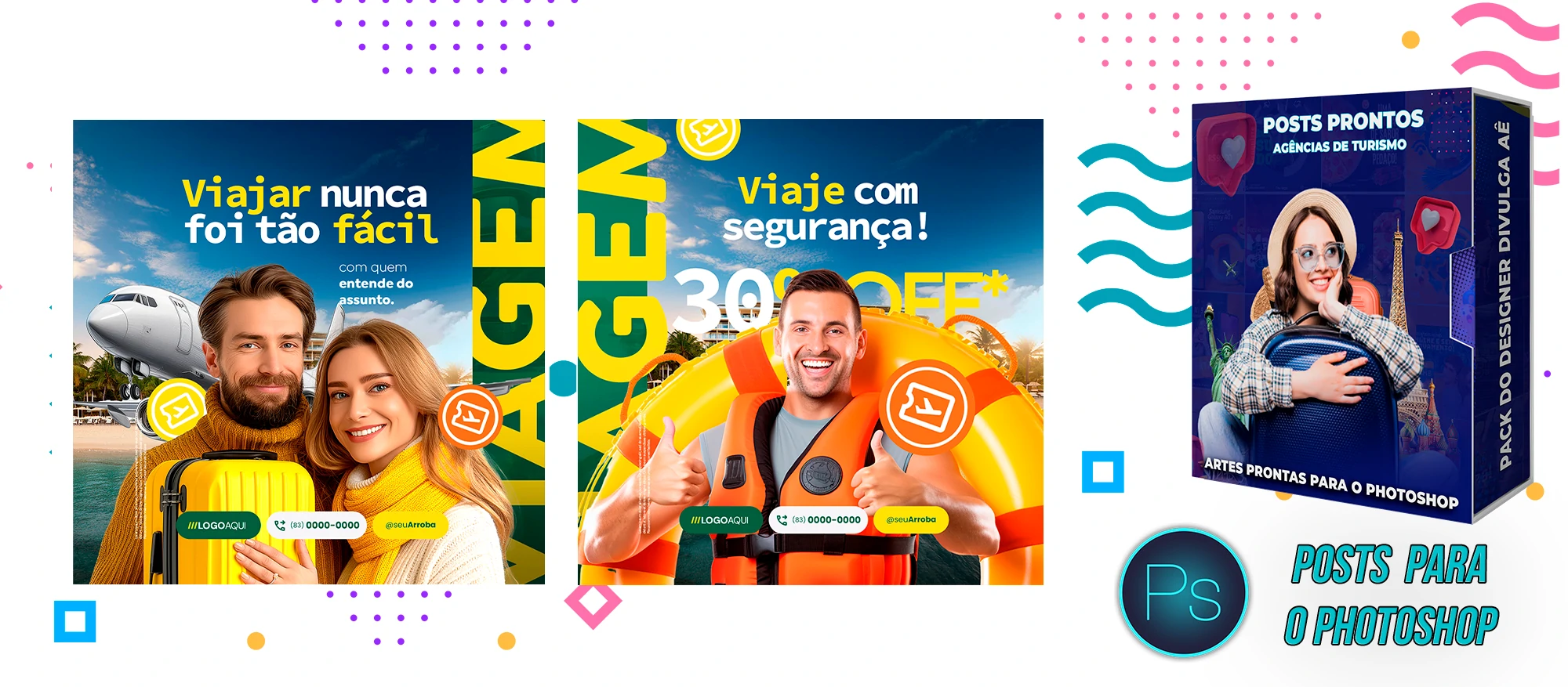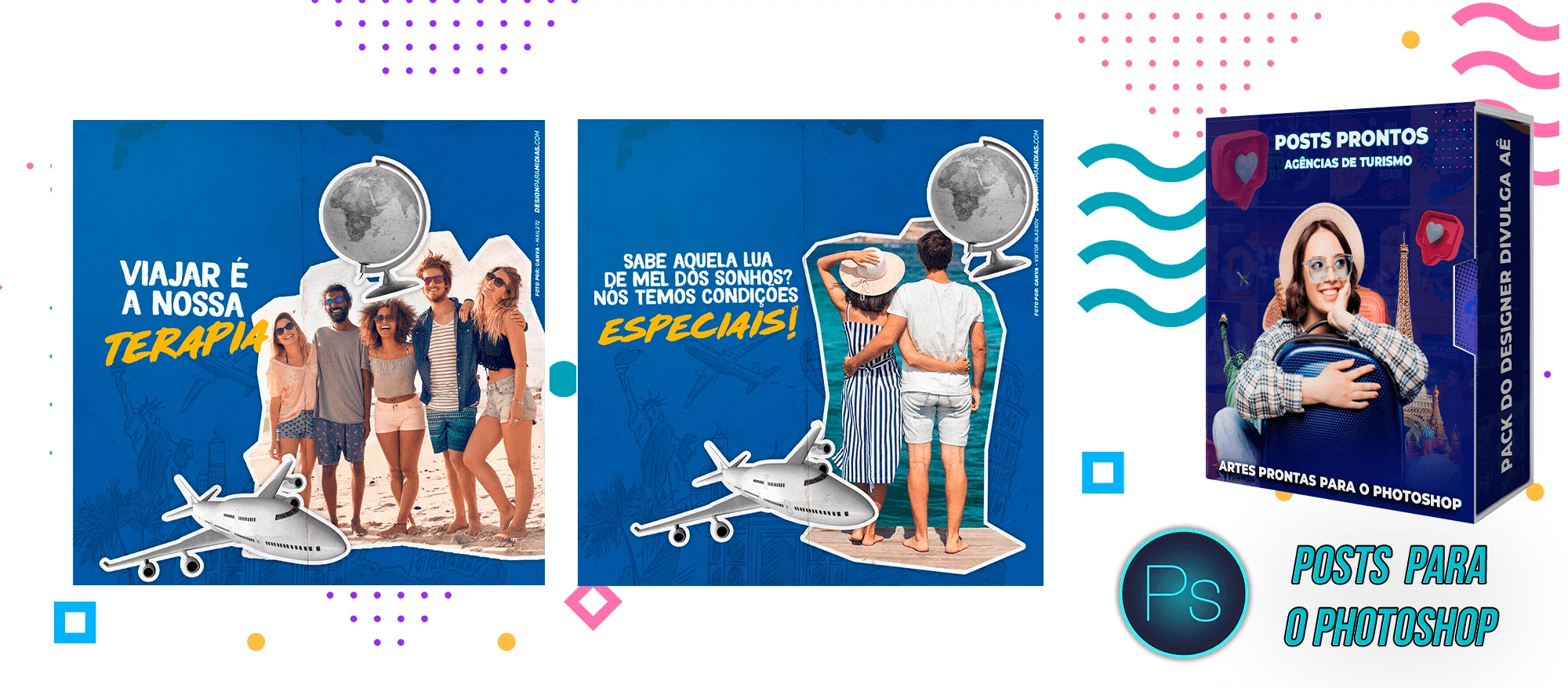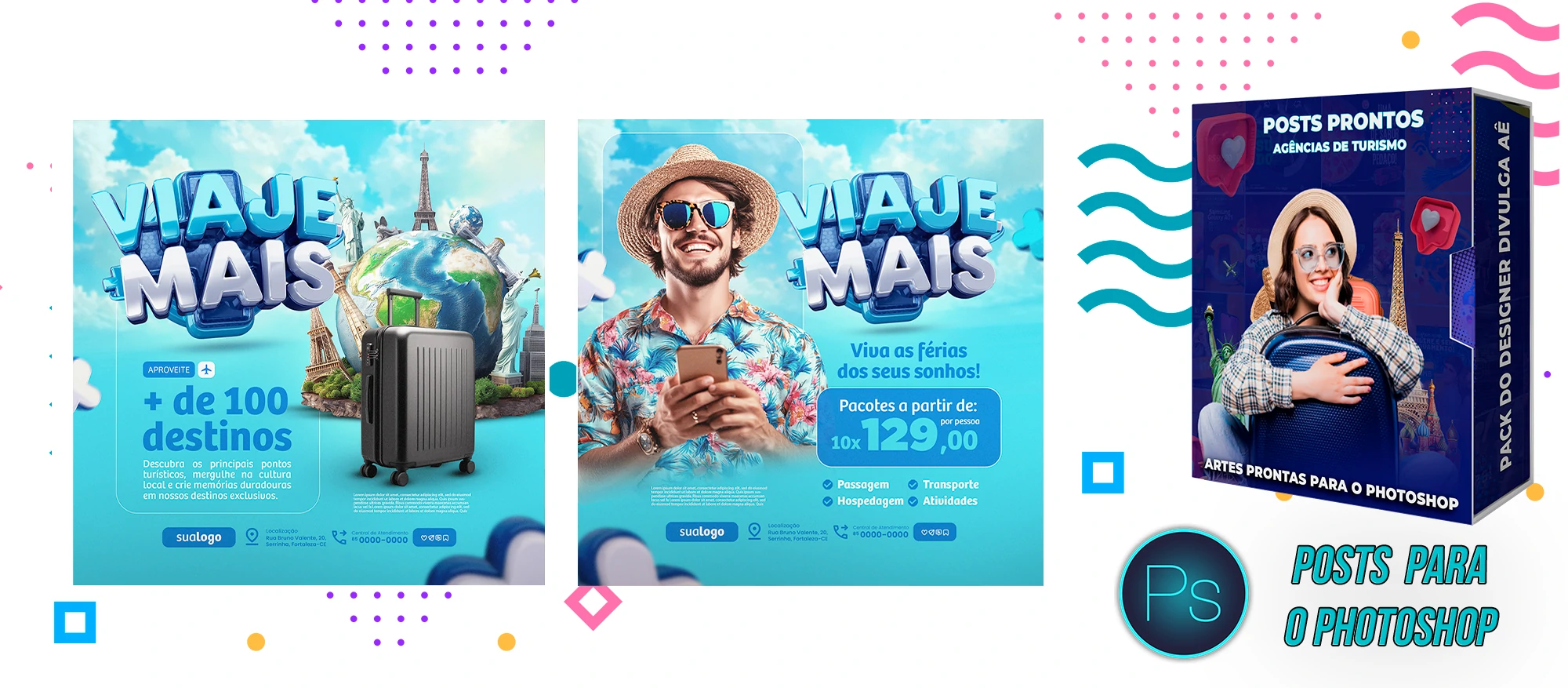 ✈️🌍 Pack elaborado sob demanda com mais de 240 posts para Agências de Viagem e Turismo, ideal para quem precisa criar conteúdos de forma rápida e prática. Basta editar os arquivos no Photoshop, inserir a marca, alterar o nome e adicionar o WhatsApp — tudo em poucos segundos! ⚡