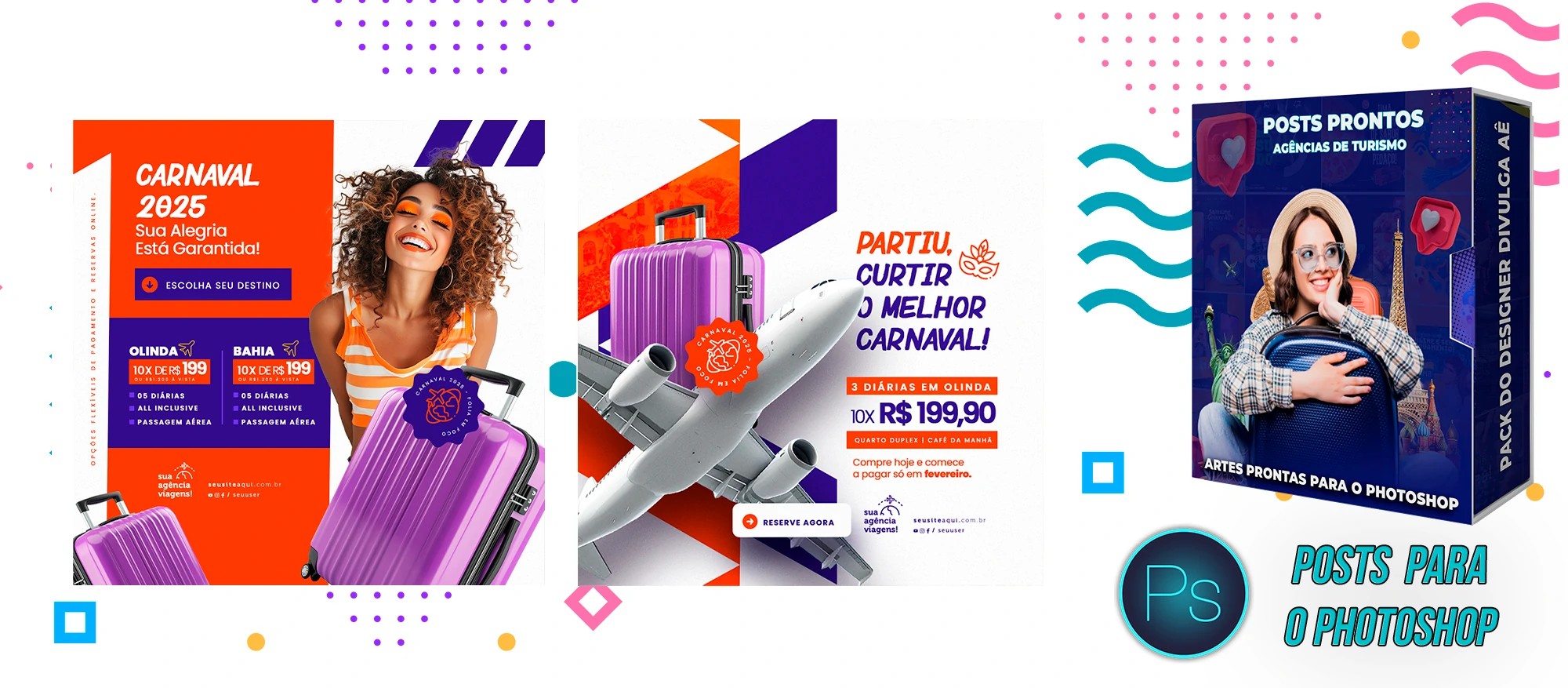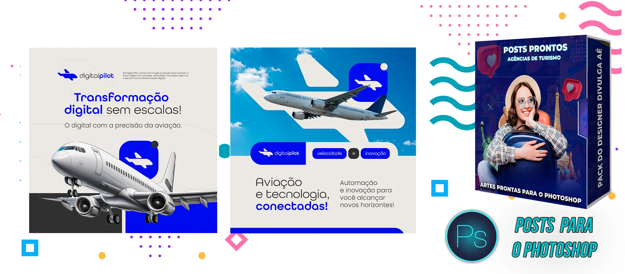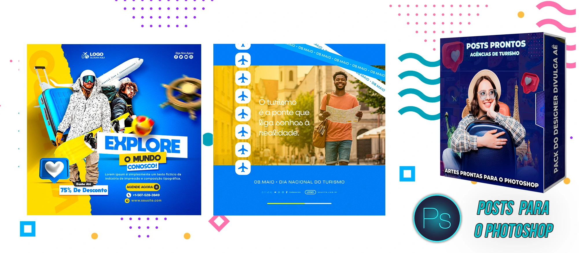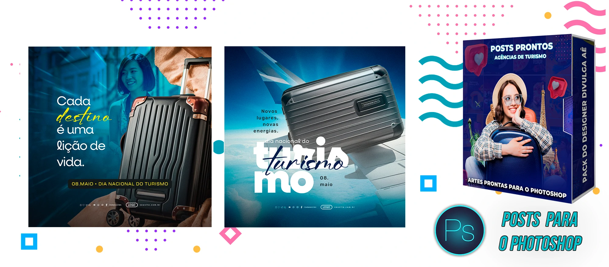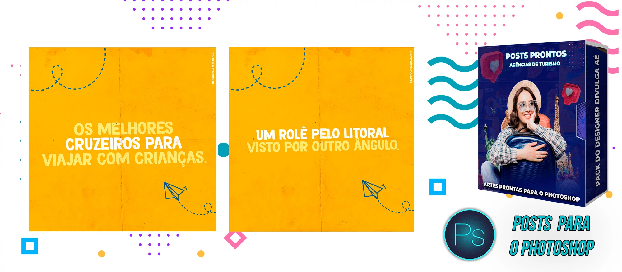 ✈️🌍 Pack elaborado sob demanda com mais de 240 posts para Agências de Viagem e Turismo, ideal para quem precisa criar conteúdos de forma rápida e prática. Basta editar os arquivos no Photoshop, inserir a marca, alterar o nome e adicionar o WhatsApp — tudo em poucos segundos! ⚡