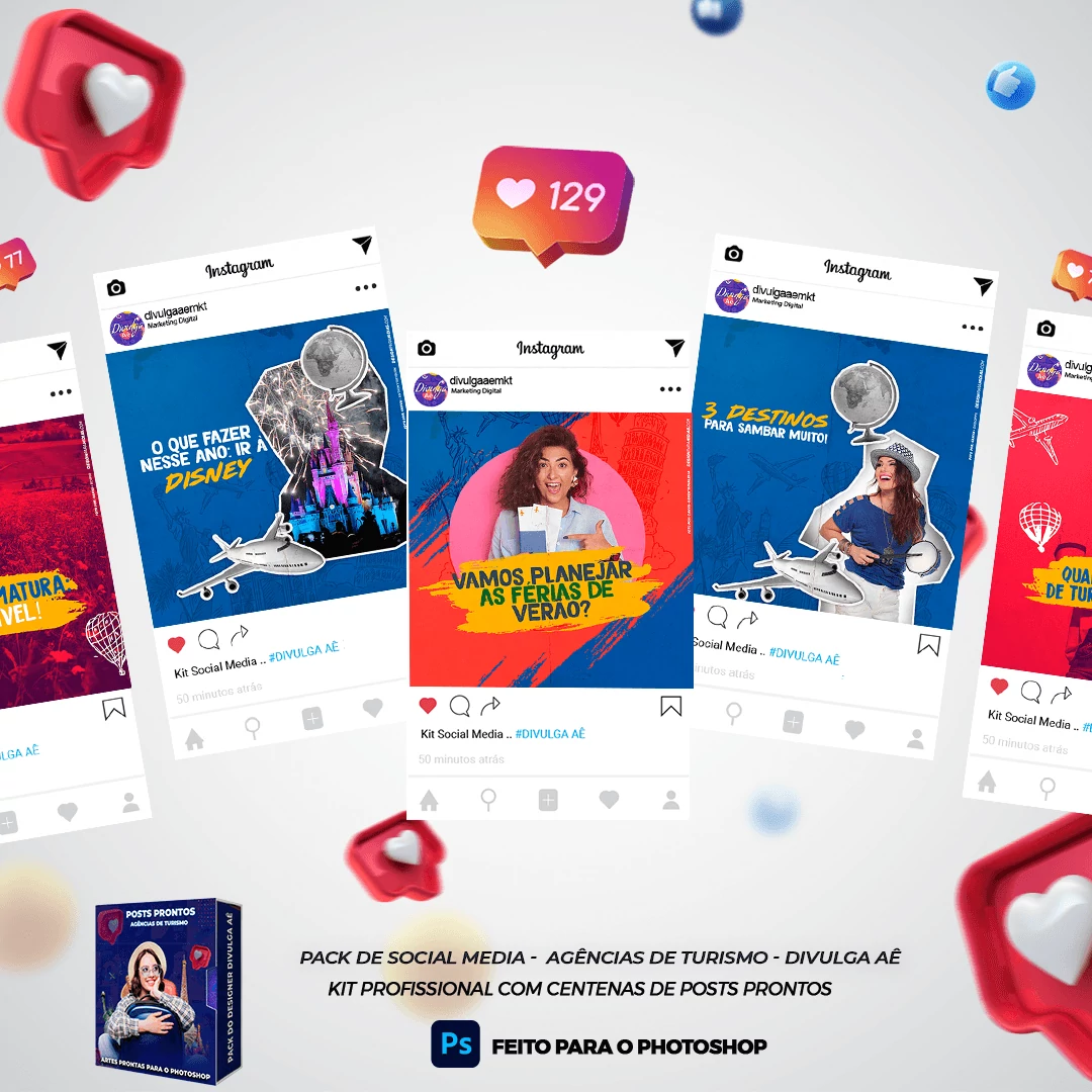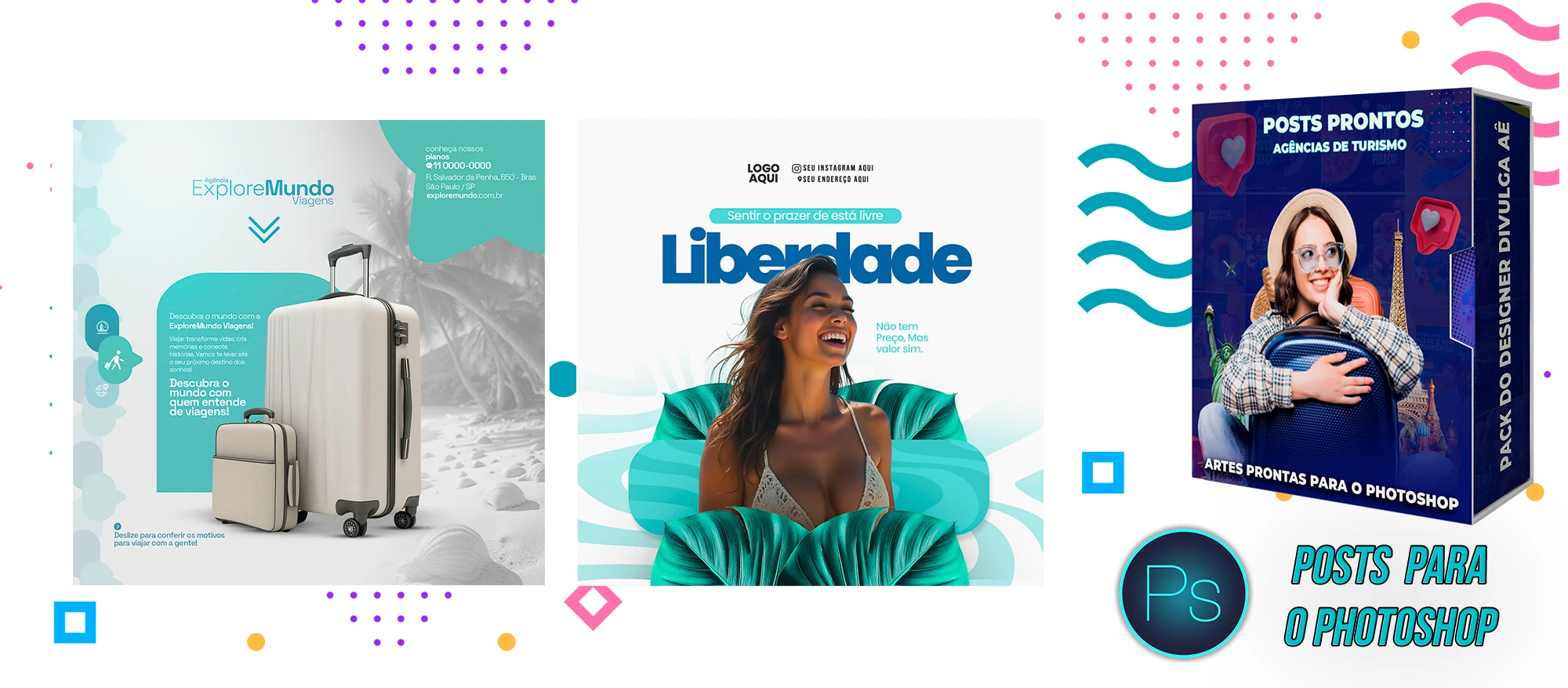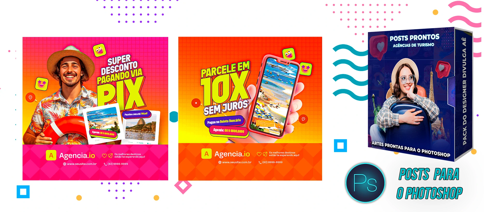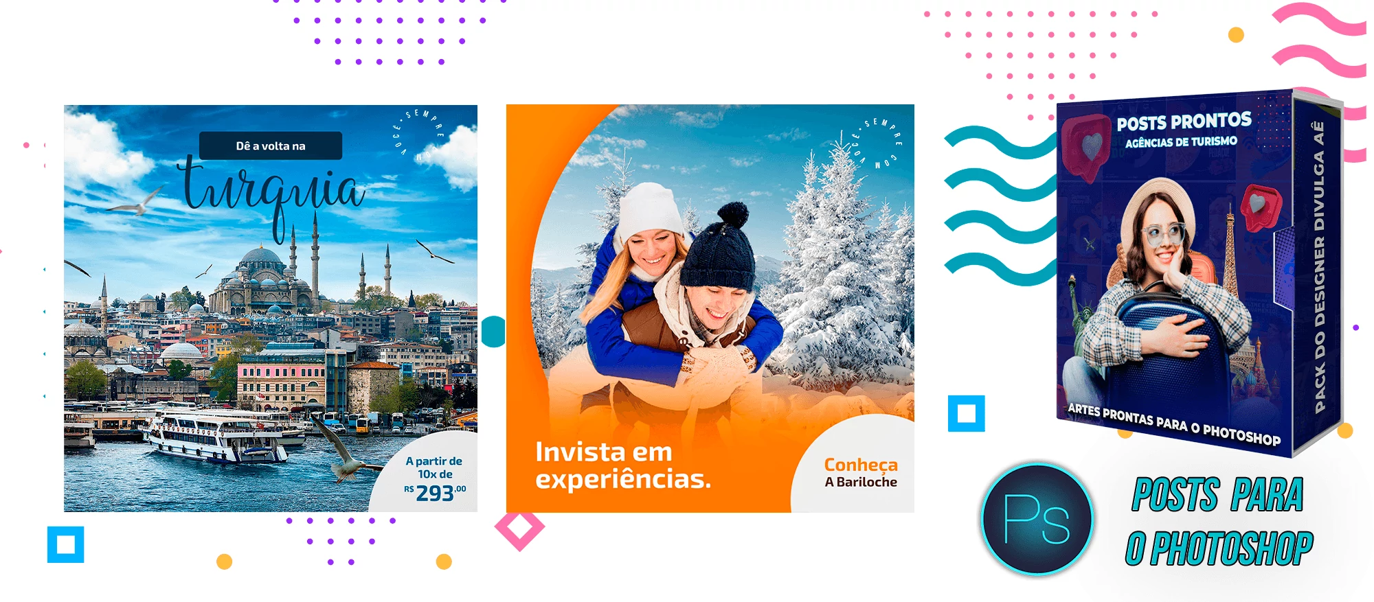Pack de Posts Prontos + Legendas Prontas para Agências De Turismo no Photoshop