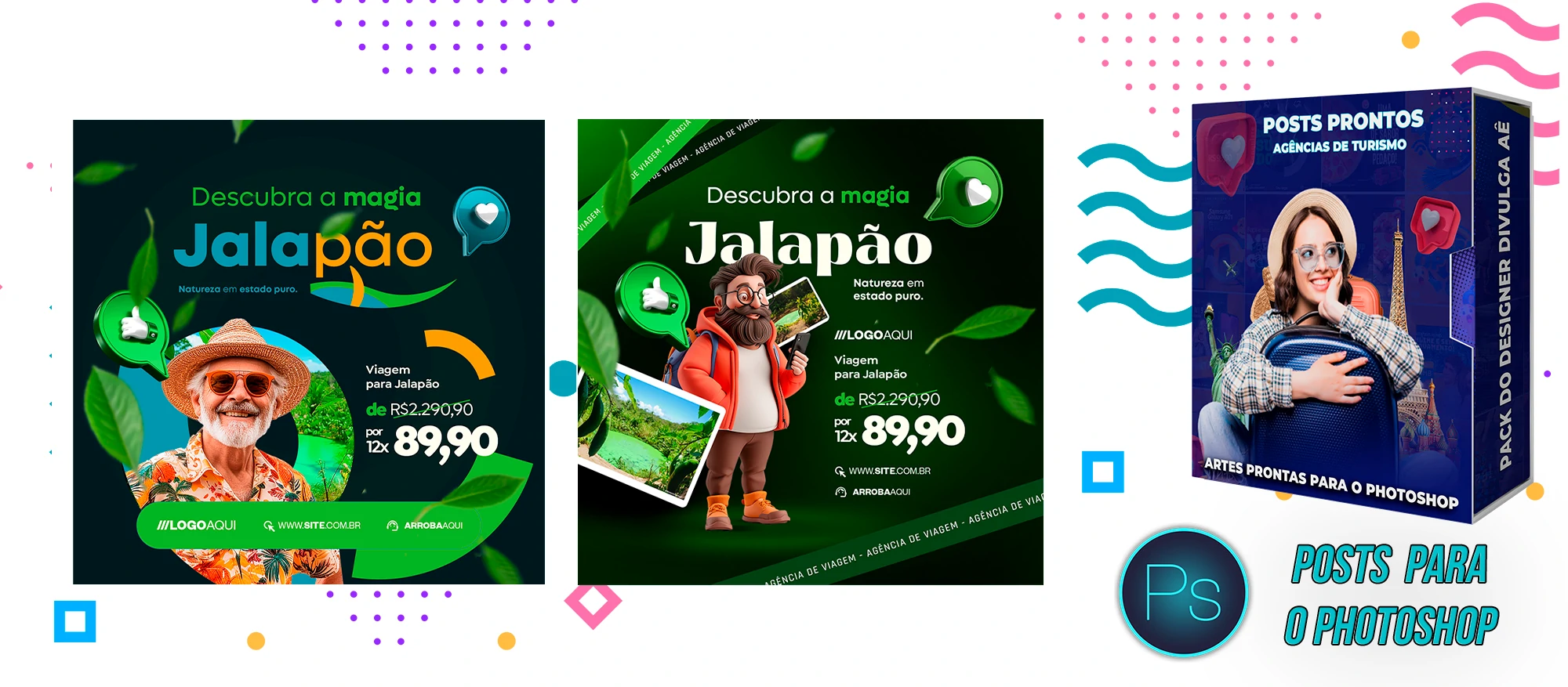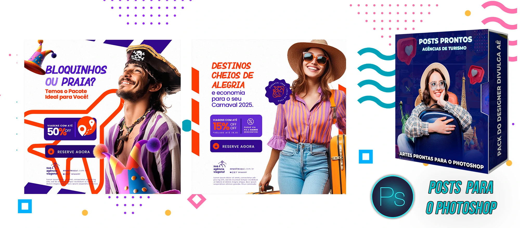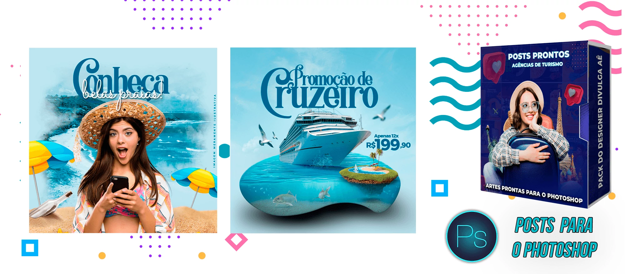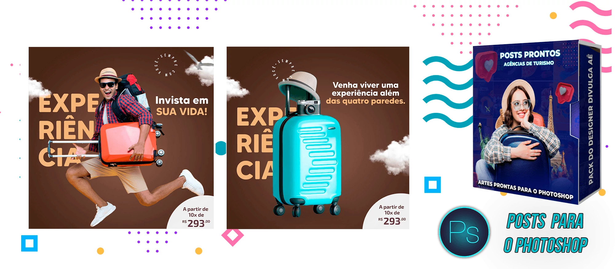 Pack de Posts Prontos + Legendas Prontas para Agências De Turismo no Photoshop