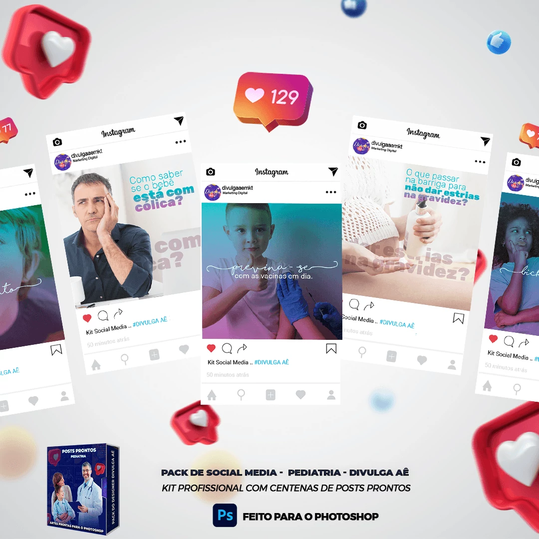 ✅+ Pack de Artes com 130 Posts Prontos – Pediatria