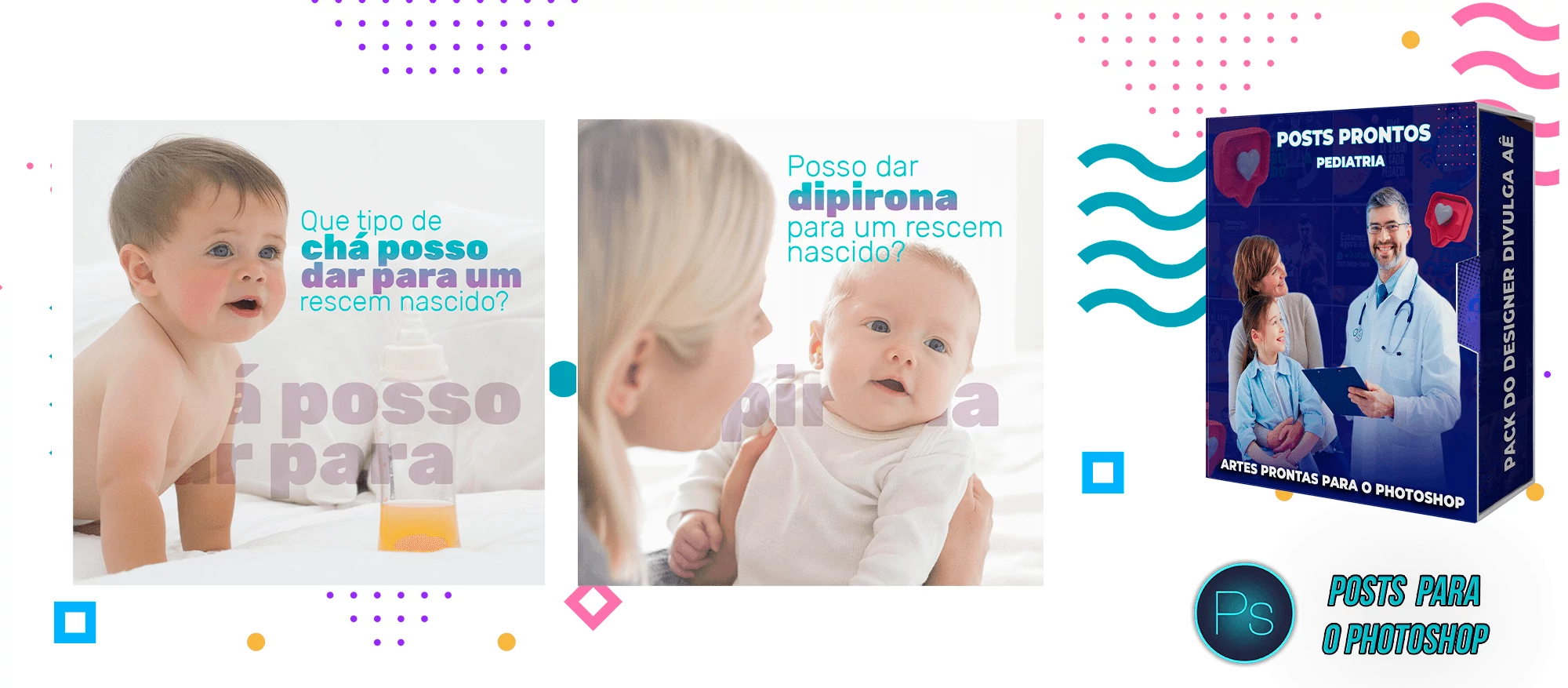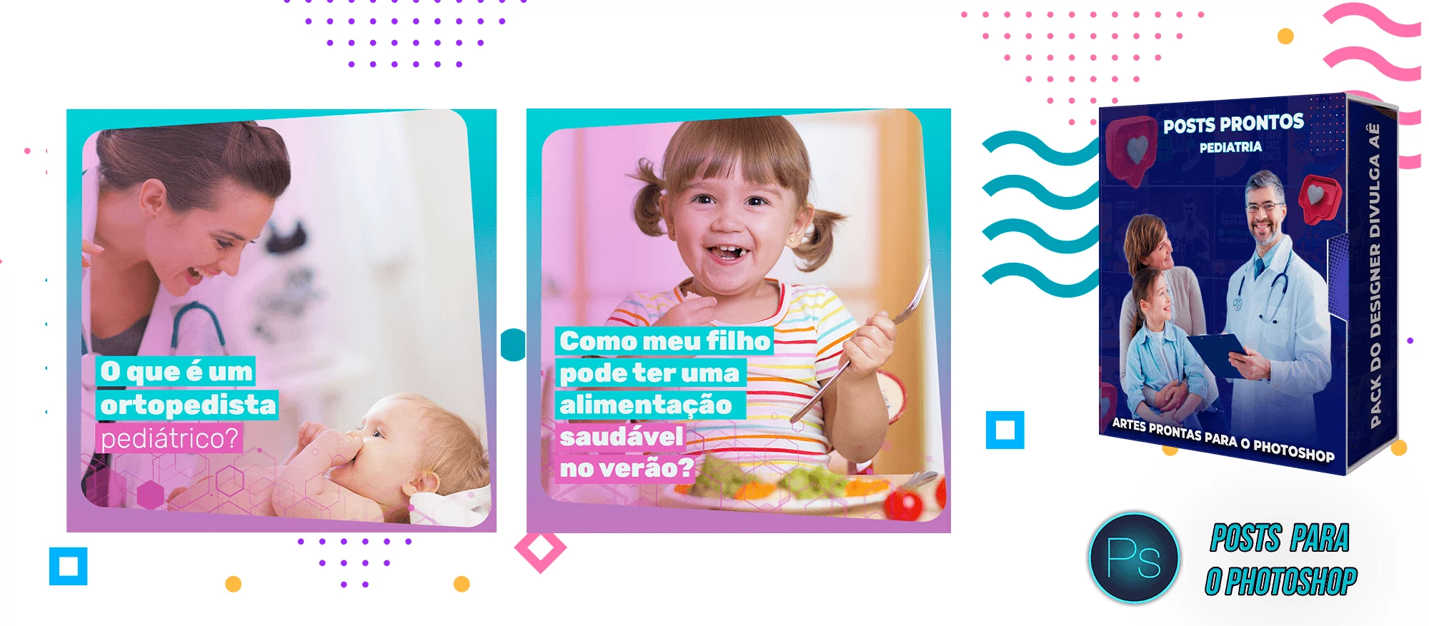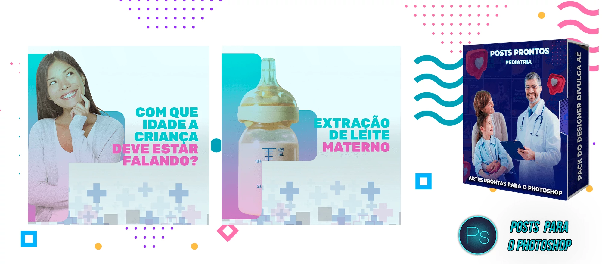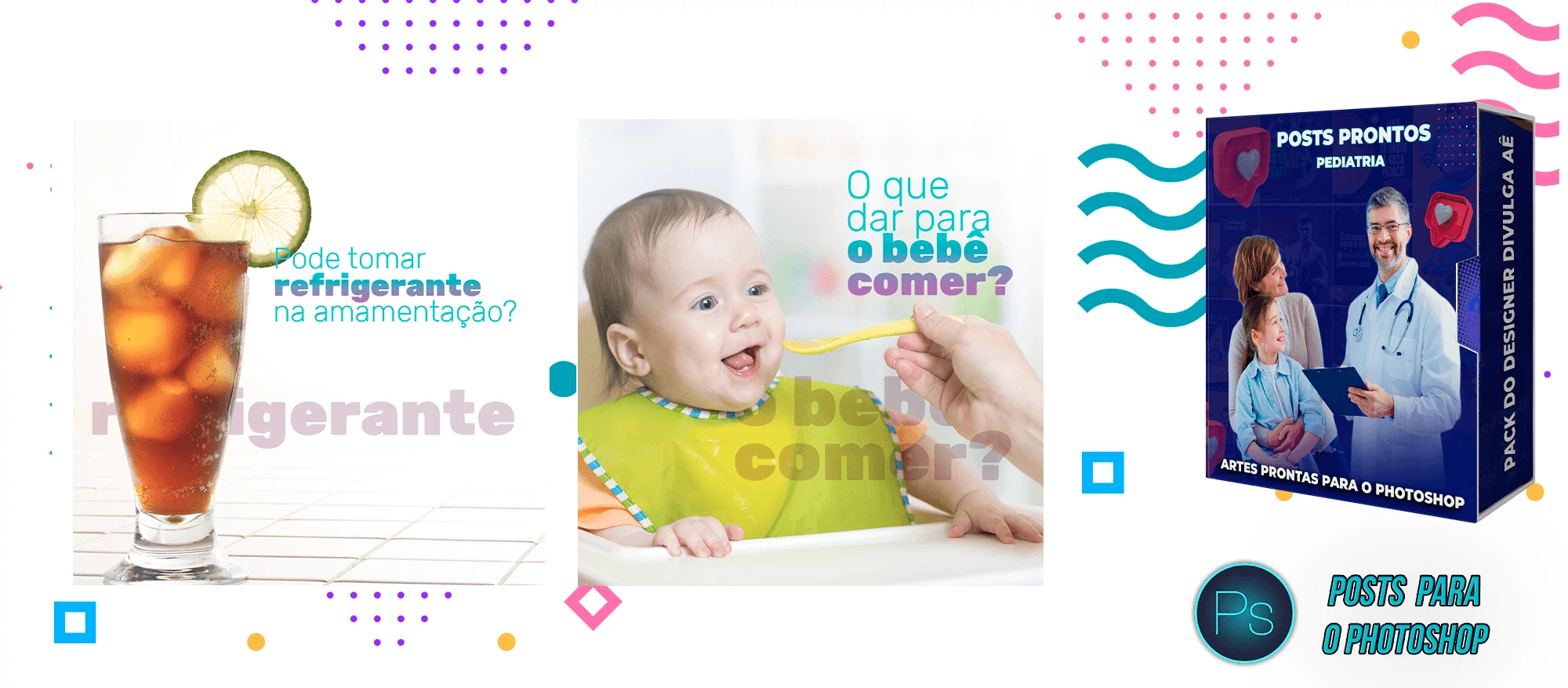 Pack de Artes com + 130 Posts Prontos para Pediatria