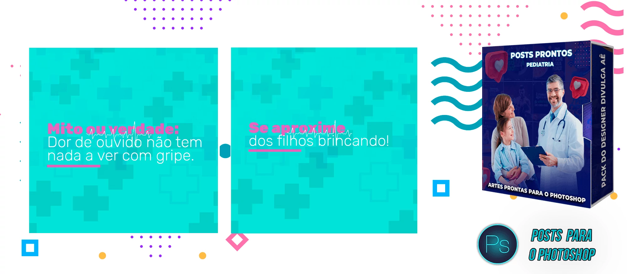 Pack elaborado sob demanda com mais de 130 artes para Clínicas de Pediatria, Clínica Médica, Consultório de Pediatria e Médico que precisa elaborar posts de forma rápida e prática, bastando apenas possuir o Photoshop ou o App Photopea e editar os arquivos, tudo em poucos segundos!
