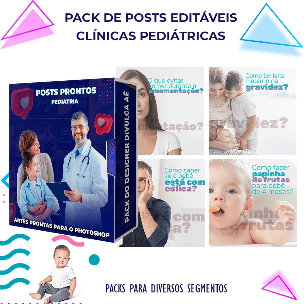 Pack de Artes com + 130 Posts Prontos para Pediatria