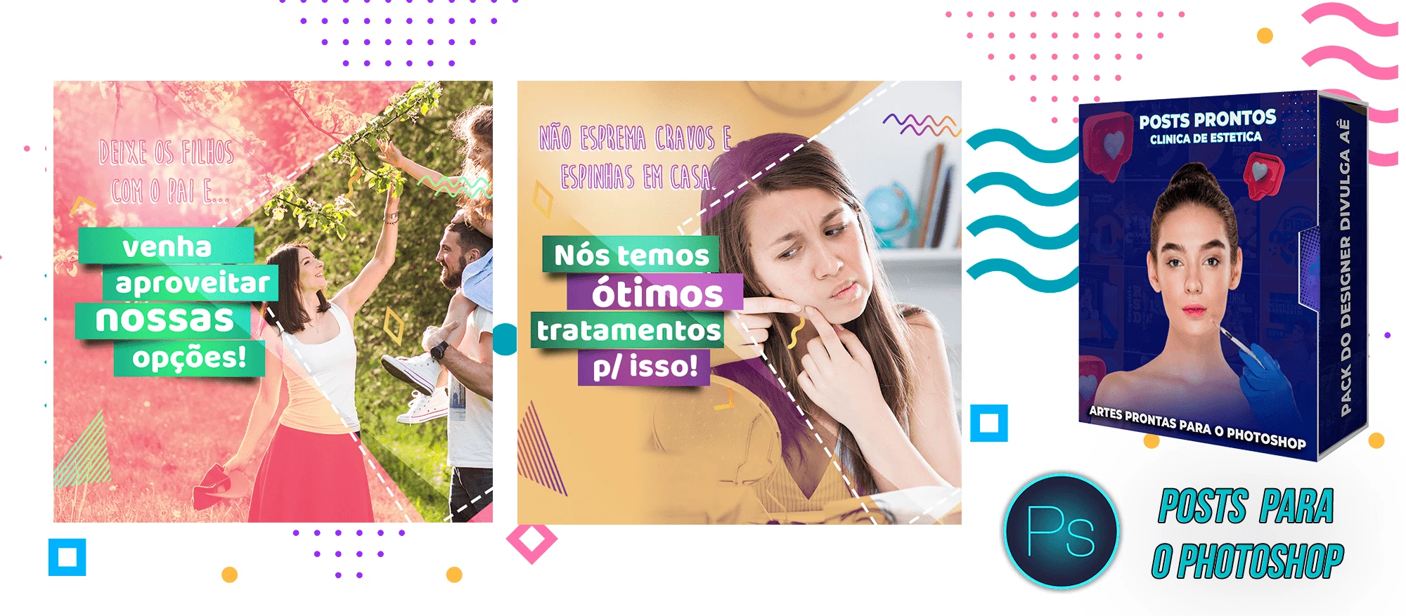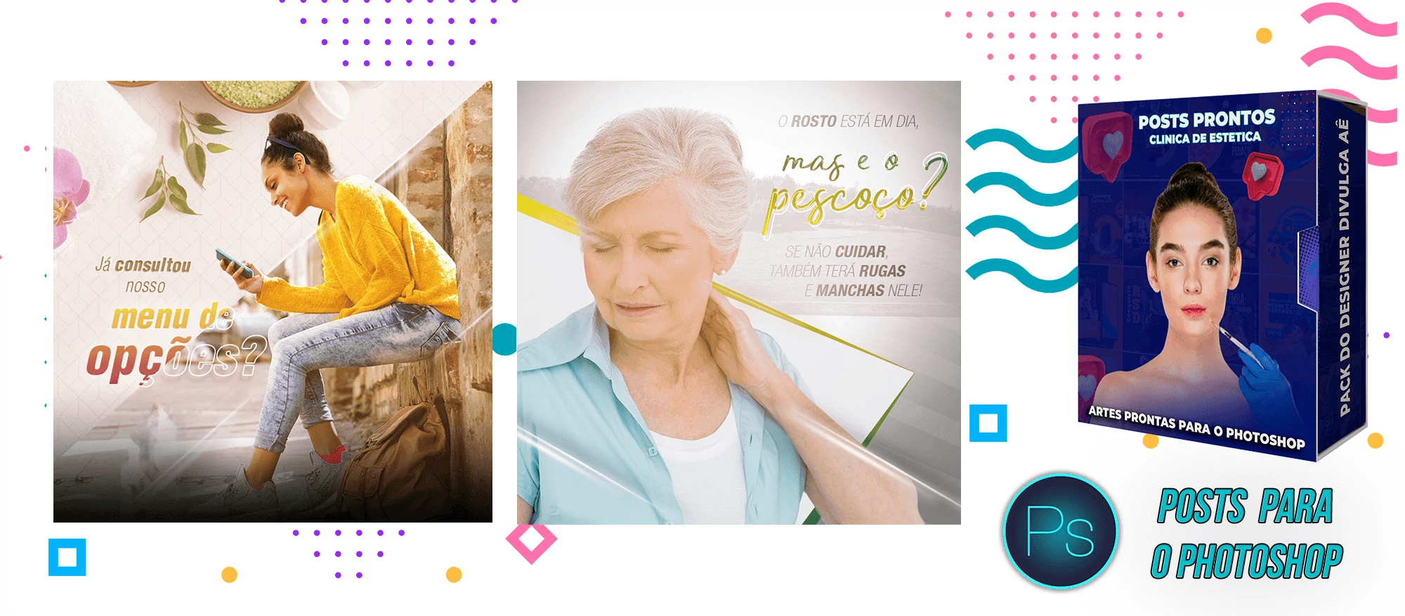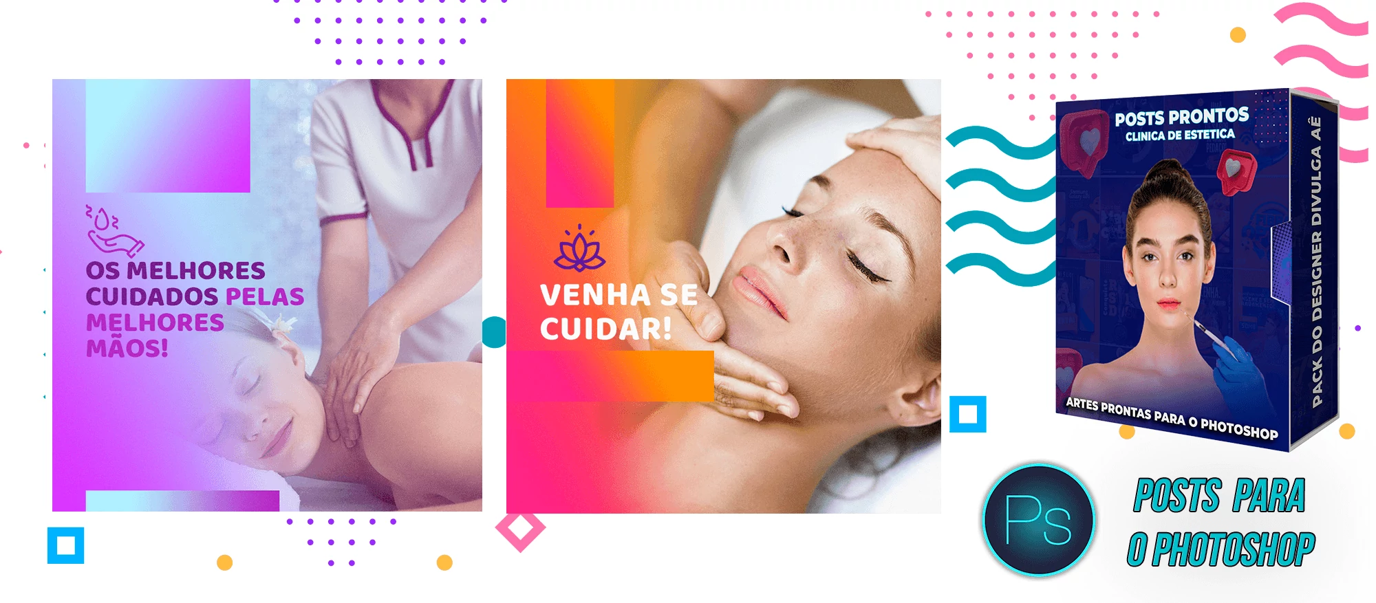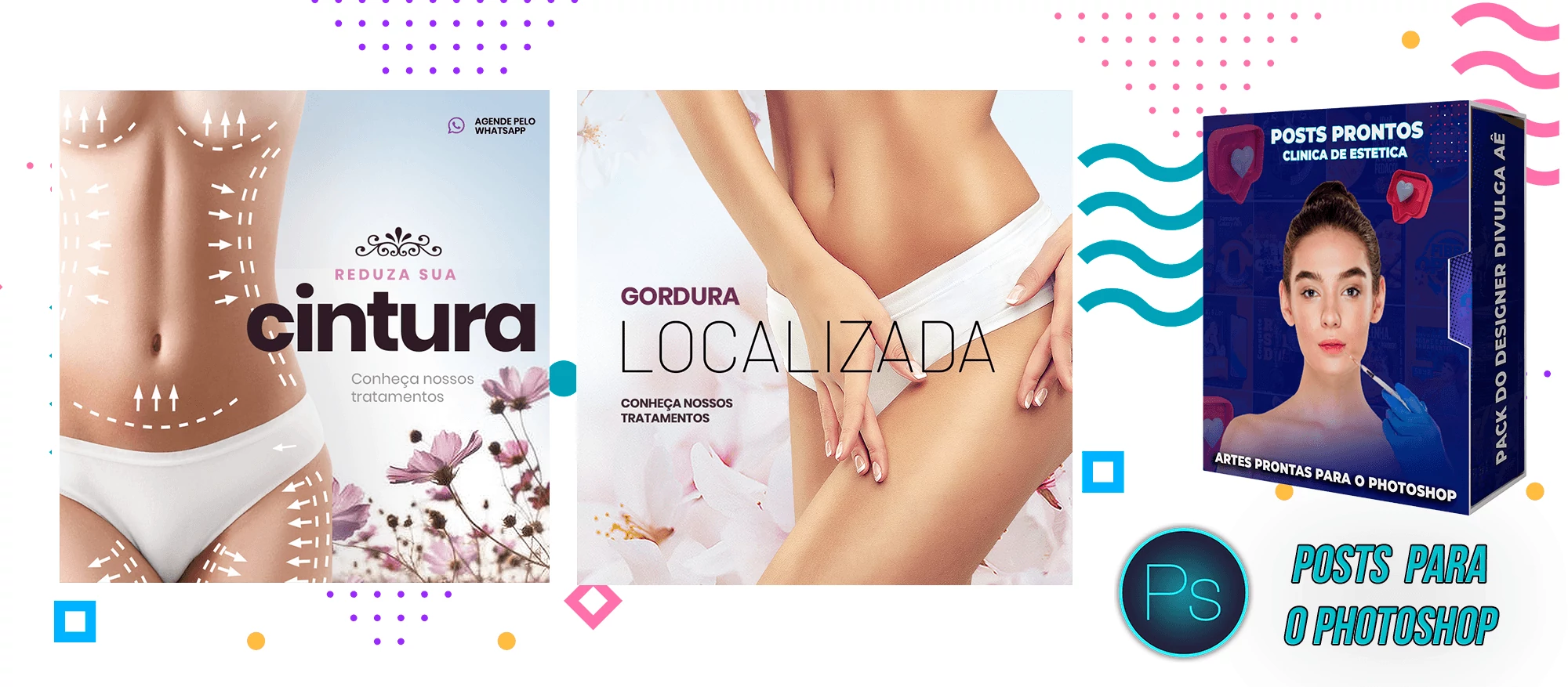 Pack elaborado sob demanda com mais de 250 Posts para Clínicas, Centros de Estética/Cirurgia Plástica que precisa elaborar posts de forma rápida e prática, bastando apenas possuir o Photoshop editar os arquivos e colocar a marca da empresa, alterar o nome, e adicionar o WhatsApp, tudo em poucos segundos!