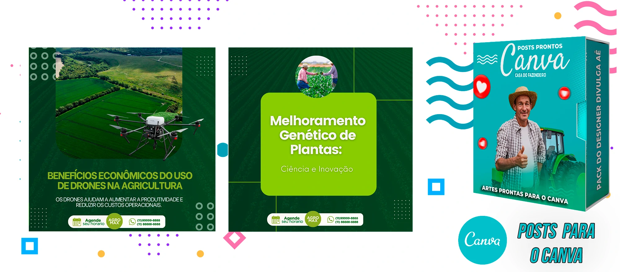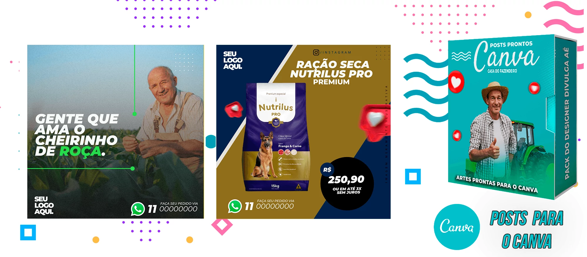 Pack elaborado sob demanda para AGROPECUÁRIA – CASA DO FAZENDEIRO + de 640 Artes incríveis, que vai promover o seu comércio. Bastando apenas possuir uma conta Gratuita no Canva para editar o Template, tudo em poucos segundos!