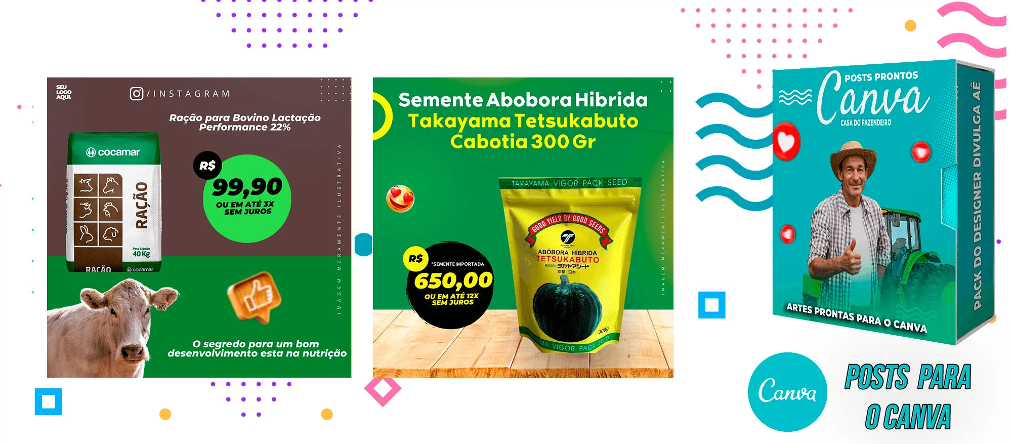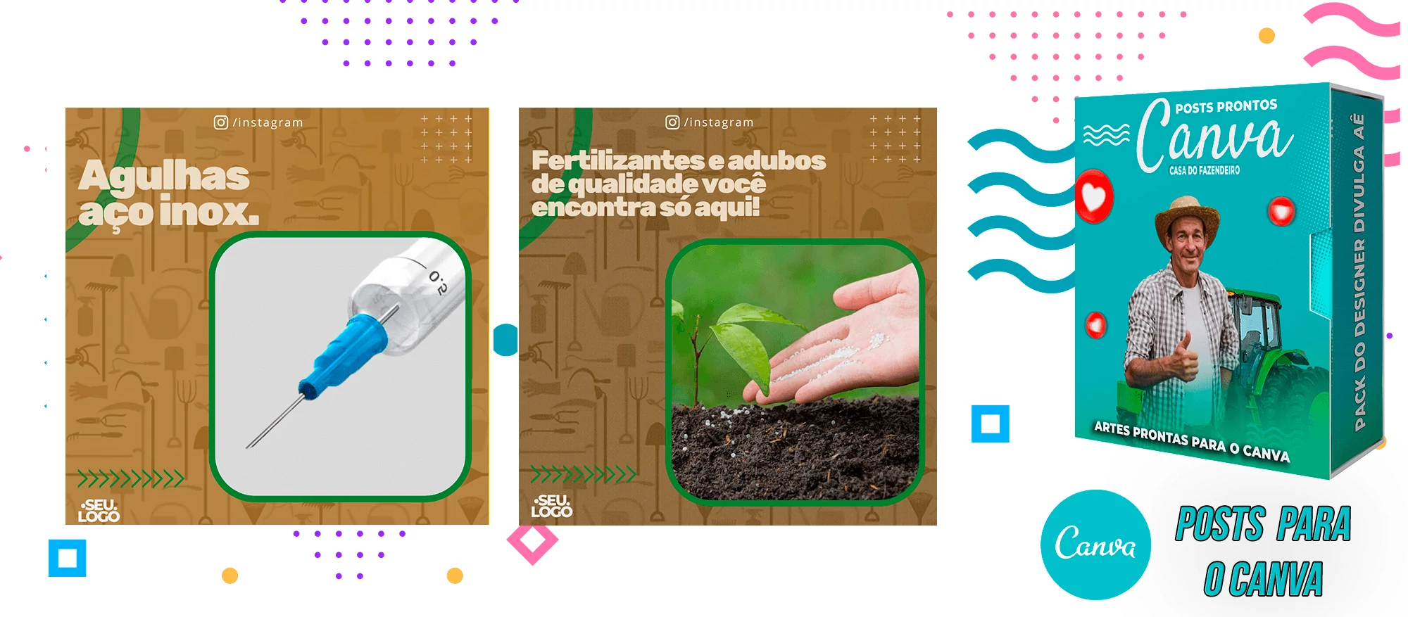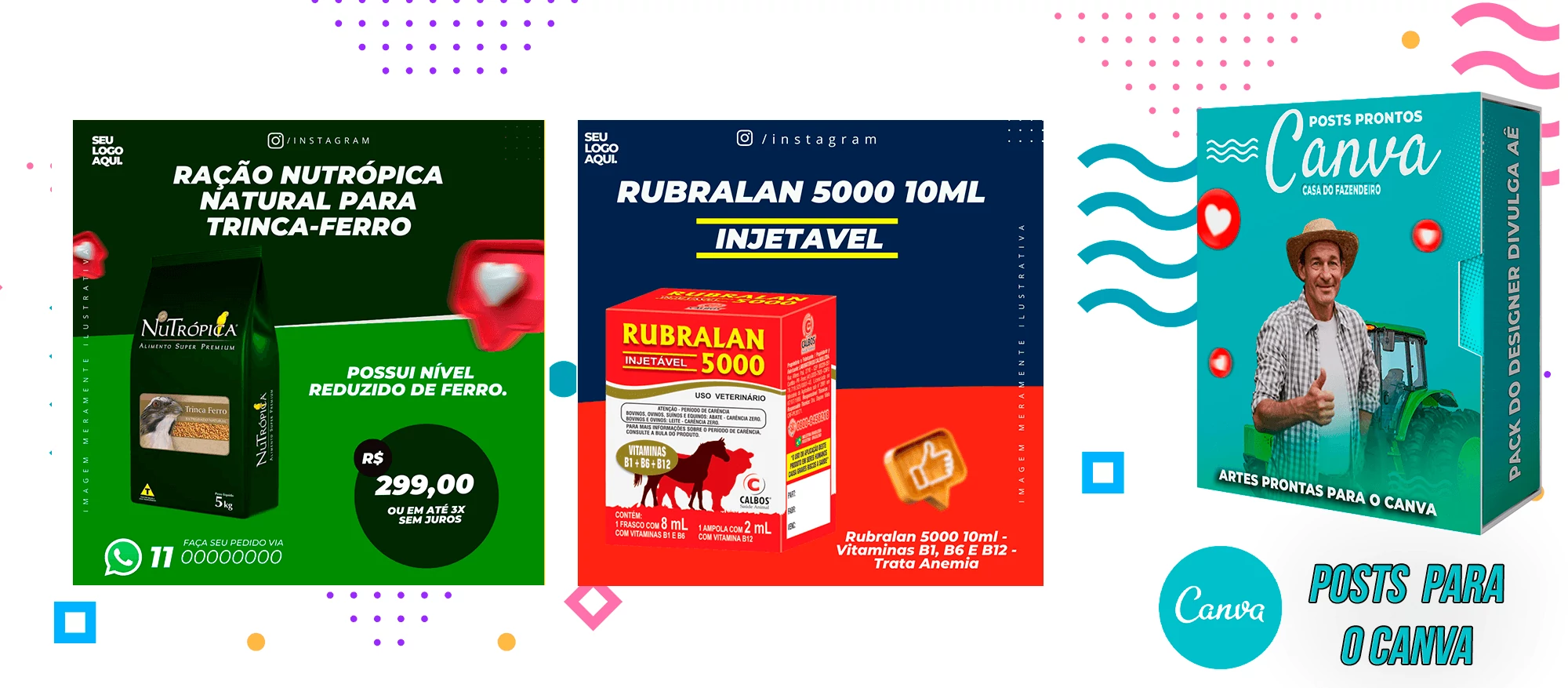 Pack de Posts Prontos com Legendas para Agropecuária – Loja do fazendeiro no Canva