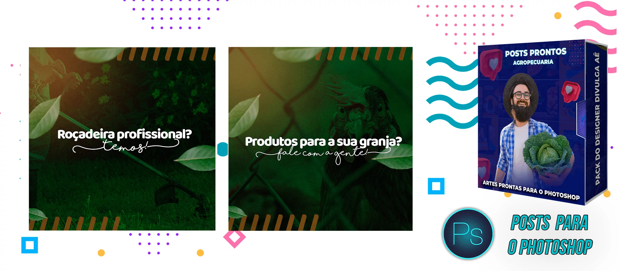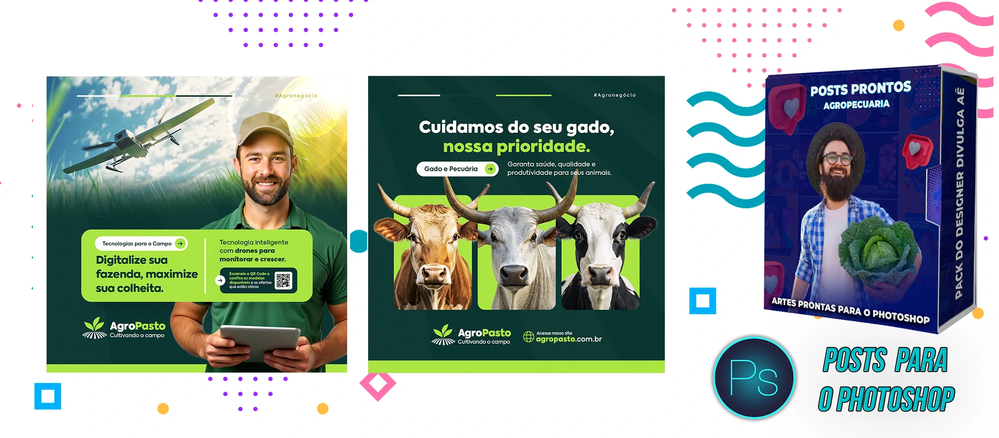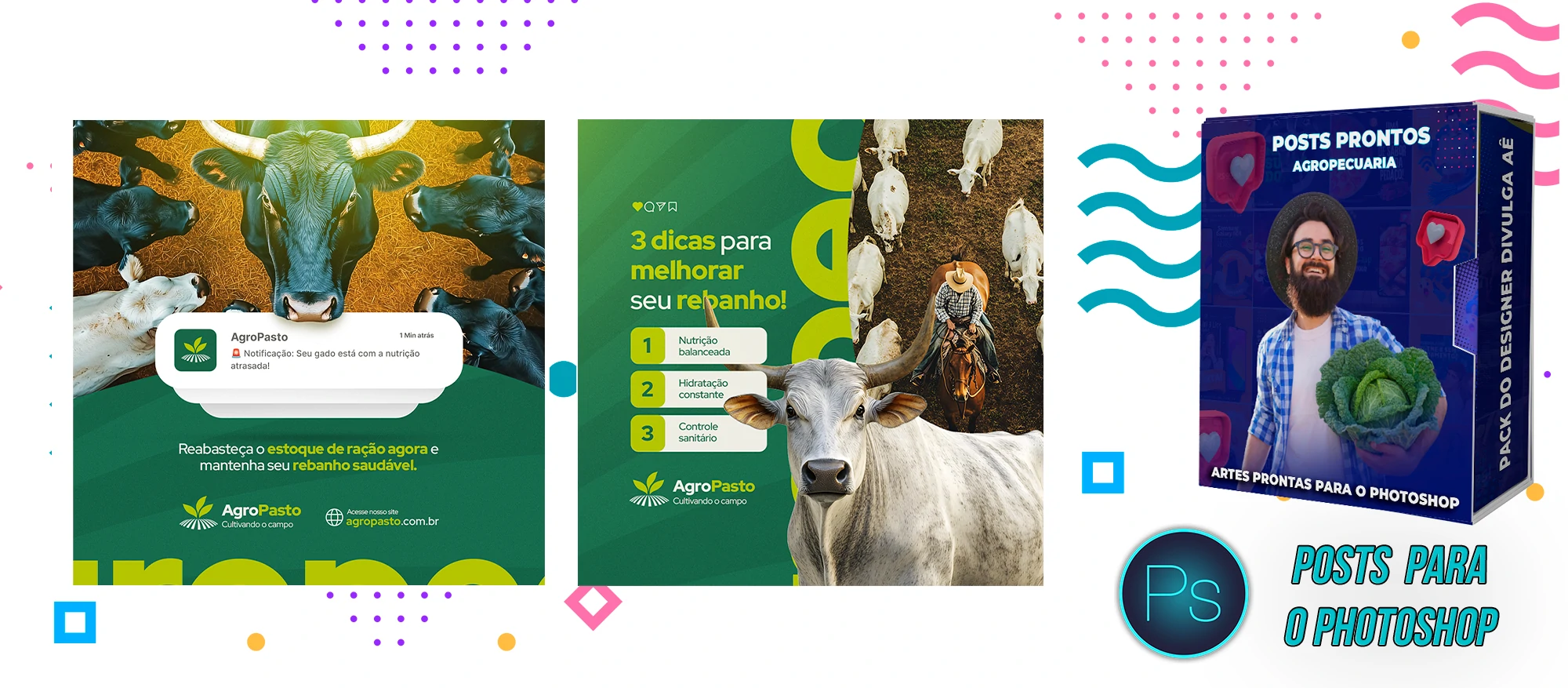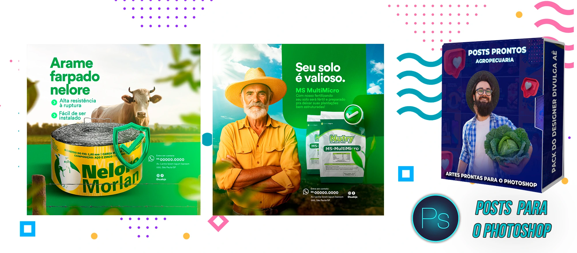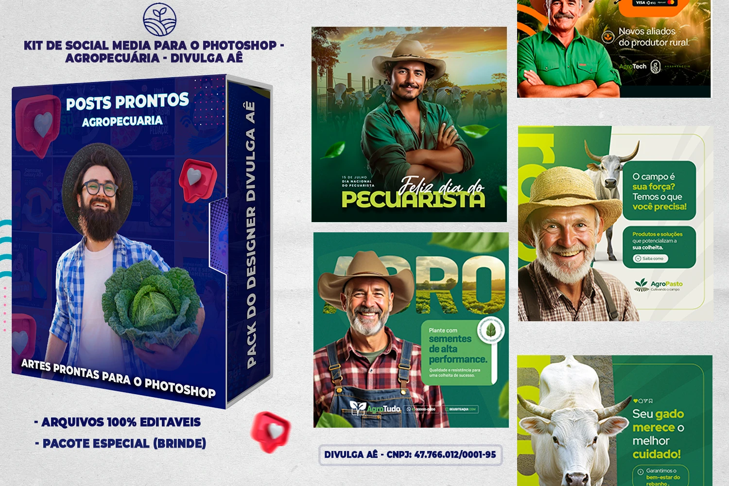 🌾🐄 Pack elaborado sob demanda para Agropecuária e Casa do Fazendeiro com mais de 400 artes incríveis, criadas para promover seu comércio de forma profissional. Basta editar os arquivos no Photoshop, inserir a marca, alterar o nome e adicionar o WhatsApp — tudo em poucos segundos! ⚡