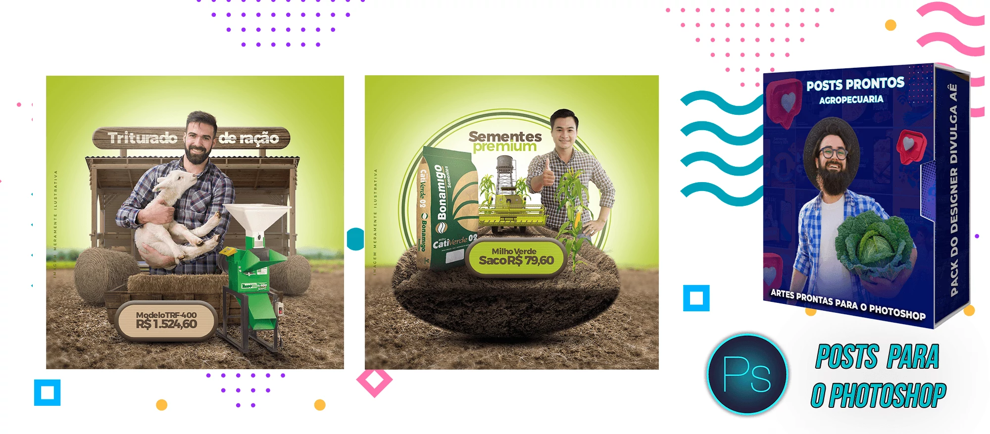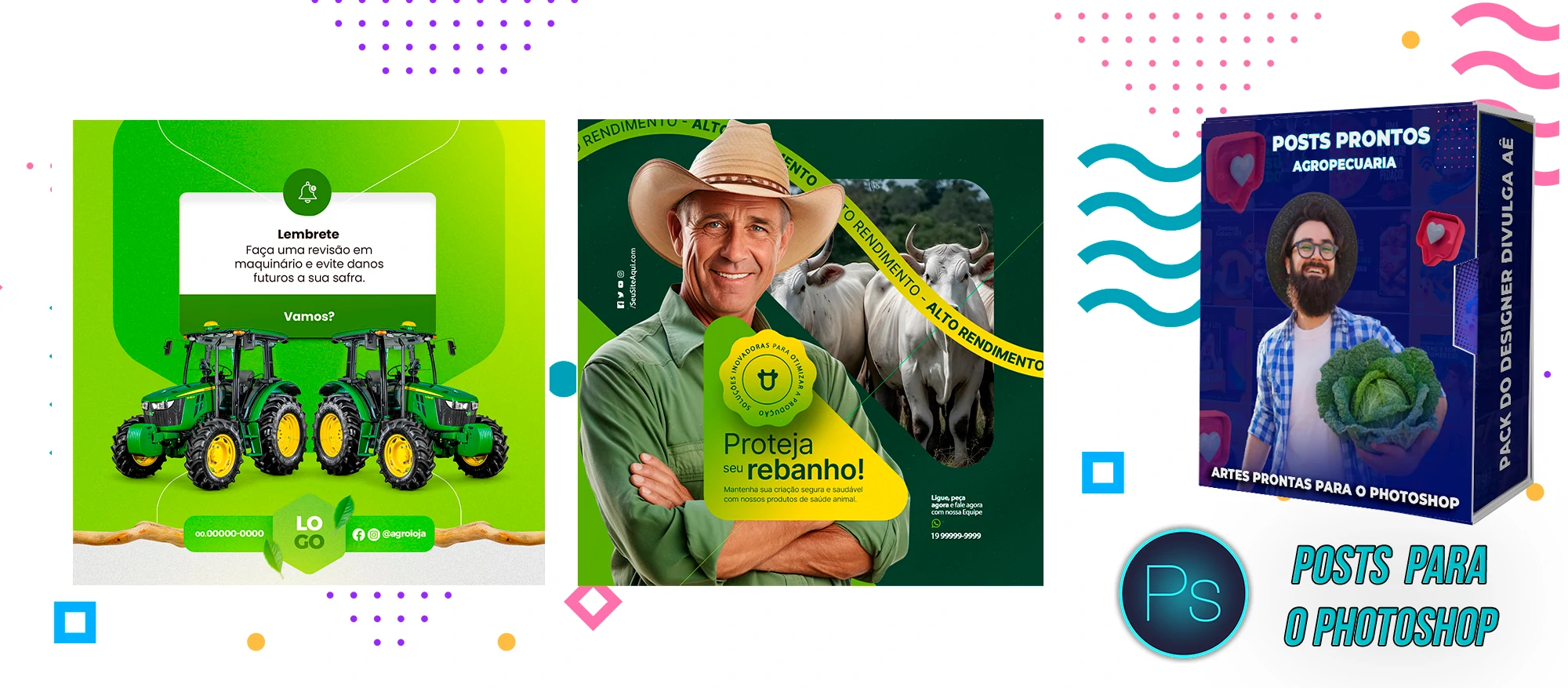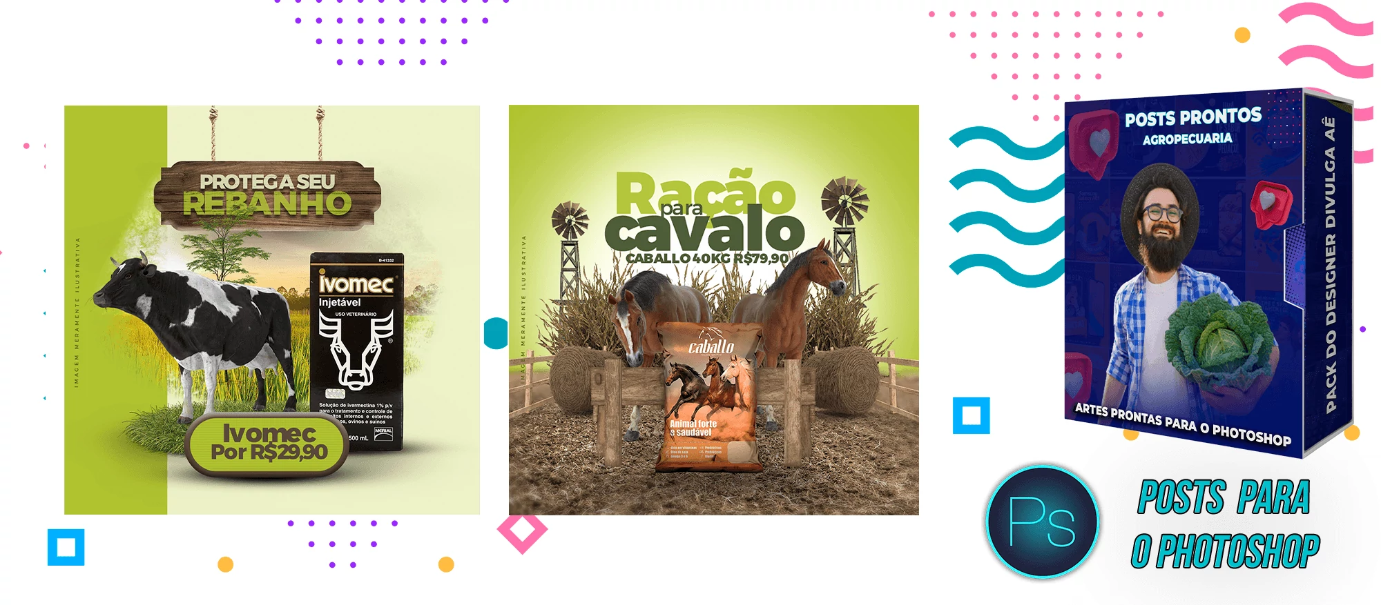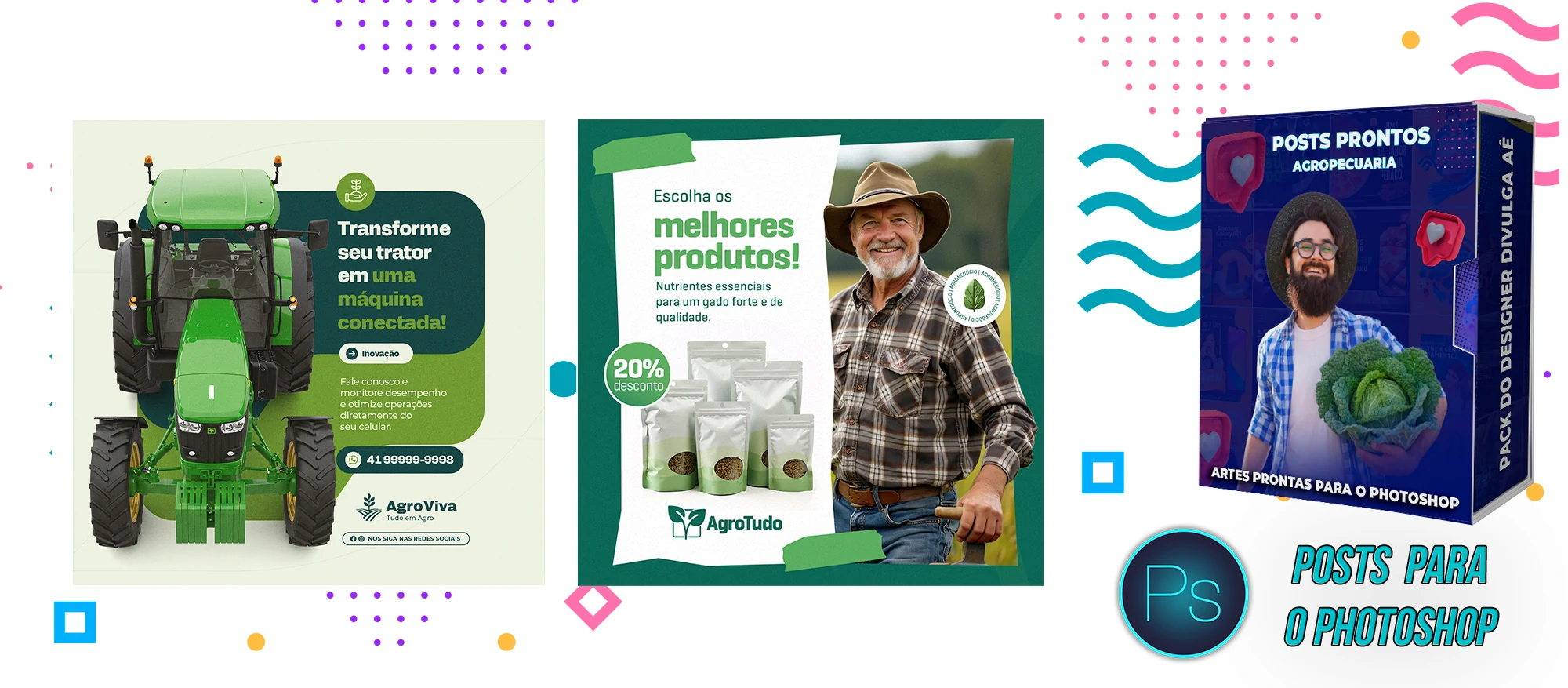 🌾🐄 Pack elaborado sob demanda para Agropecuária e Casa do Fazendeiro com mais de 400 artes incríveis, criadas para promover seu comércio de forma profissional. Basta editar os arquivos no Photoshop, inserir a marca, alterar o nome e adicionar o WhatsApp — tudo em poucos segundos! ⚡