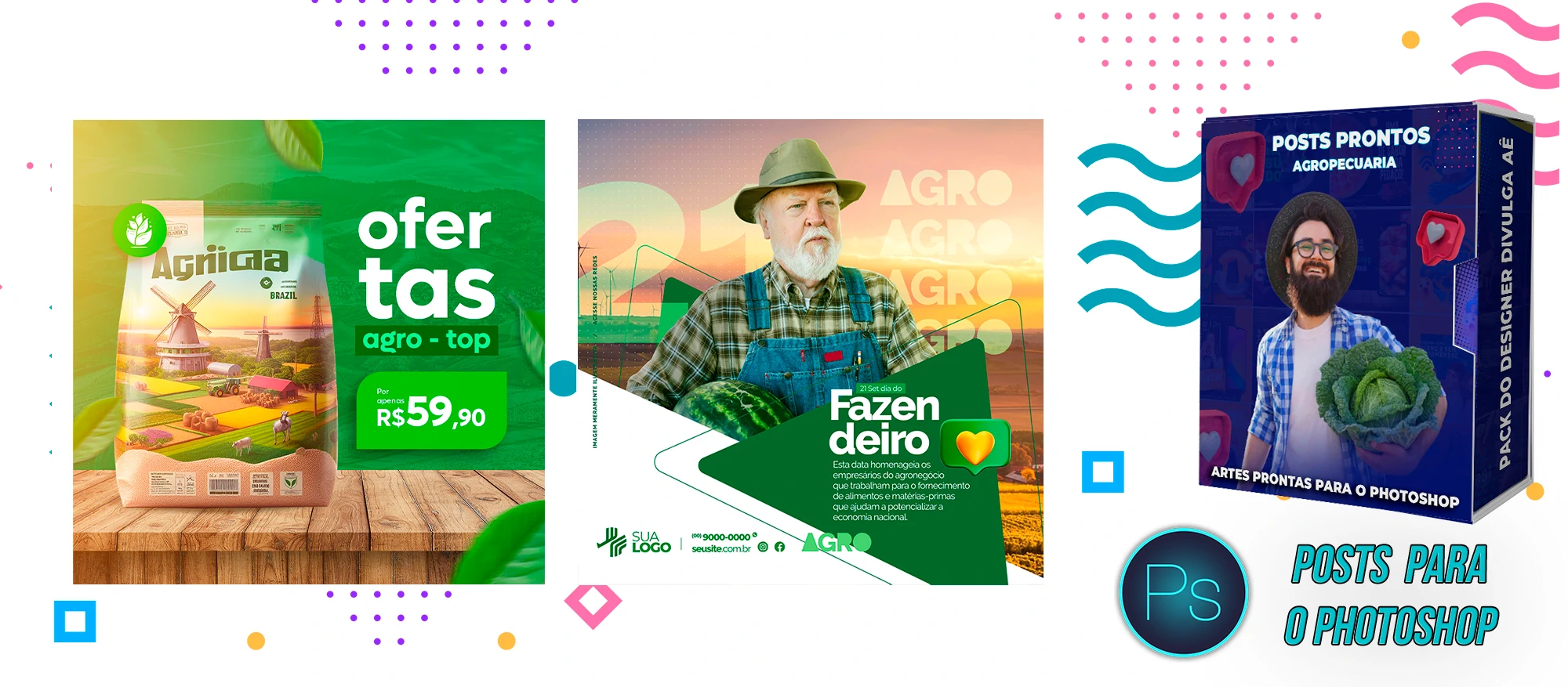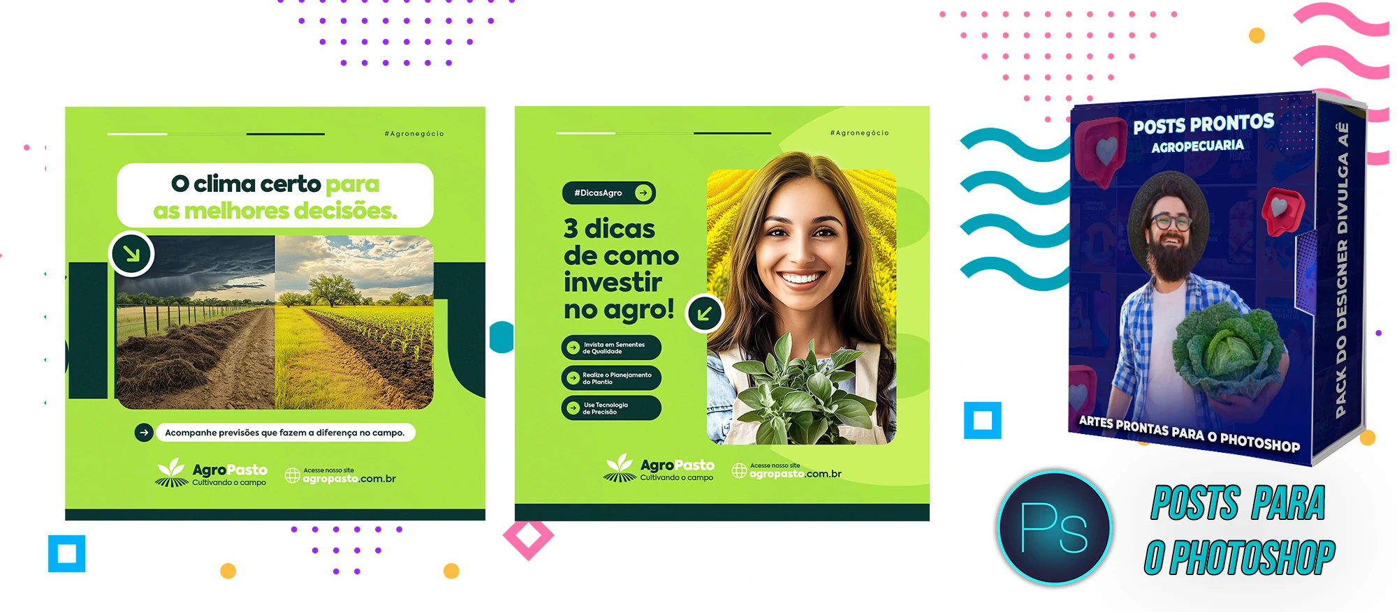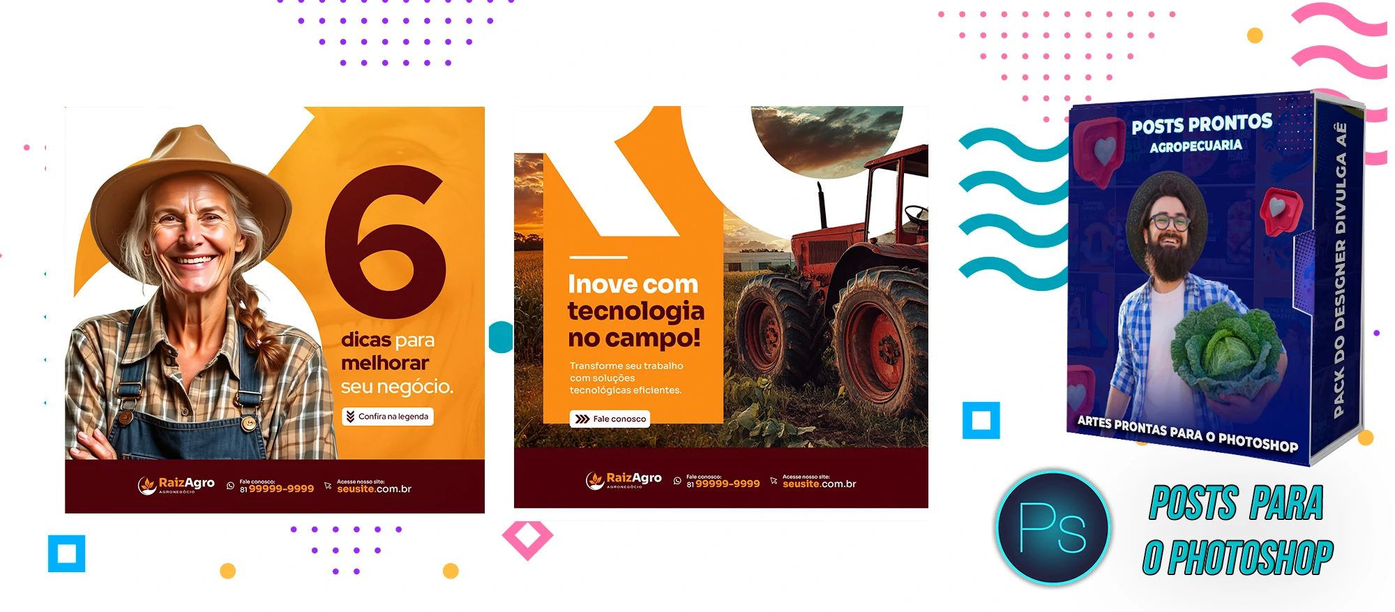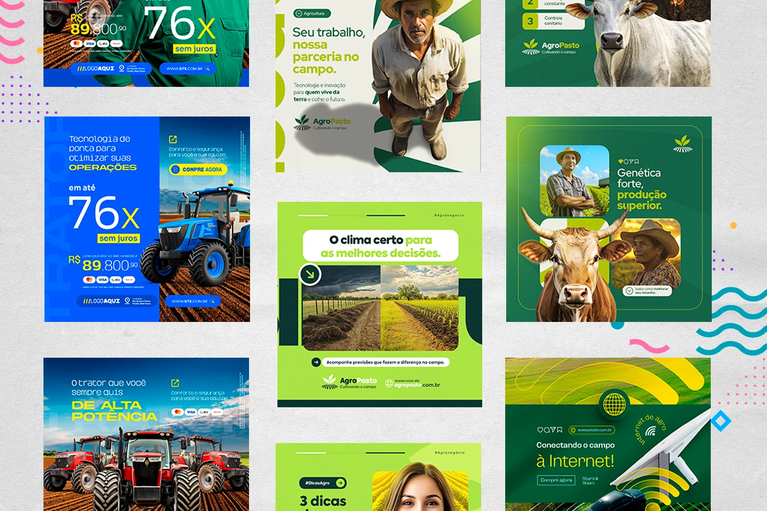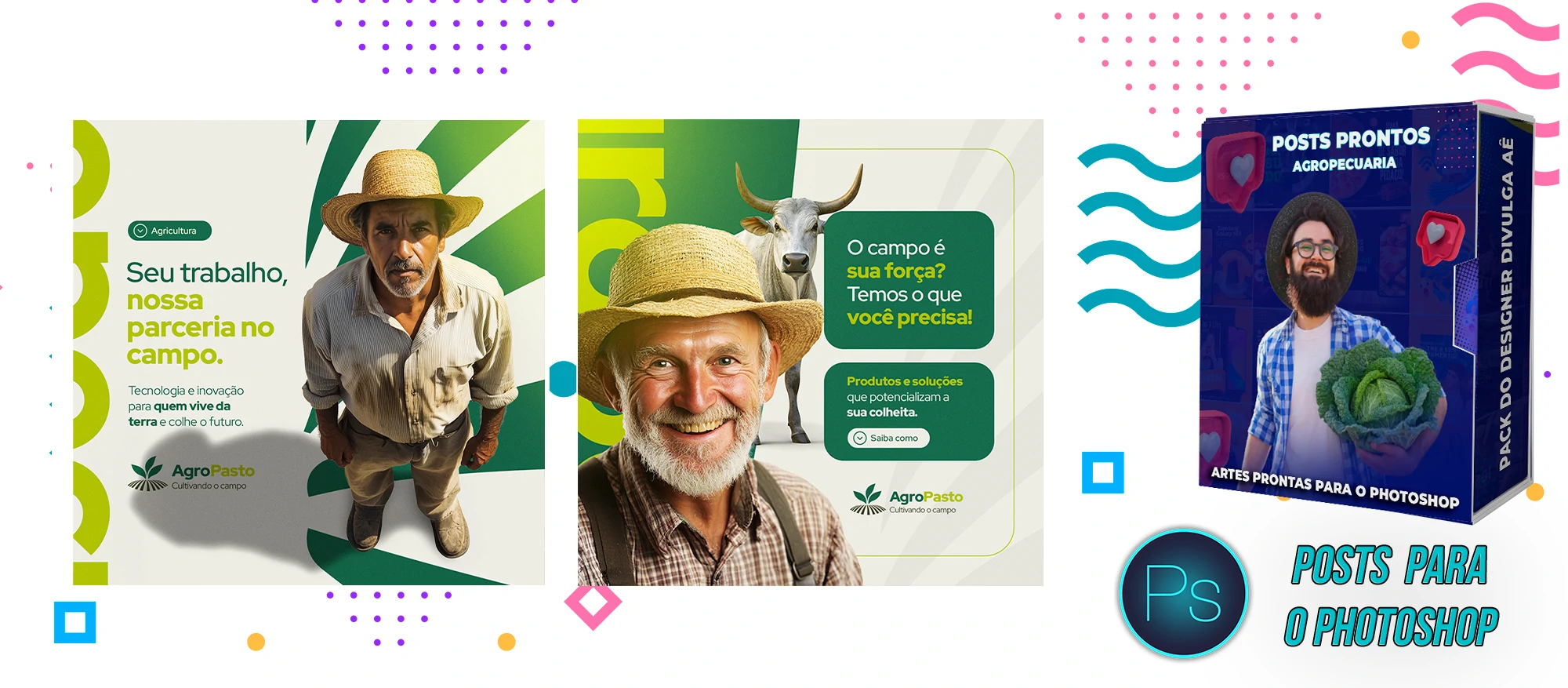🌾🐄 Pack elaborado sob demanda para Agropecuária e Casa do Fazendeiro com mais de 400 artes incríveis, criadas para promover seu comércio de forma profissional. Basta editar os arquivos no Photoshop, inserir a marca, alterar o nome e adicionar o WhatsApp — tudo em poucos segundos! ⚡