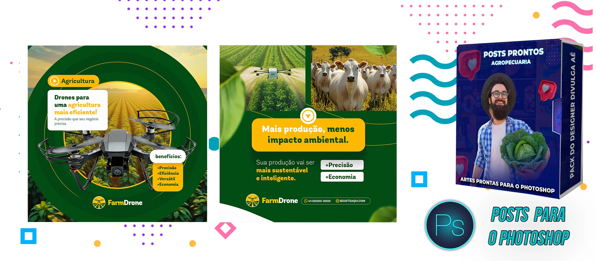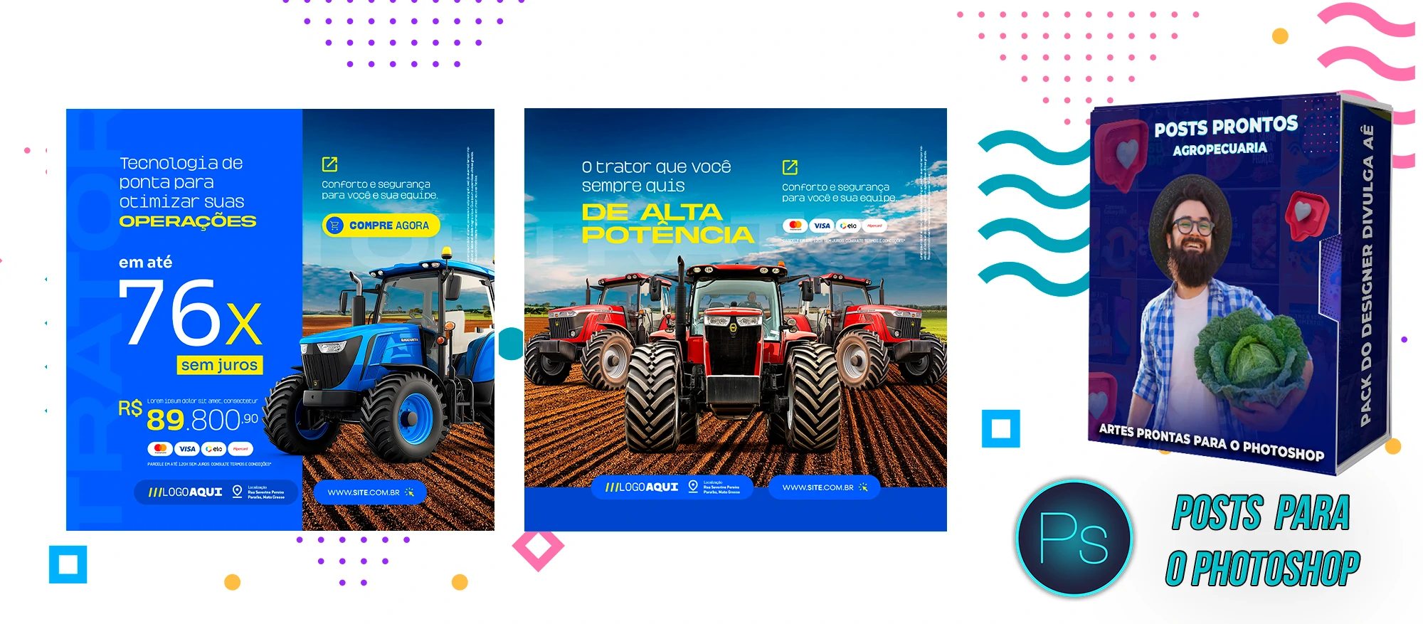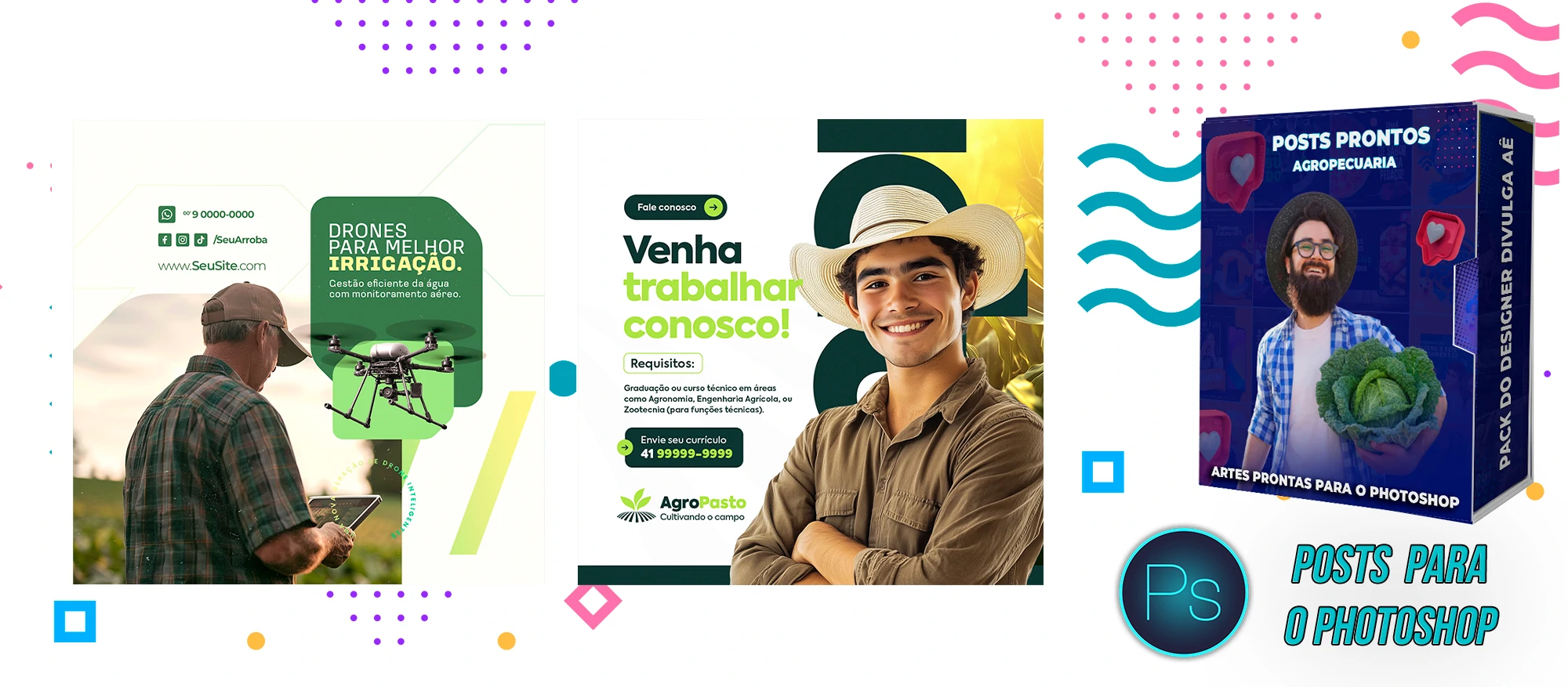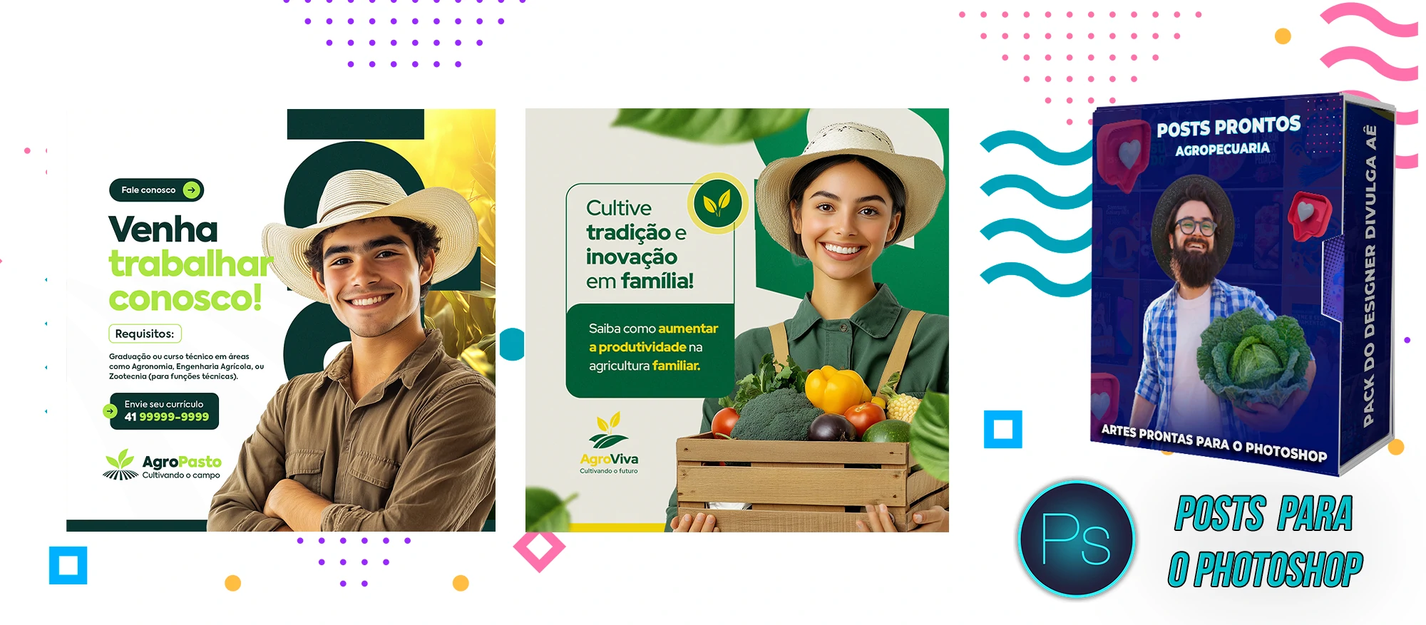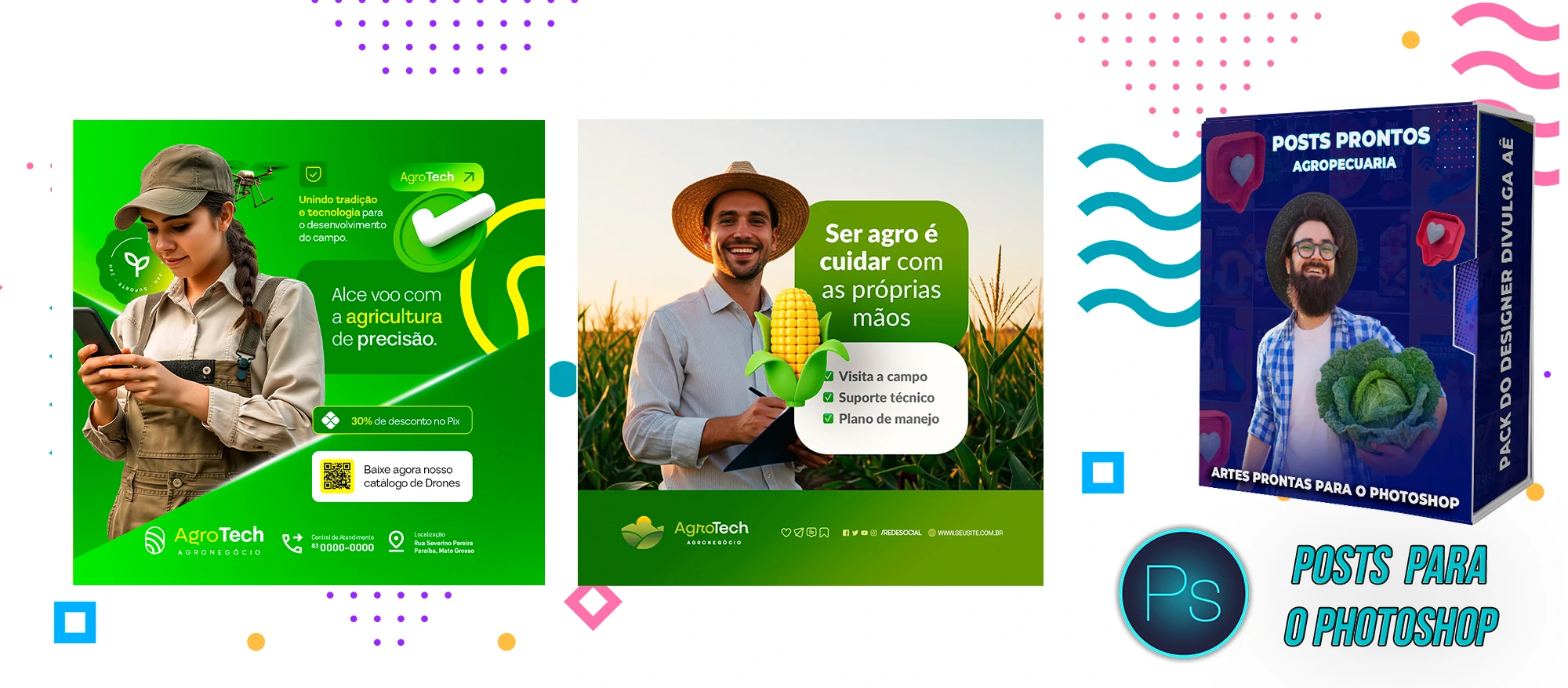 🌾🐄 Pack elaborado sob demanda para Agropecuária e Casa do Fazendeiro com mais de 400 artes incríveis, criadas para promover seu comércio de forma profissional. Basta editar os arquivos no Photoshop, inserir a marca, alterar o nome e adicionar o WhatsApp — tudo em poucos segundos! ⚡
