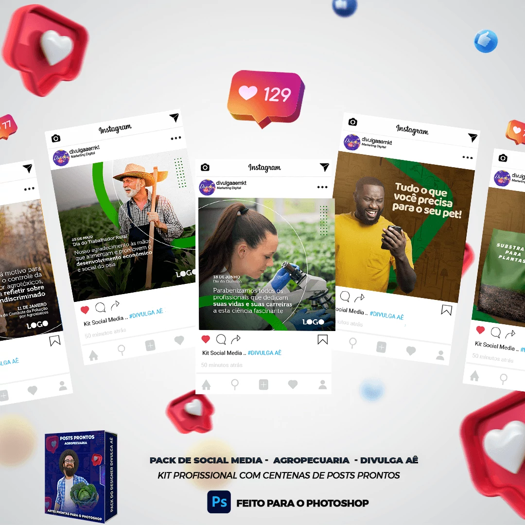 Pack de Posts Prontos com Legendas para Agropecuária – Loja do fazendeiro no Photoshop