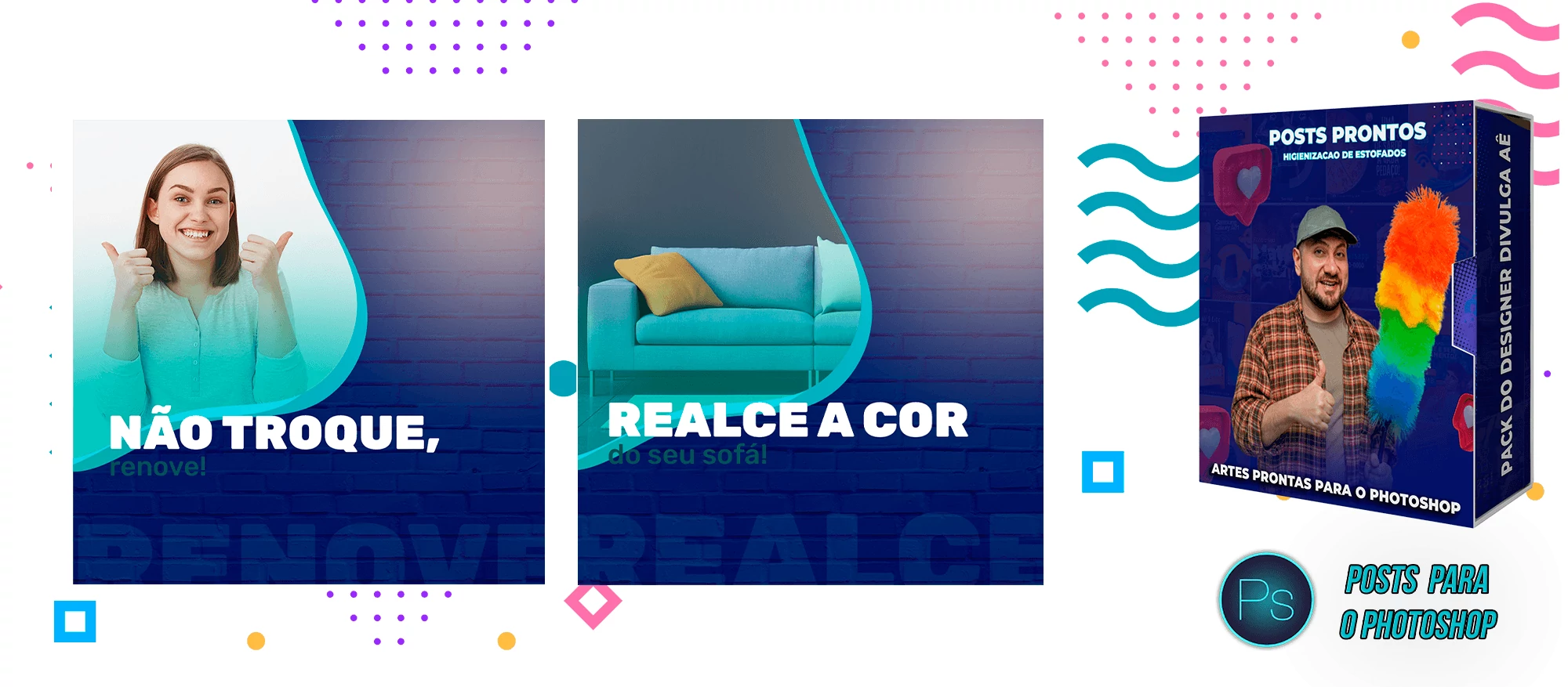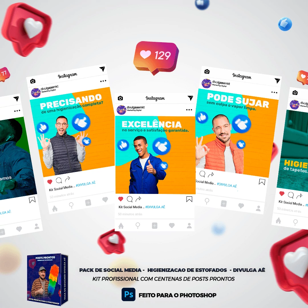 ✅+ 150 Posts Editáveis – Higienização de Estofados