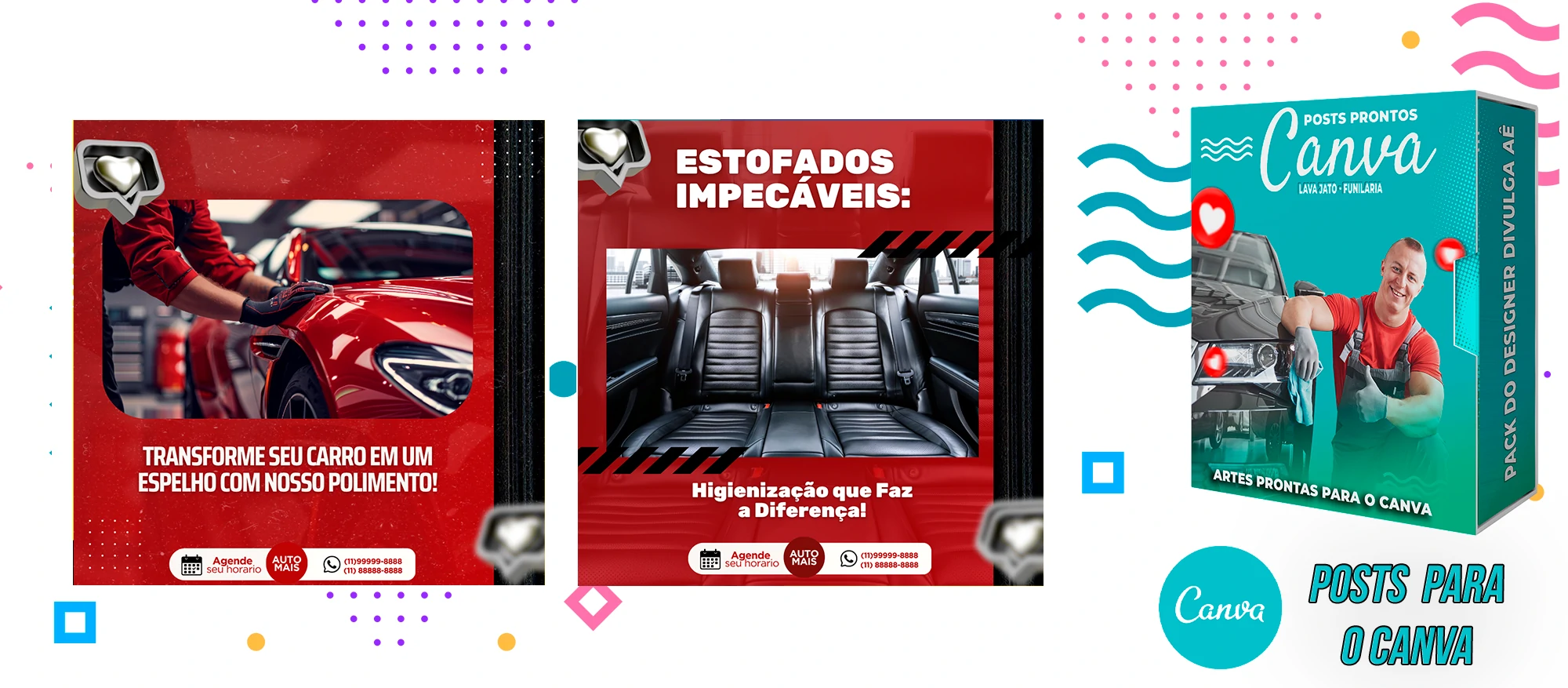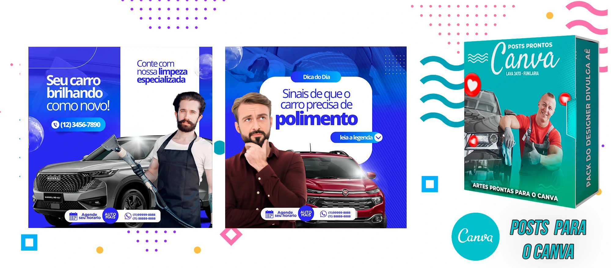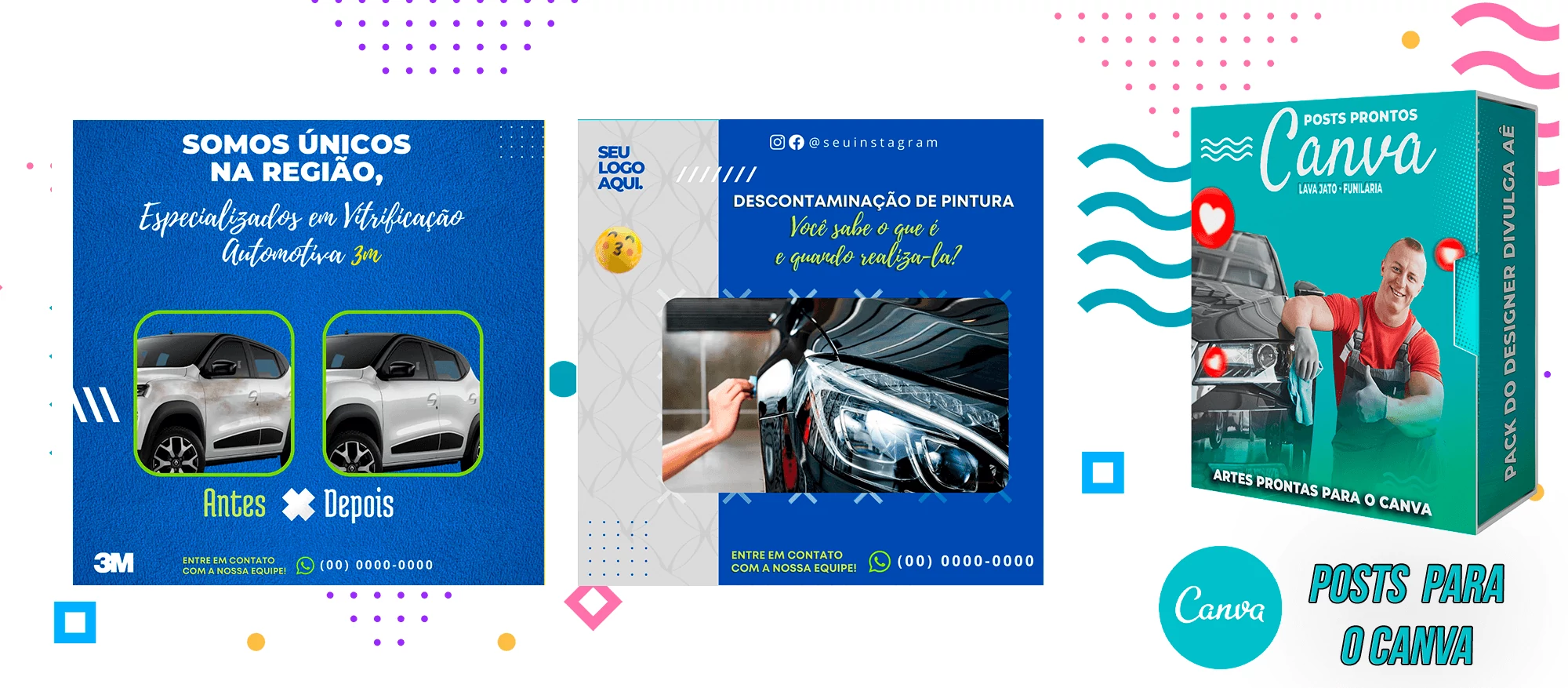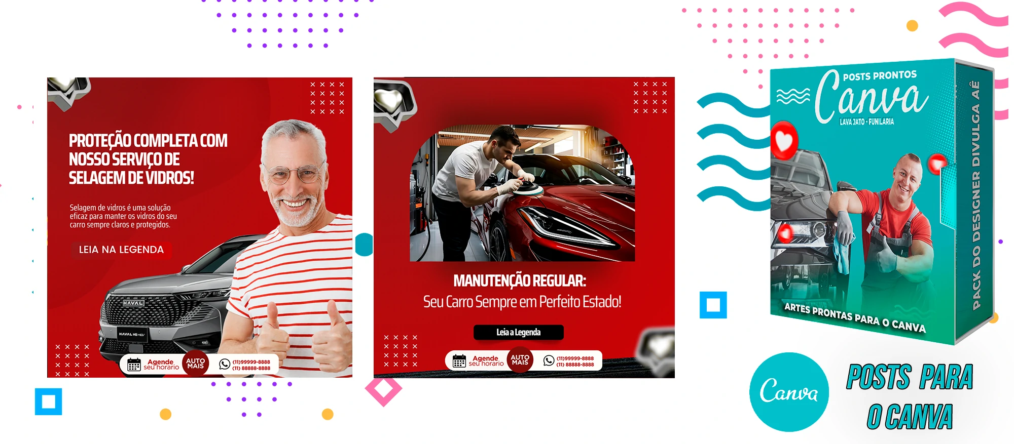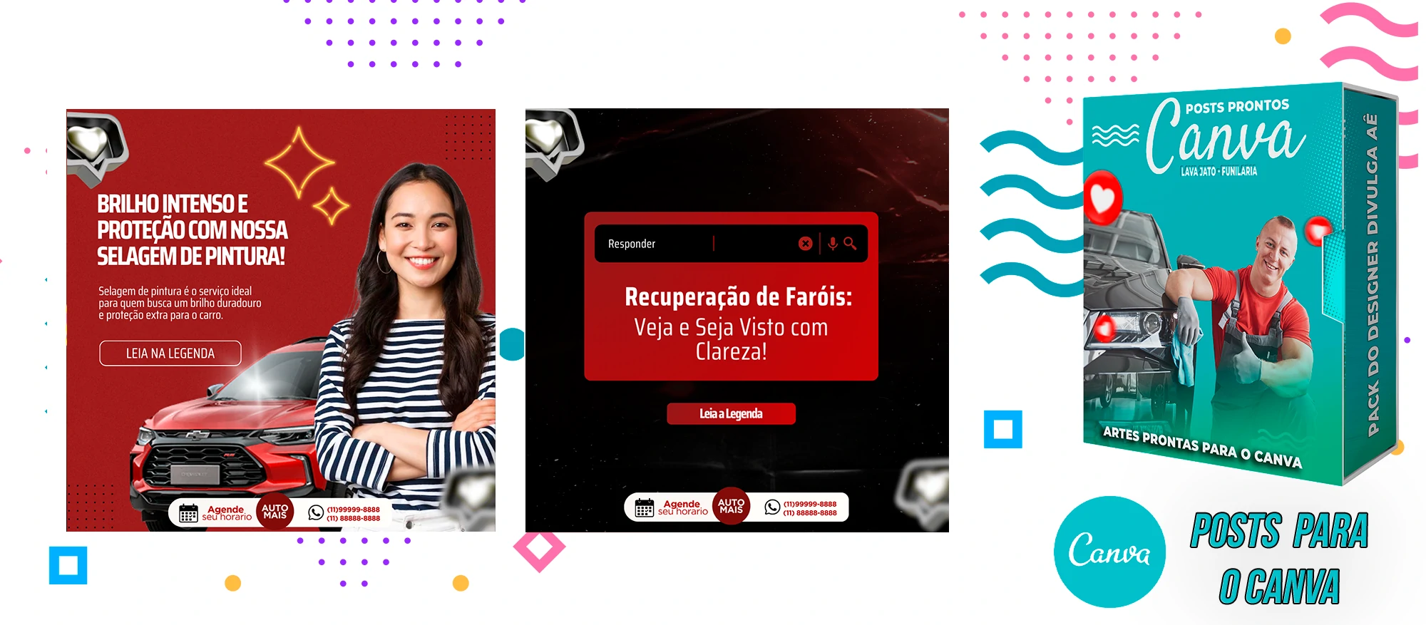 Pack de Posts Prontos com Legendas no Canva para Lava Jato – Funilaria e Estética Automotiva