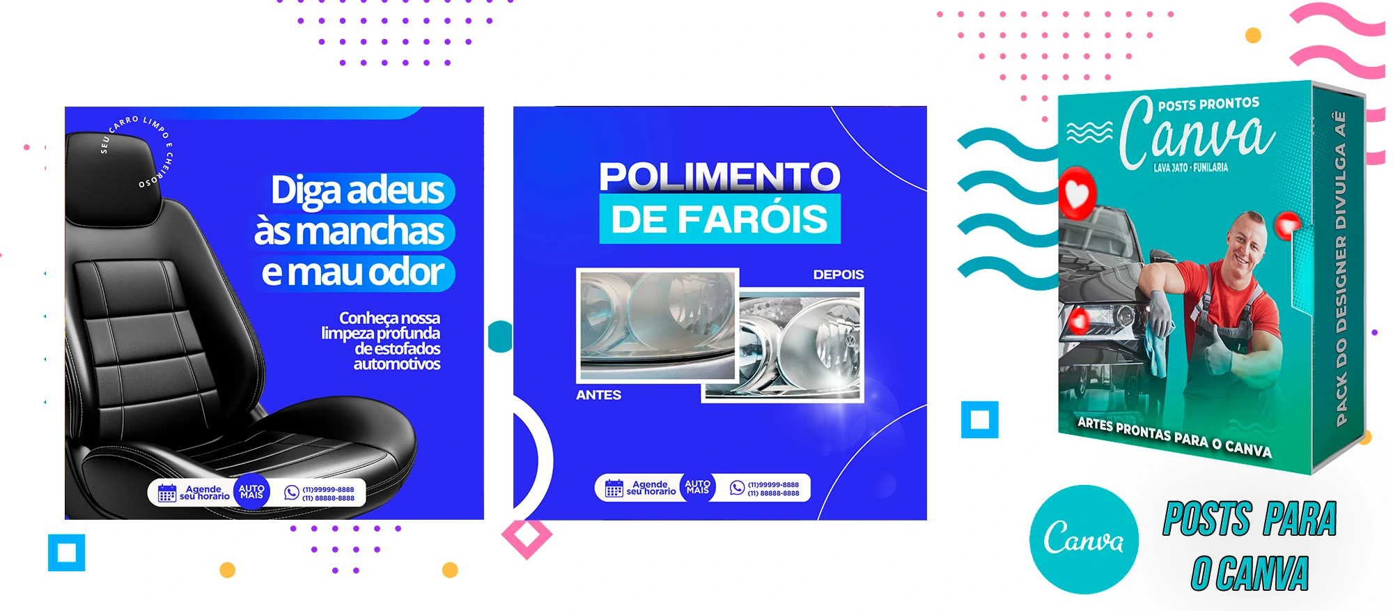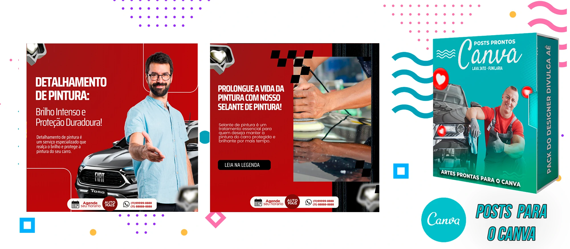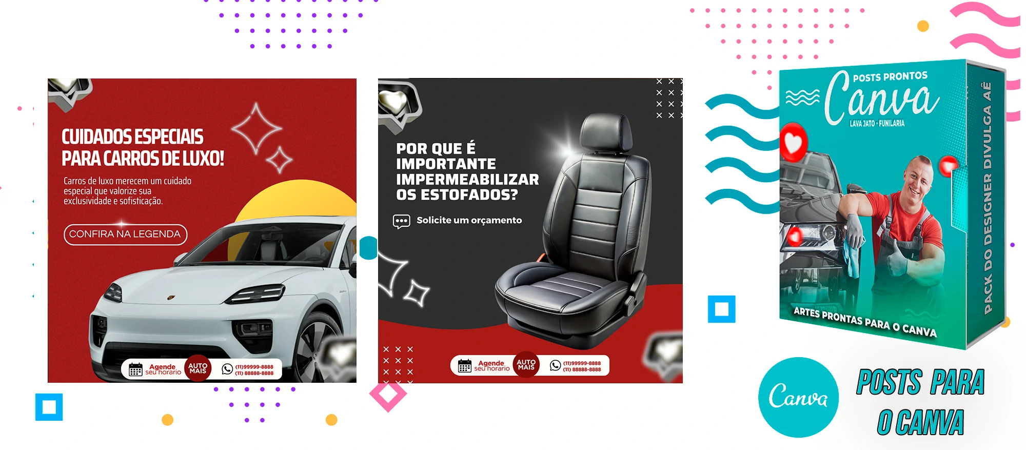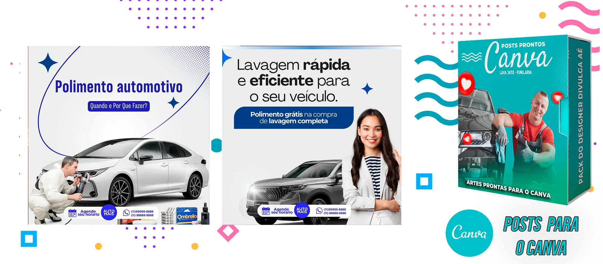 Pack de Posts Prontos com Legendas no Canva para Lava Jato – Funilaria e Estética Automotiva
