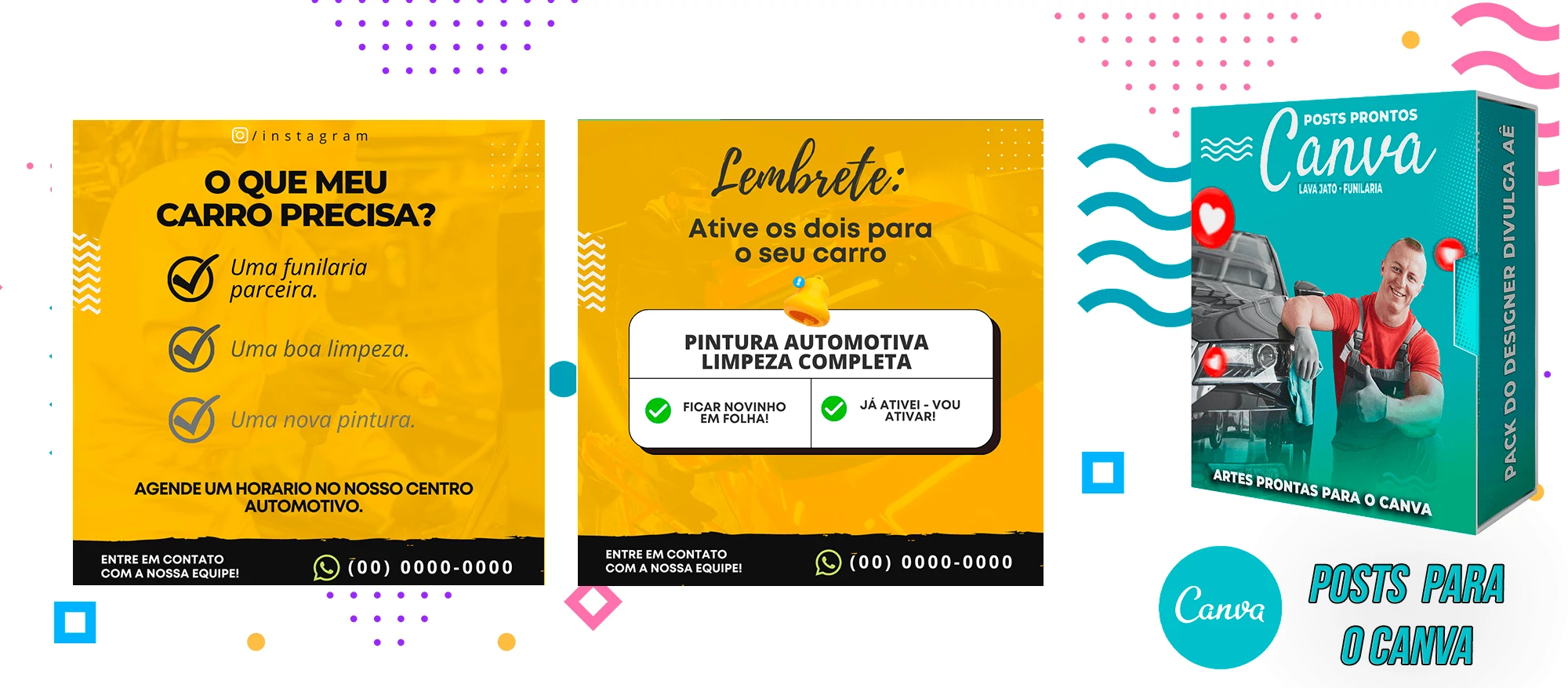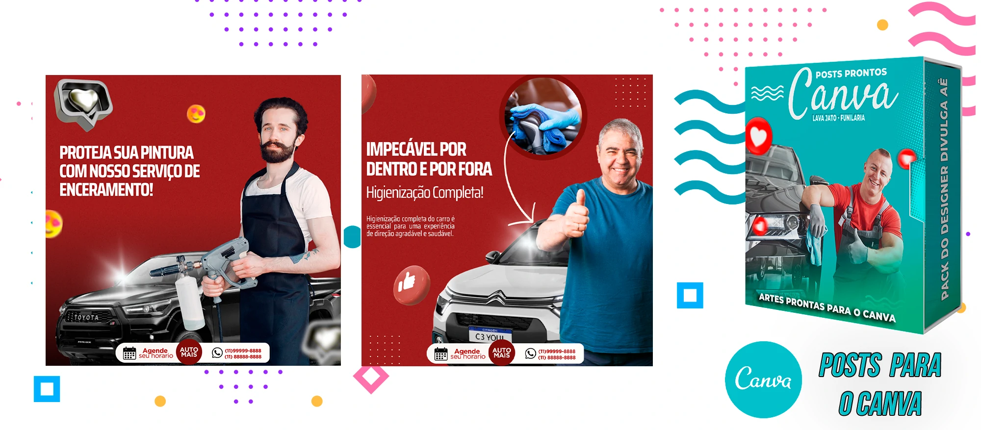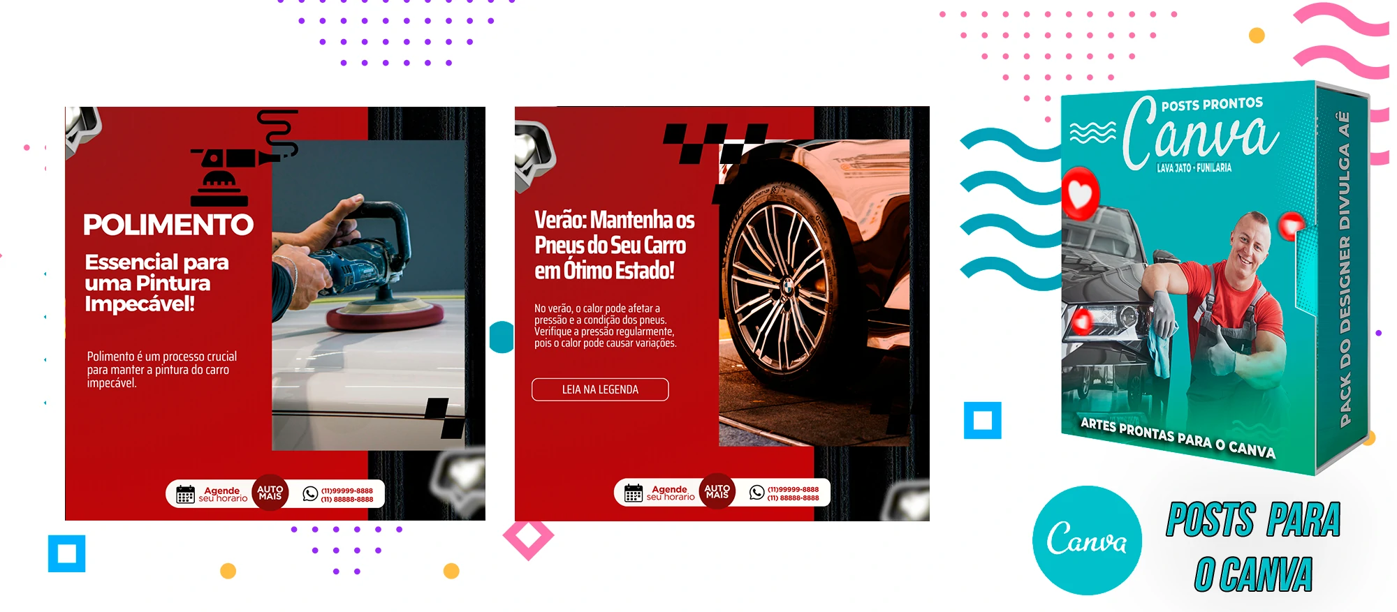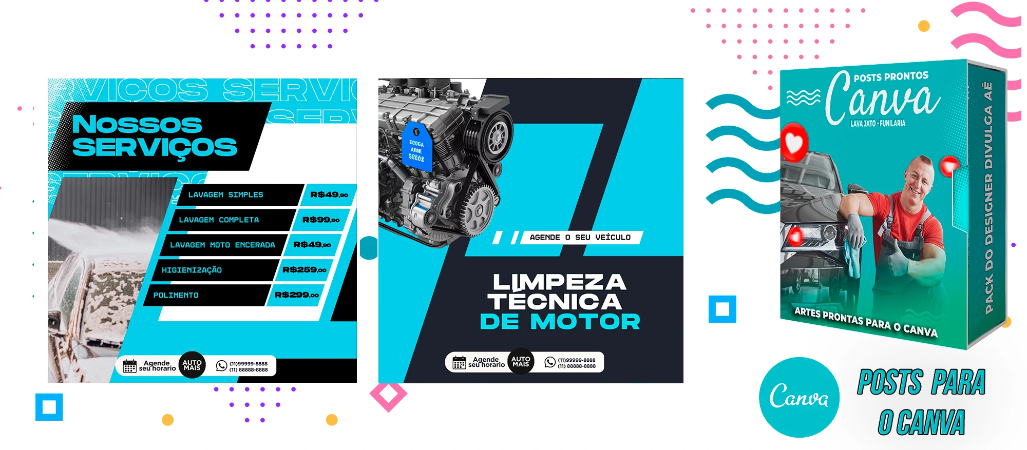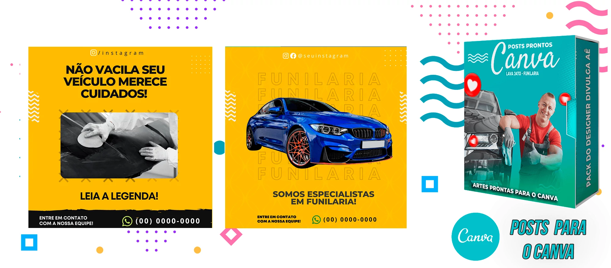 Pack de Posts Prontos com Legendas no Canva para Lava Jato – Funilaria e Estética Automotiva