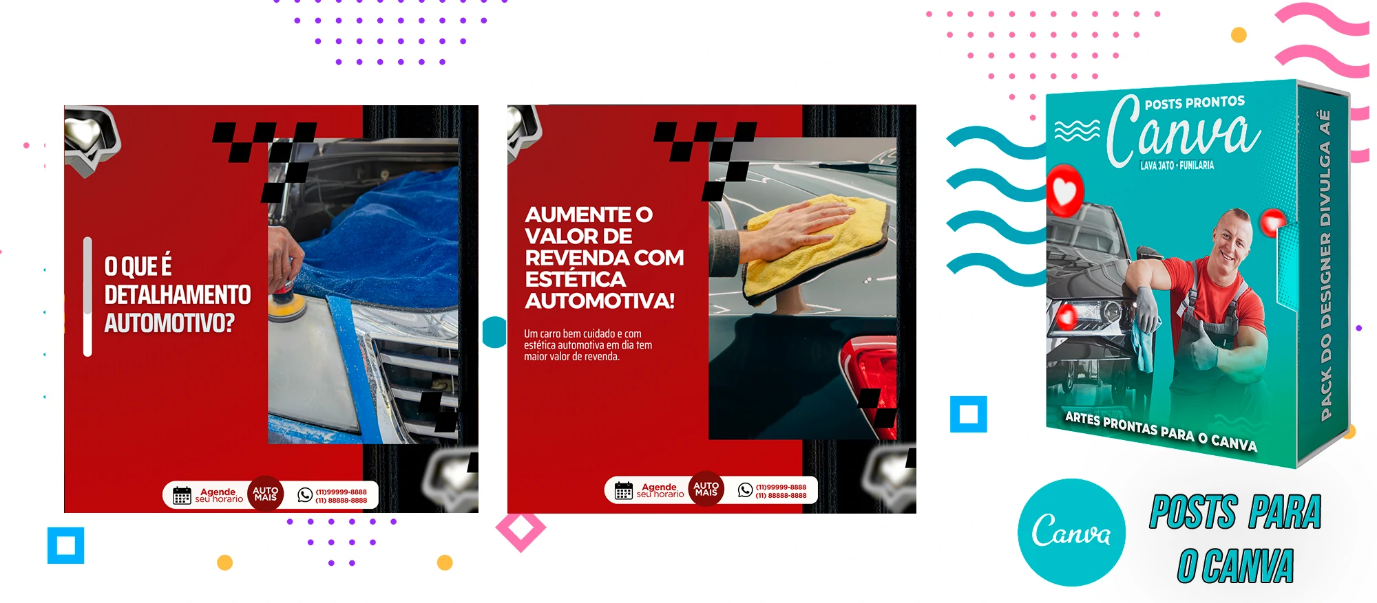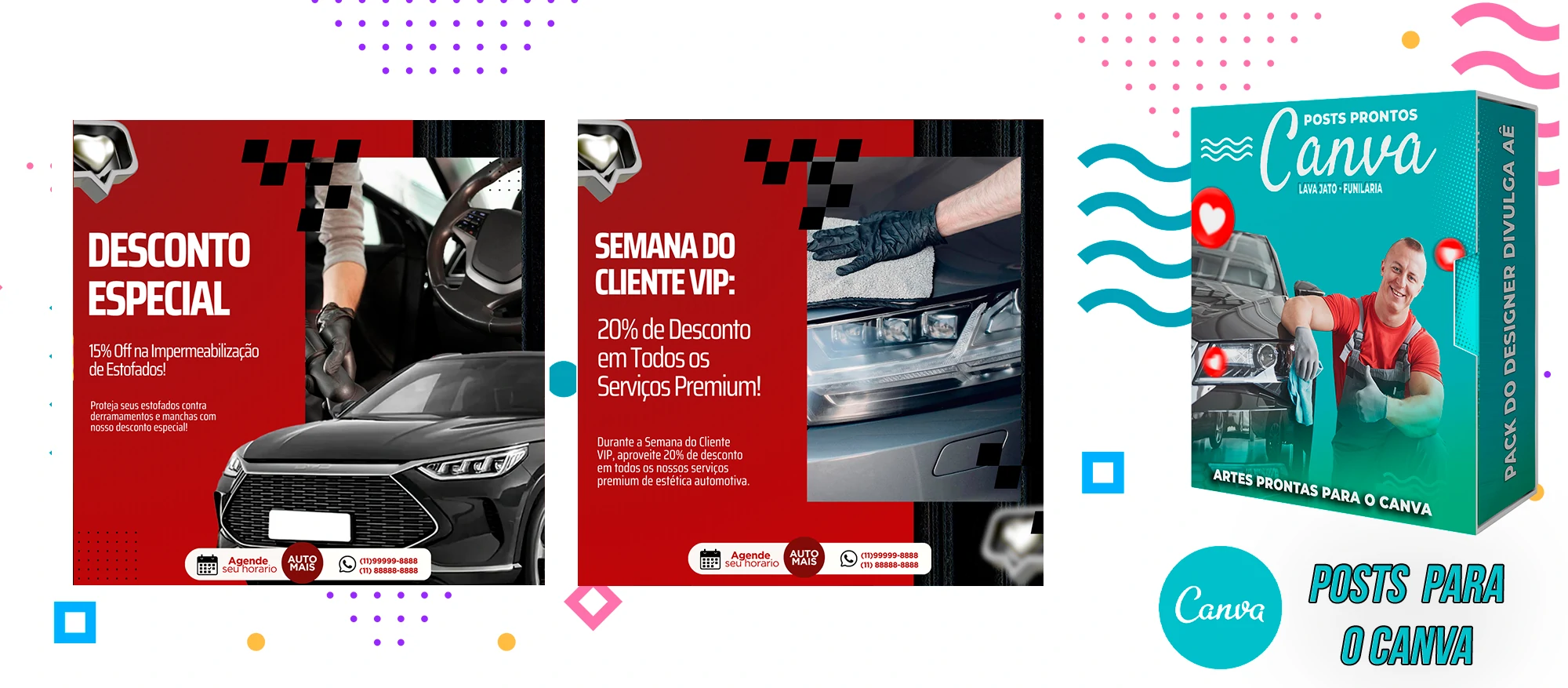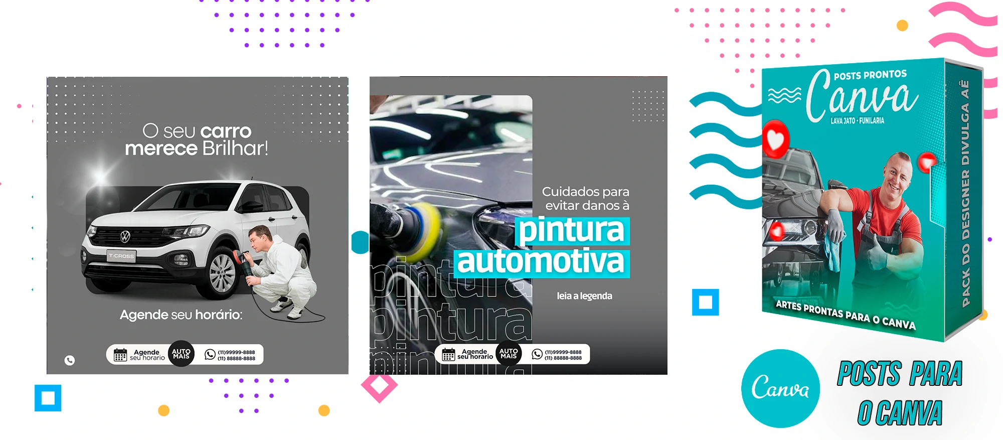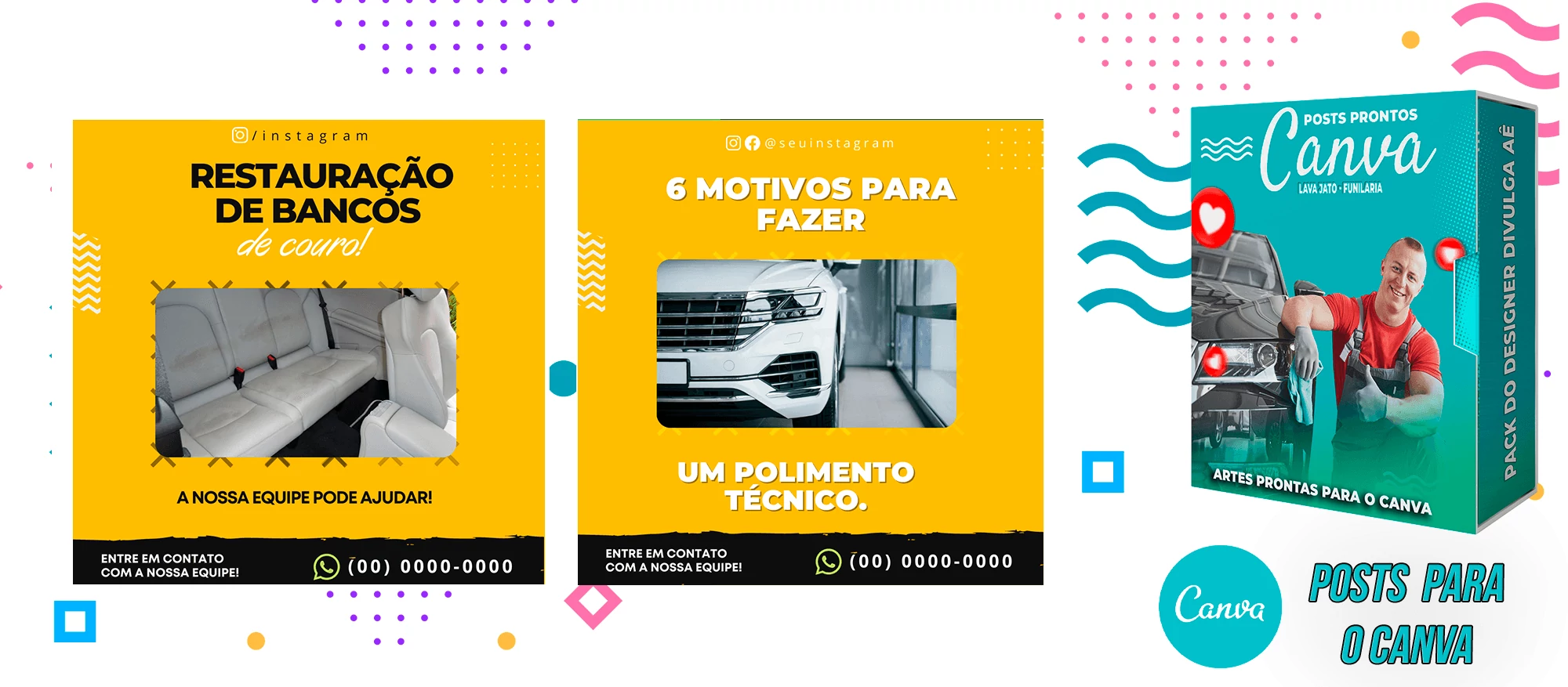 Pack de Posts Prontos com Legendas no Canva para Lava Jato – Funilaria e Estética Automotiva