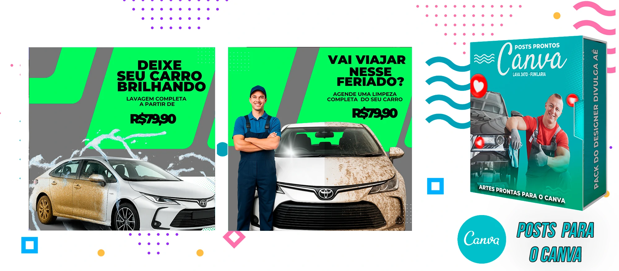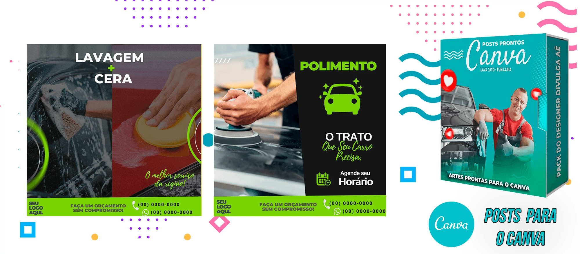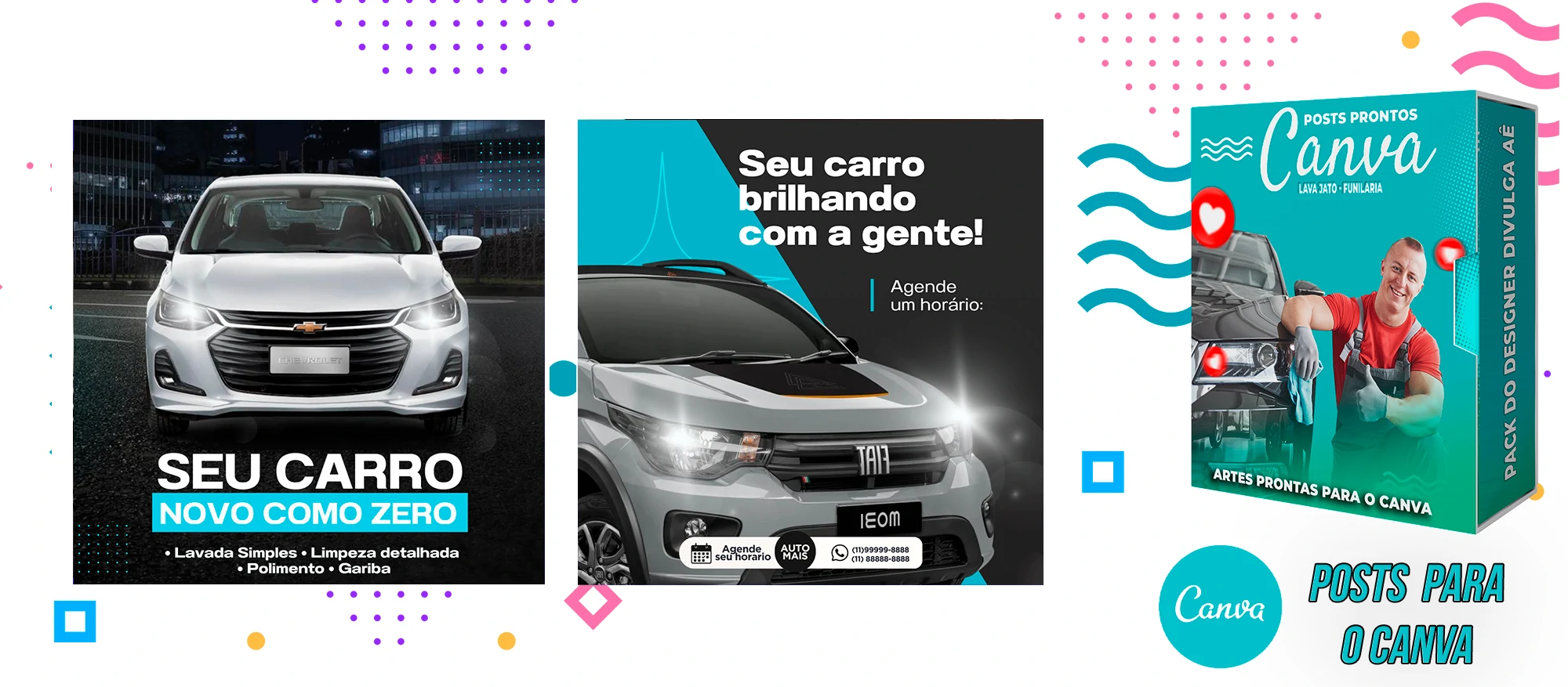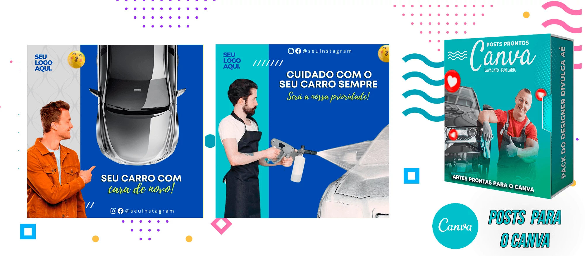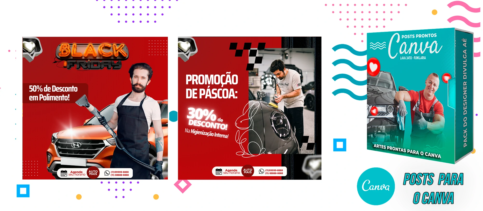 Pack de Posts Prontos com Legendas no Canva para Lava Jato – Funilaria e Estética Automotiva