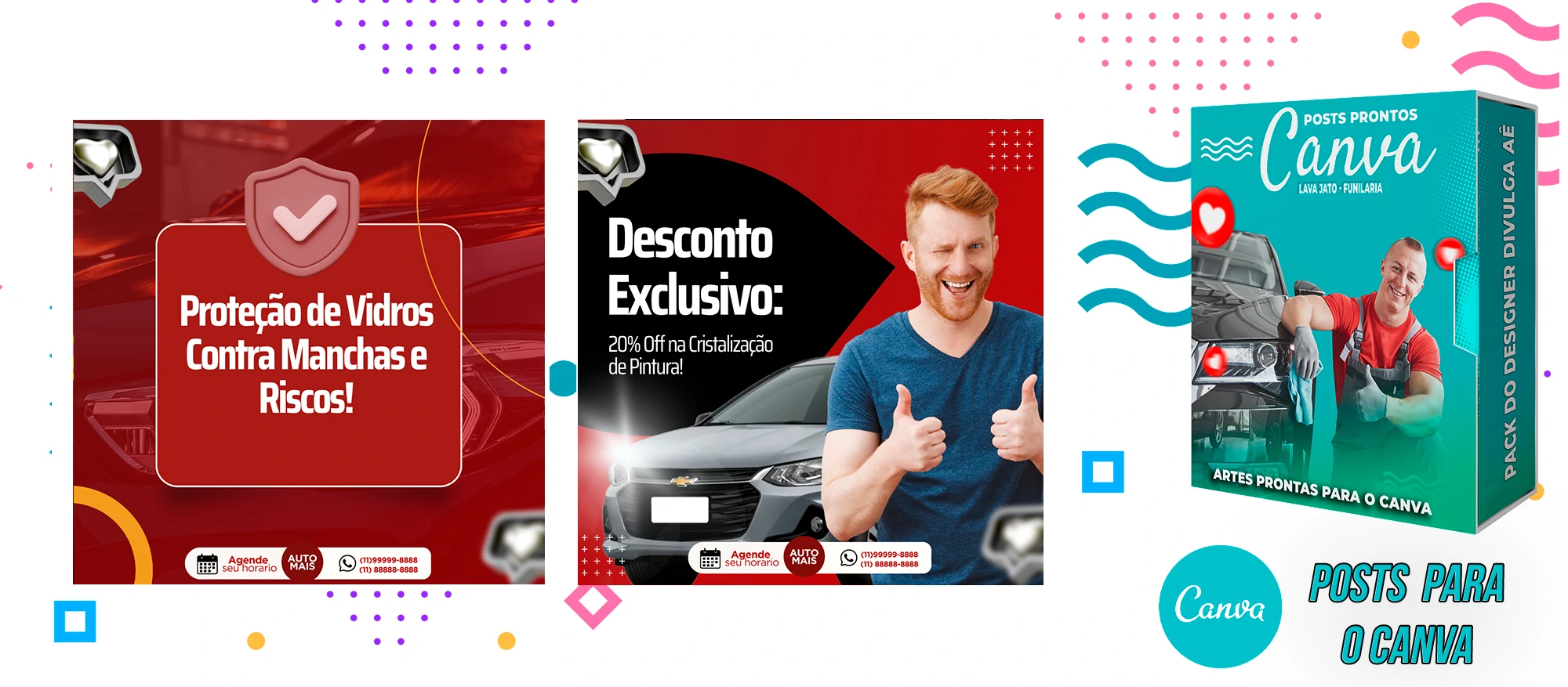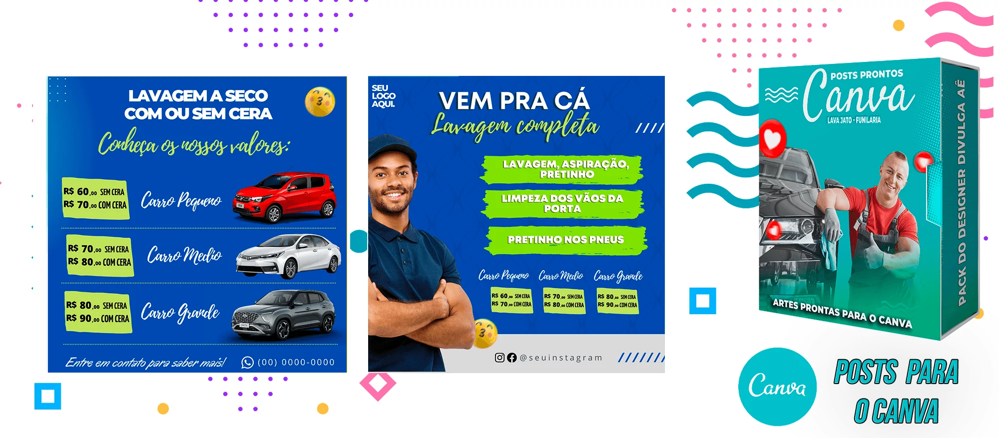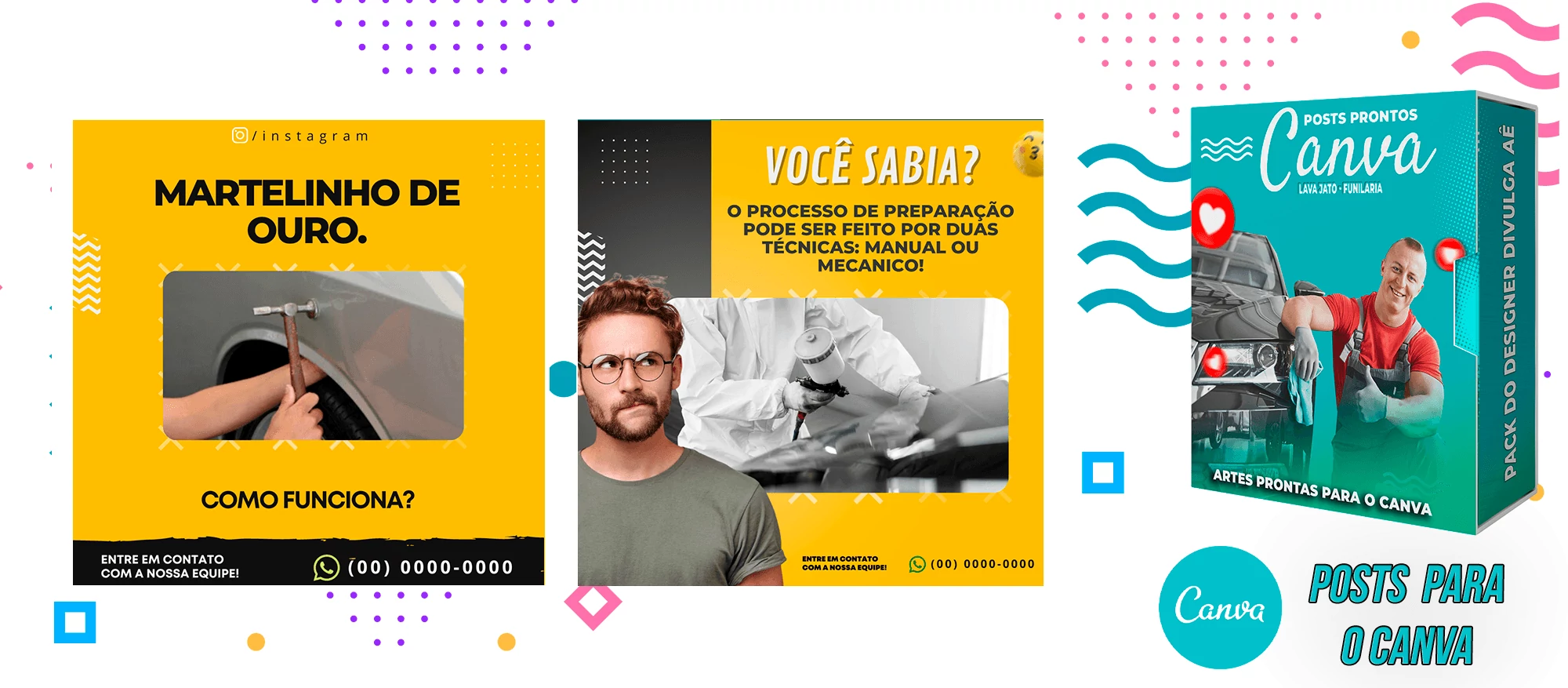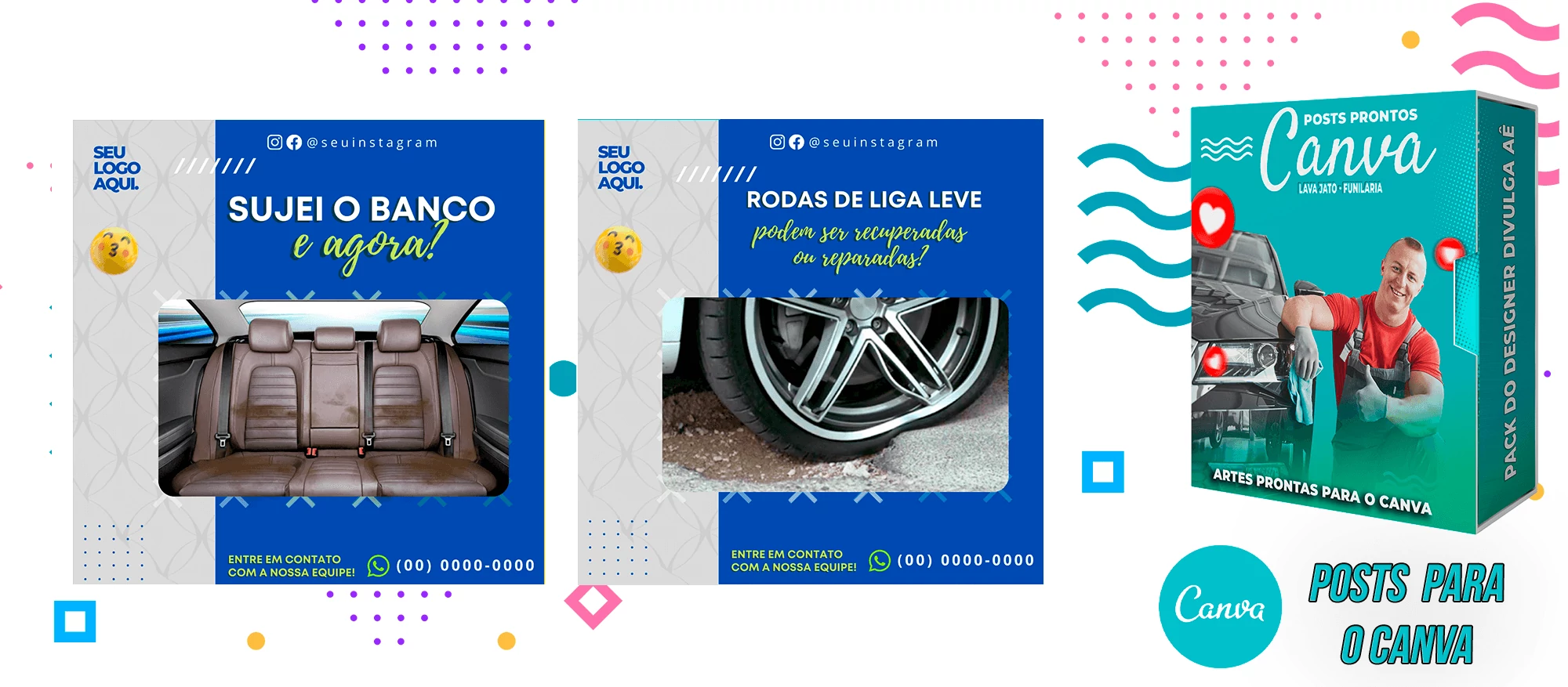 Pack de Posts Prontos com Legendas no Canva para Lava Jato – Funilaria e Estética Automotiva