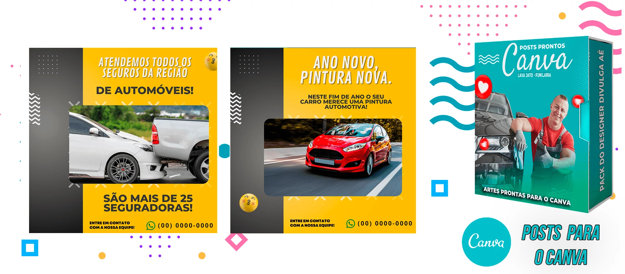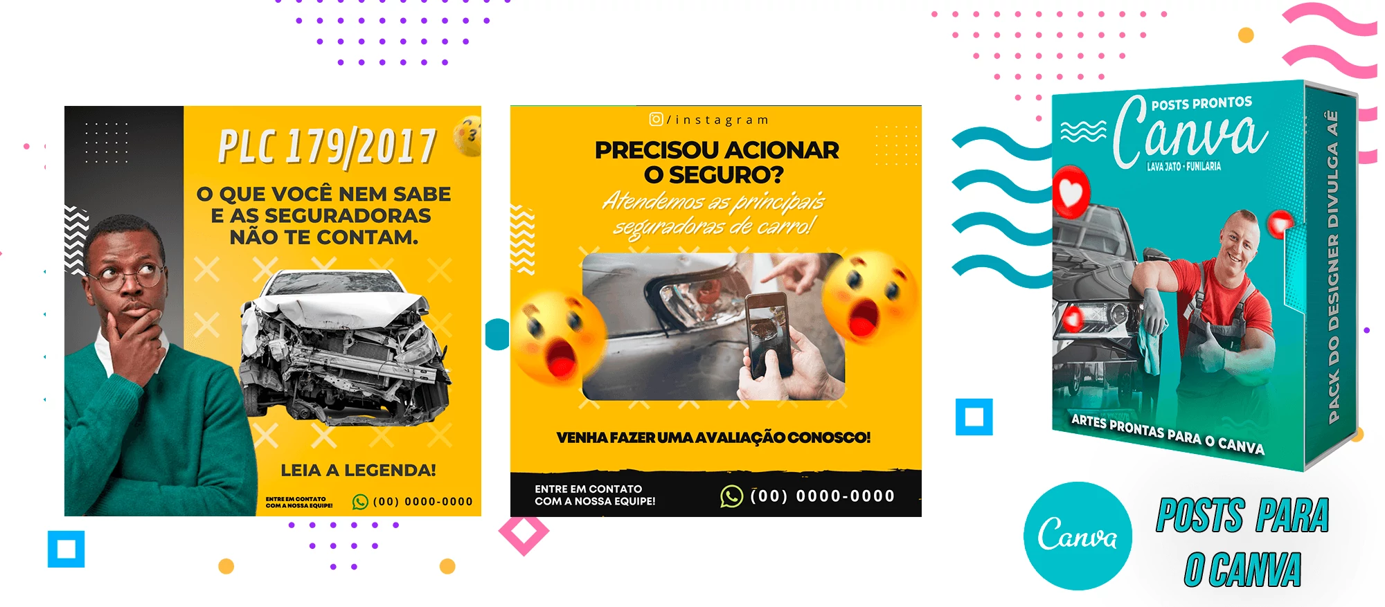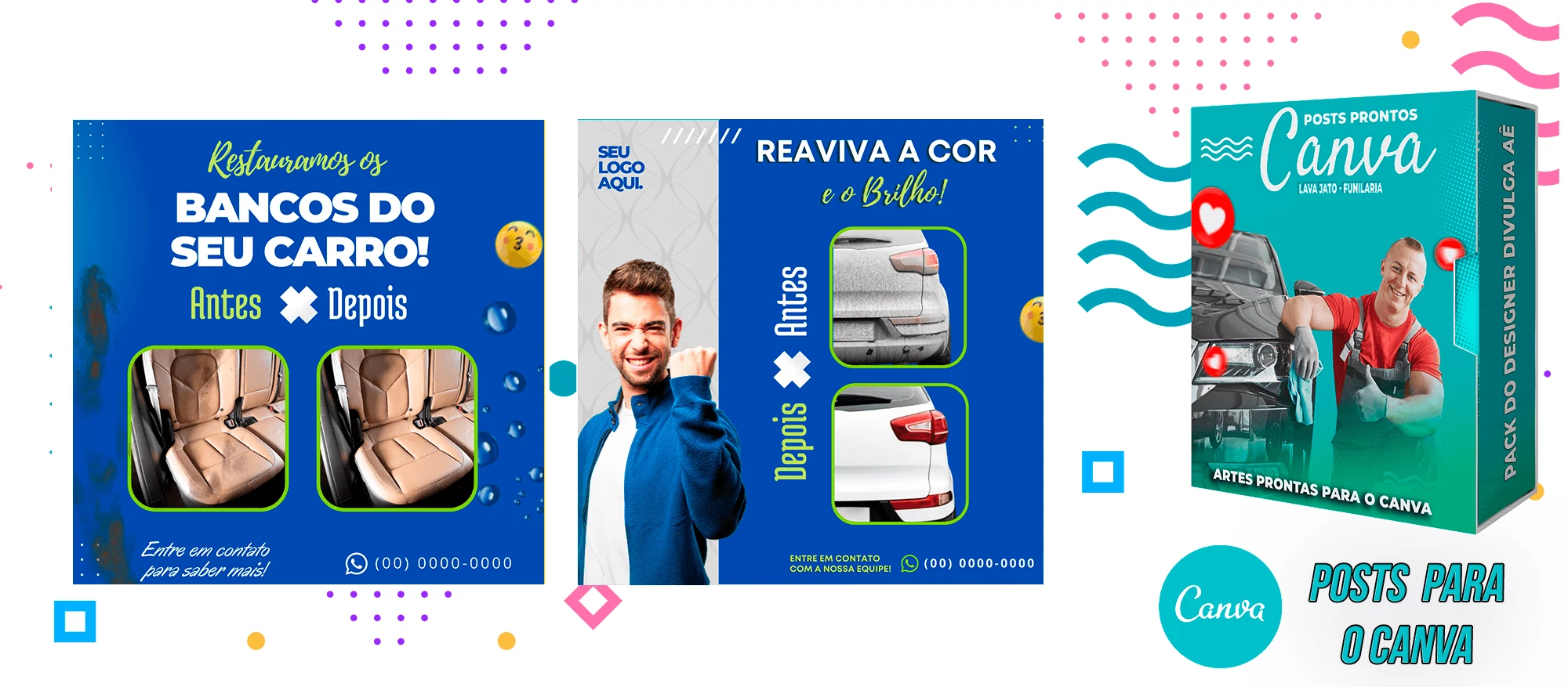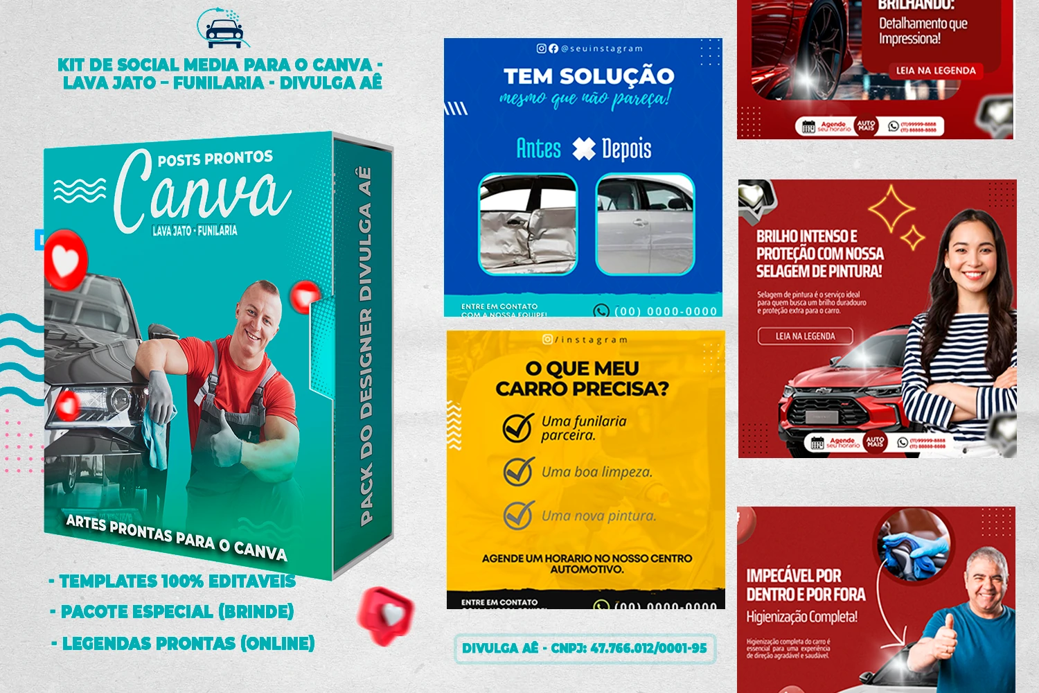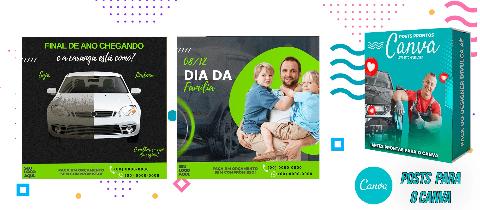 Pack de Posts Prontos com Legendas no Canva para Lava Jato – Funilaria e Estética Automotiva