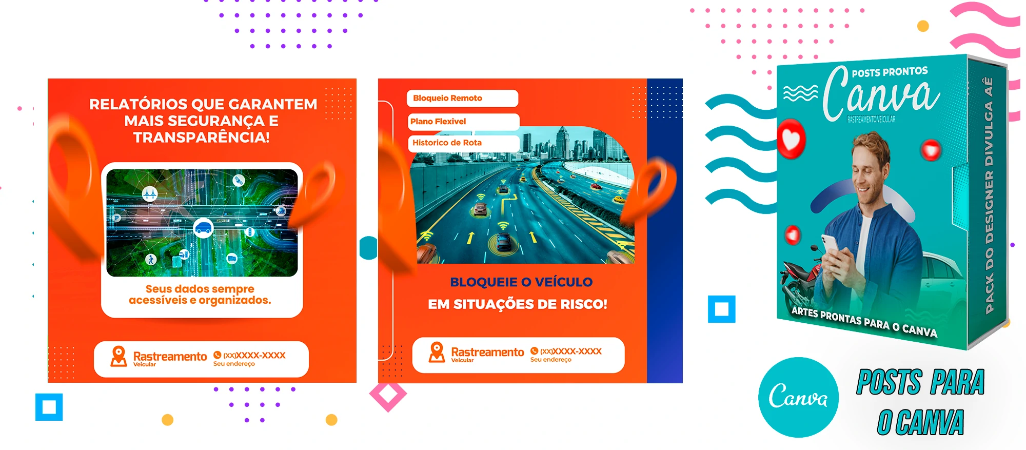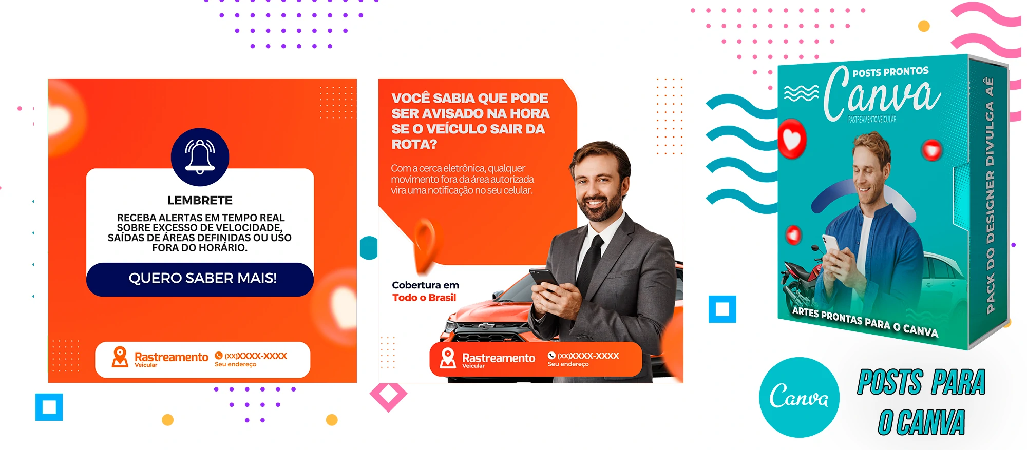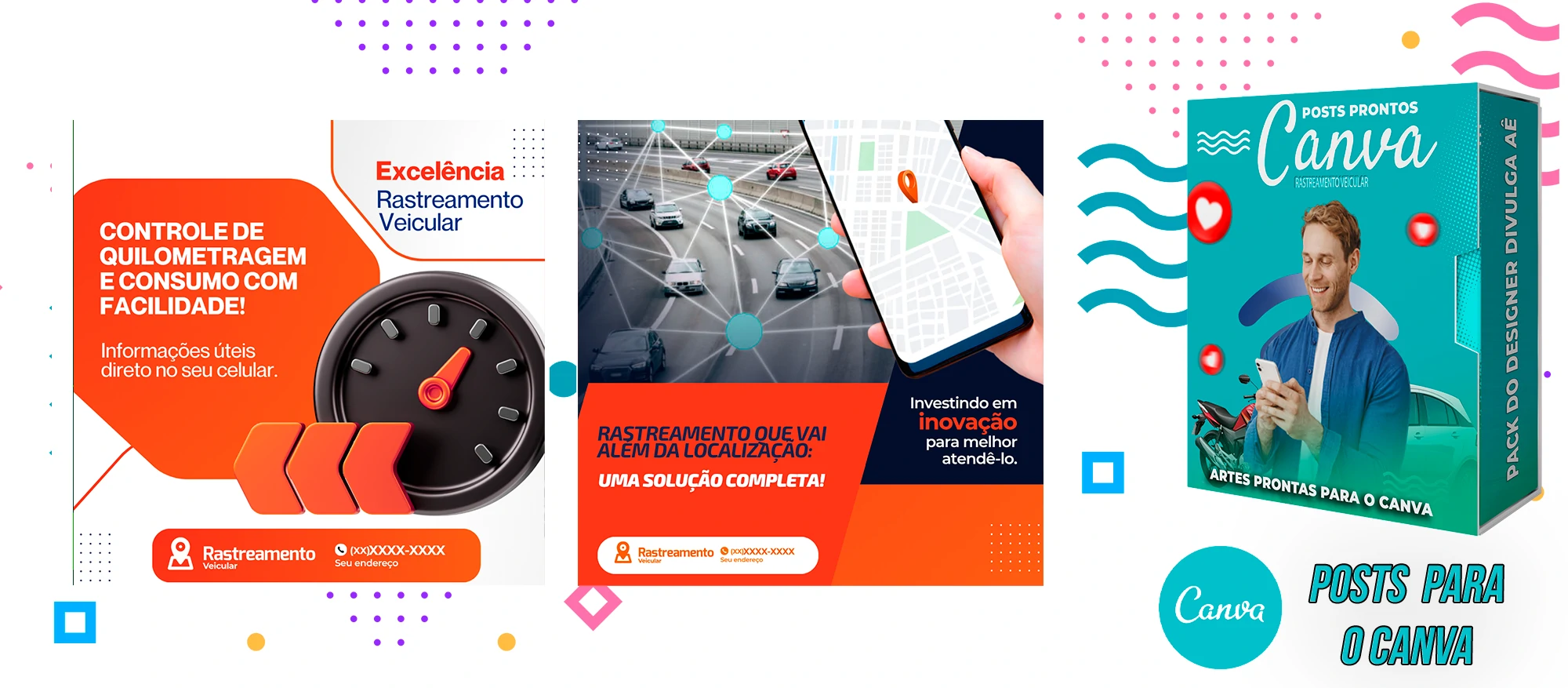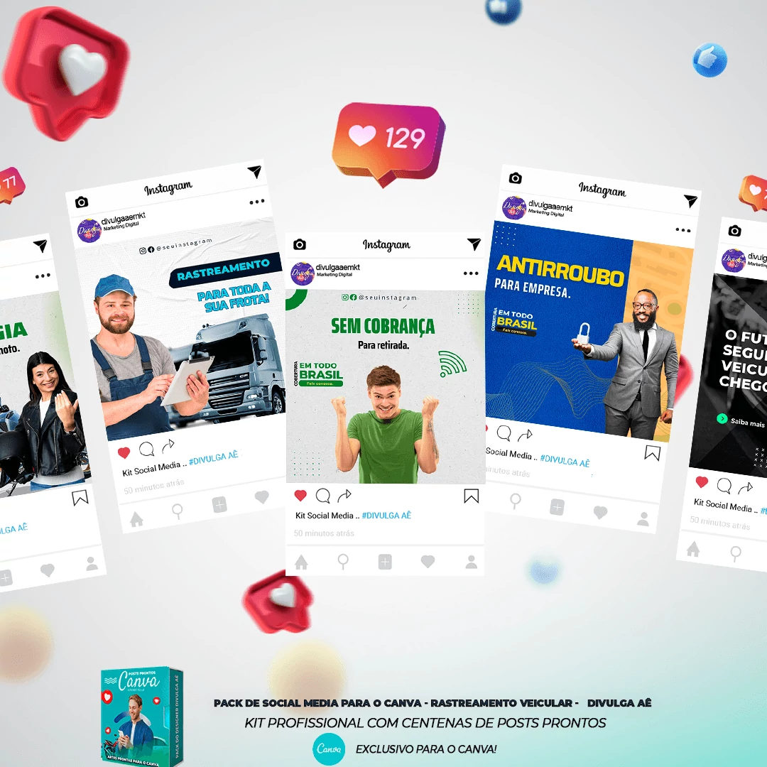 🎁 Conheça o Pack Profissional para Rastreamento Veicular, com mais de 400 Artes incríveis, pronto para promover o seu negócio! 🚗📊 Simplifique sua comunicação e impulsione suas vendas com templates prontos e personalizáveis, elaborados sob demanda especialmente para o setor de rastreamento veicular. Com a praticidade do Canva e uma conta gratuita, você poderá editar os templates em poucos segundos!