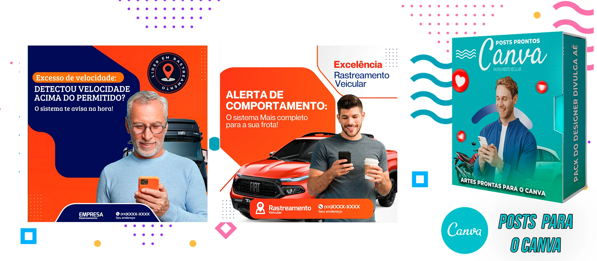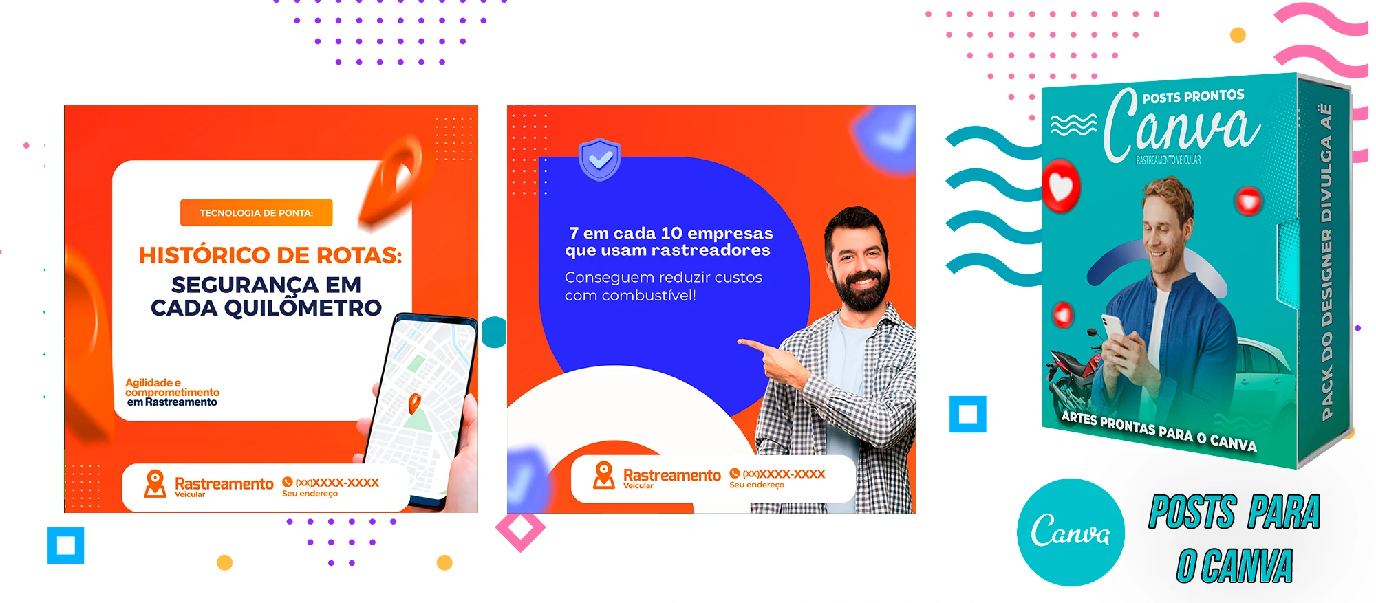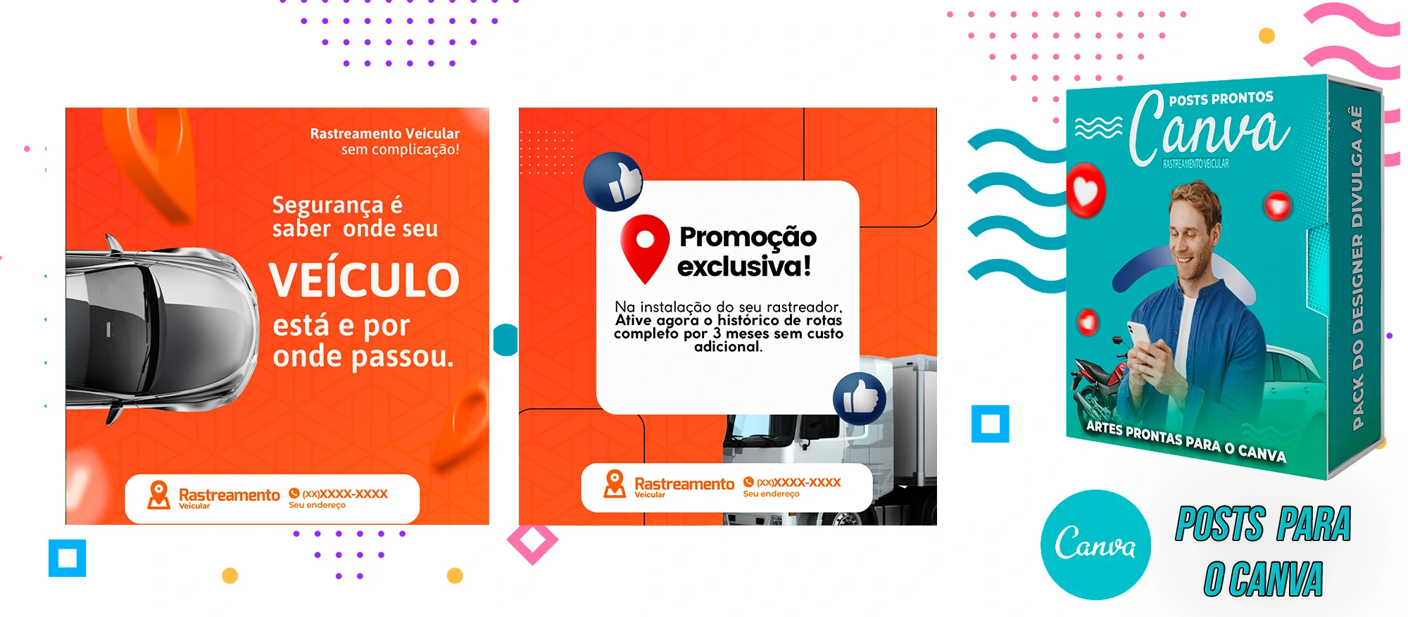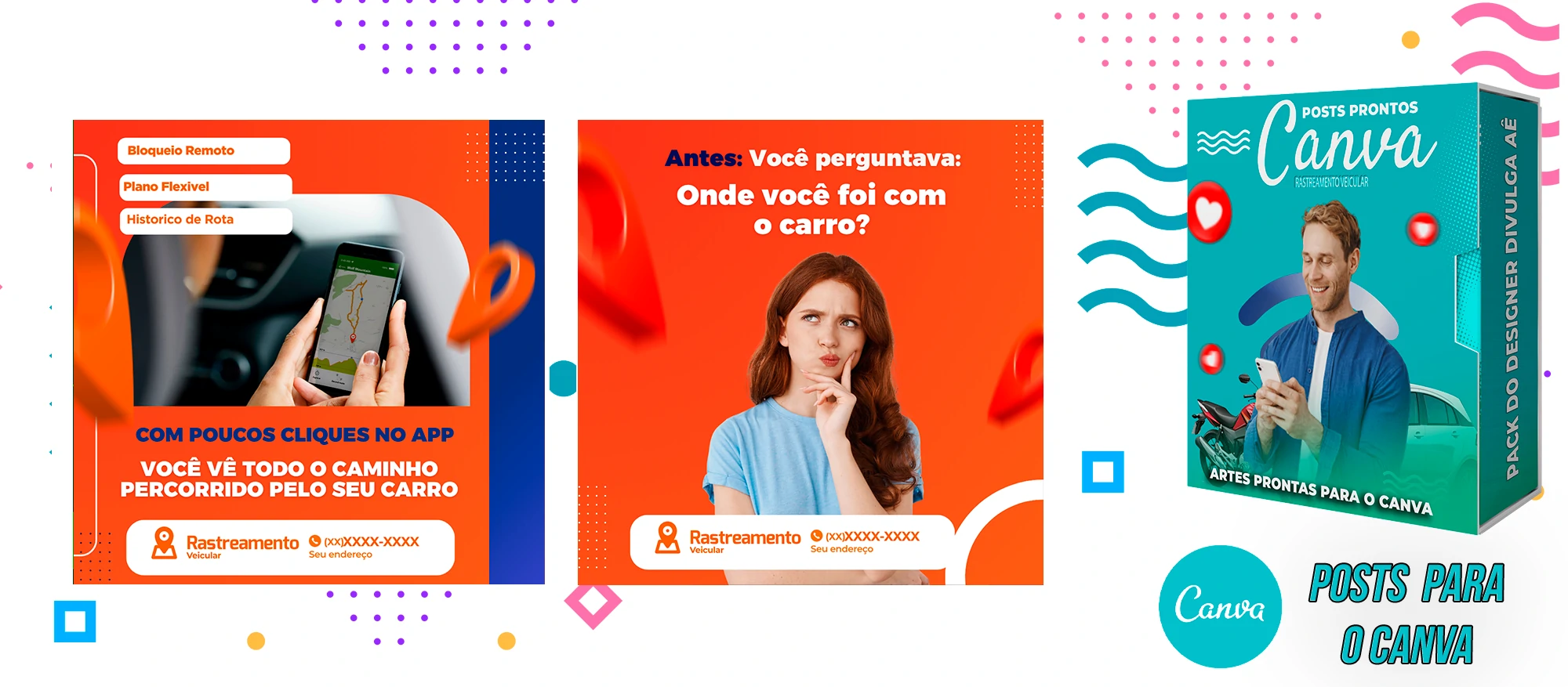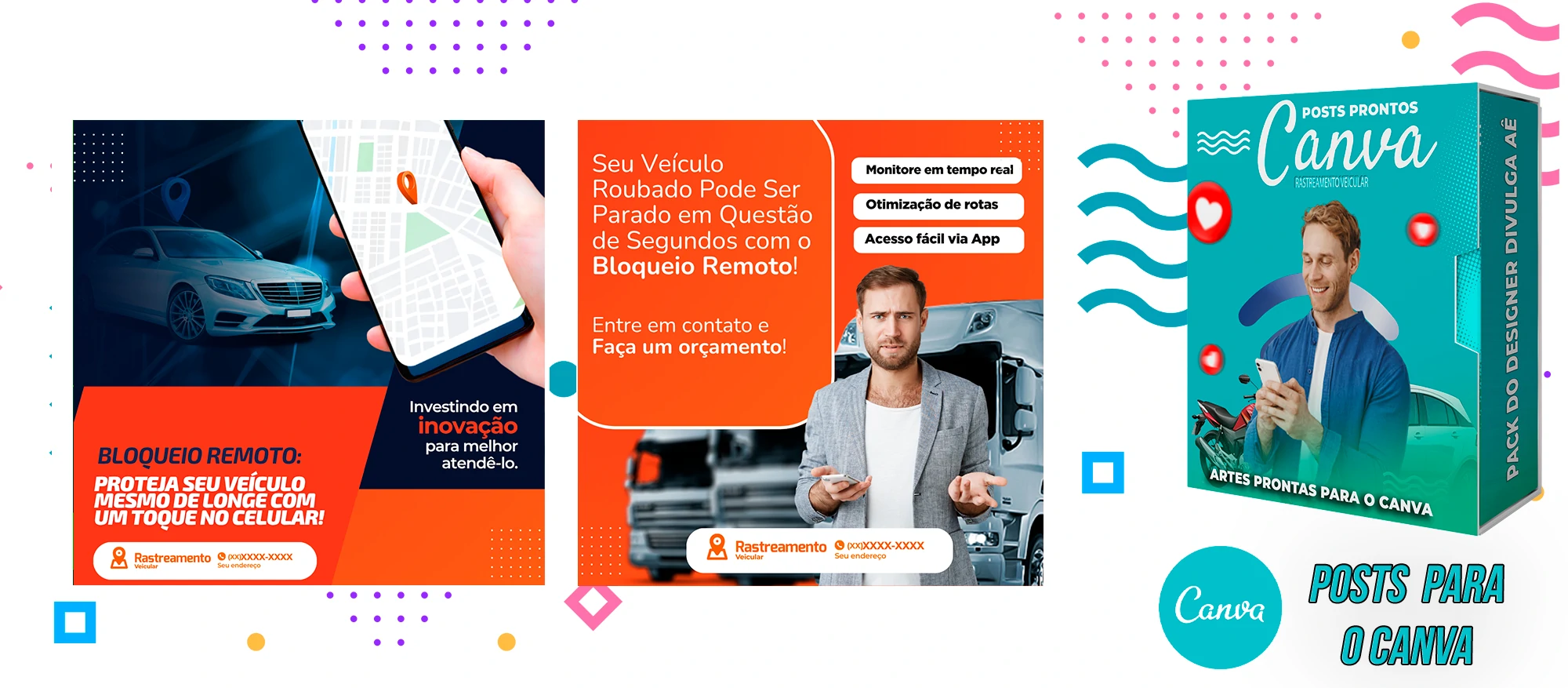 🎁 Conheça o Pack Profissional para Rastreamento Veicular, com mais de 400 Artes incríveis, pronto para promover o seu negócio! 🚗📊 Simplifique sua comunicação e impulsione suas vendas com templates prontos e personalizáveis, elaborados sob demanda especialmente para o setor de rastreamento veicular. Com a praticidade do Canva e uma conta gratuita, você poderá editar os templates em poucos segundos!