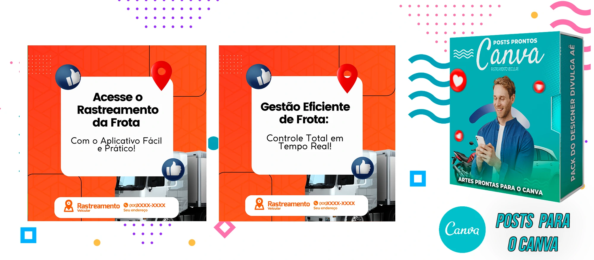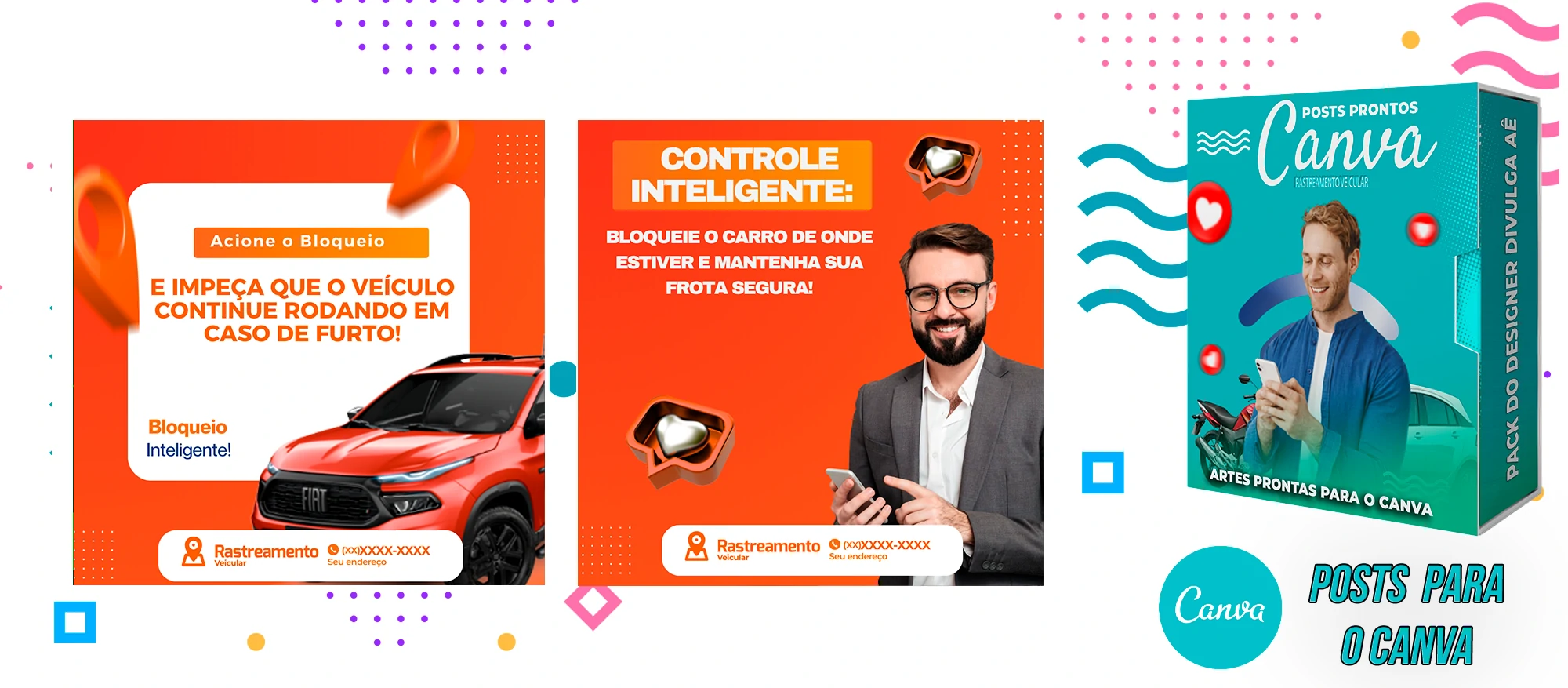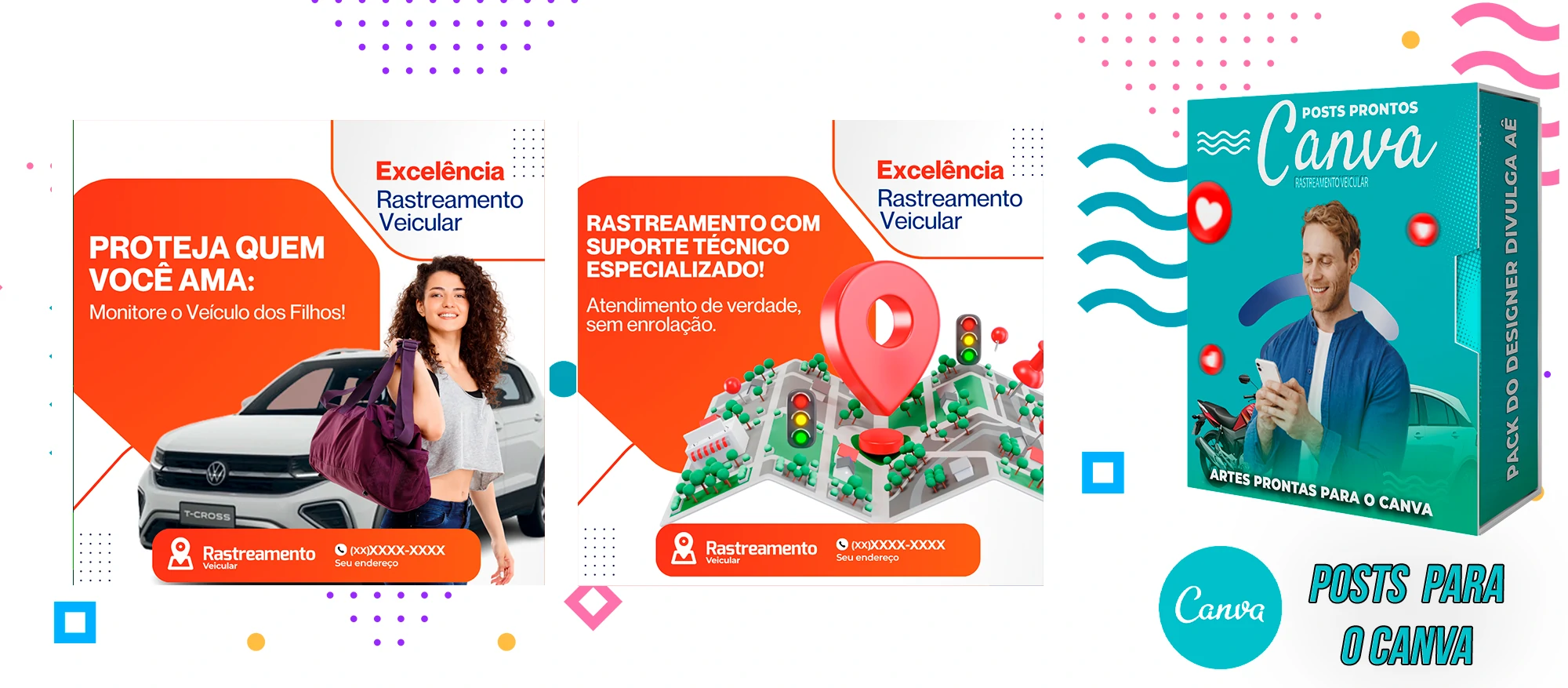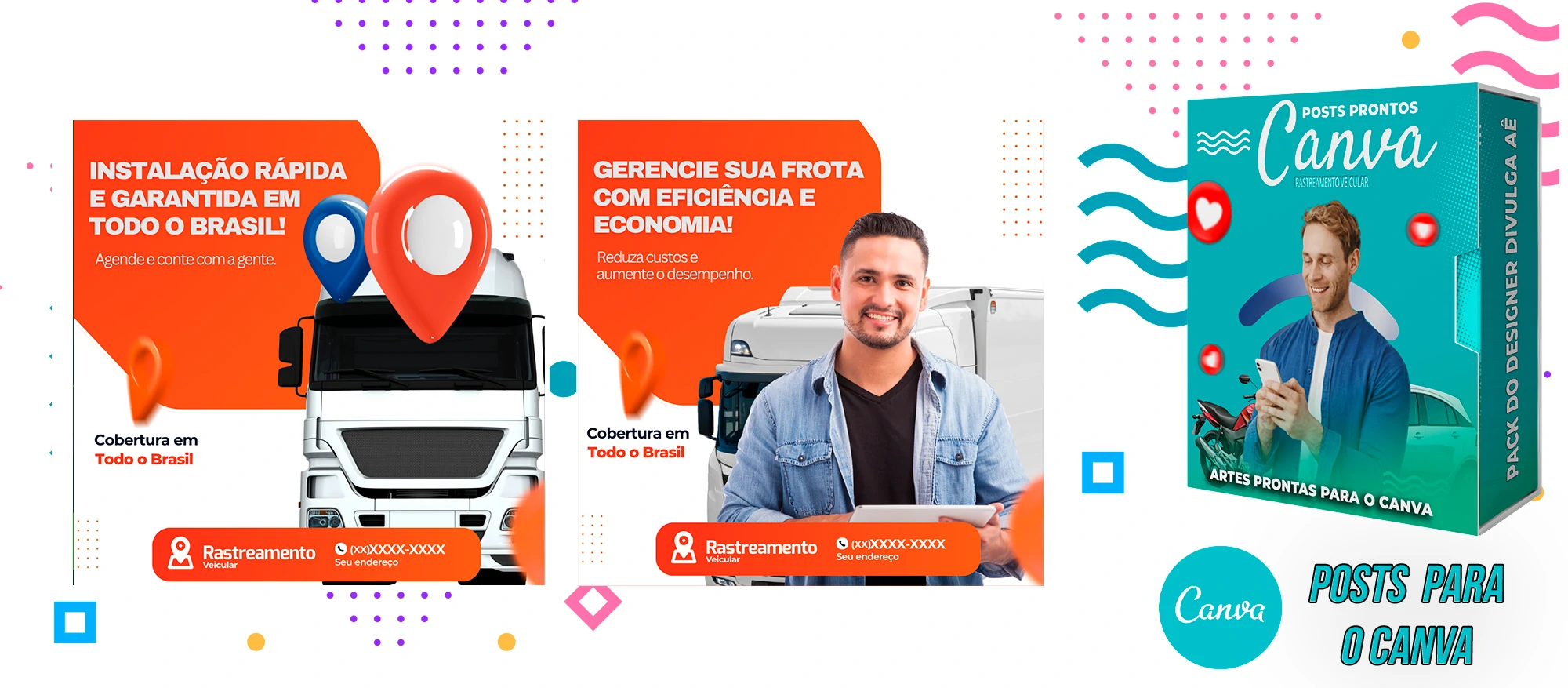 🎁 Conheça o Pack Profissional para Rastreamento Veicular, com mais de 400 Artes incríveis, pronto para promover o seu negócio! 🚗📊 Simplifique sua comunicação e impulsione suas vendas com templates prontos e personalizáveis, elaborados sob demanda especialmente para o setor de rastreamento veicular. Com a praticidade do Canva e uma conta gratuita, você poderá editar os templates em poucos segundos!