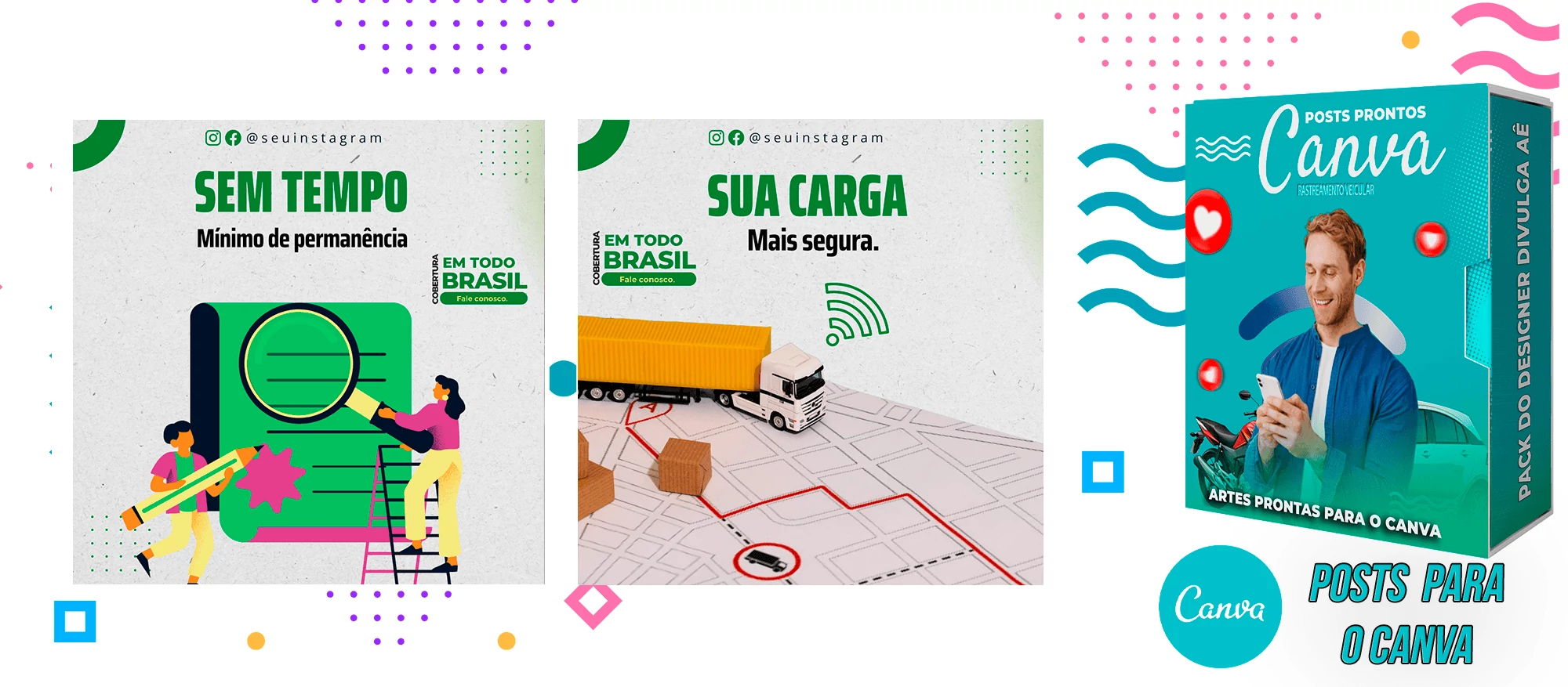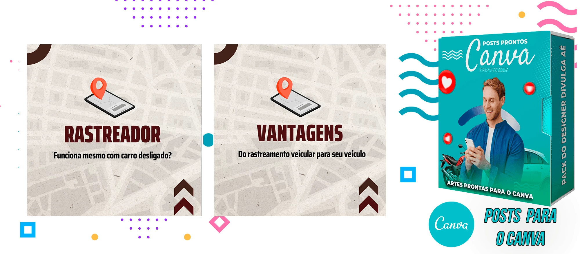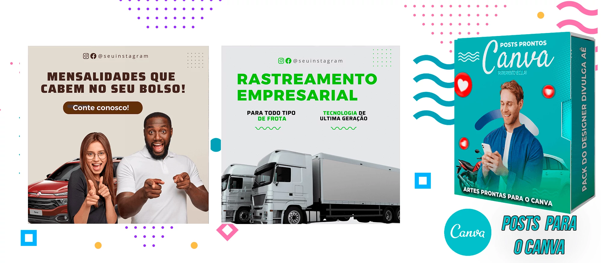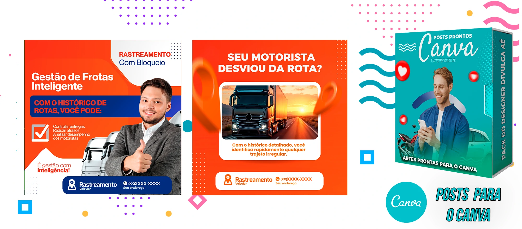 🎁 Conheça o Pack Profissional para Rastreamento Veicular, com mais de 400 Artes incríveis, pronto para promover o seu negócio! 🚗📊 Simplifique sua comunicação e impulsione suas vendas com templates prontos e personalizáveis, elaborados sob demanda especialmente para o setor de rastreamento veicular. Com a praticidade do Canva e uma conta gratuita, você poderá editar os templates em poucos segundos!