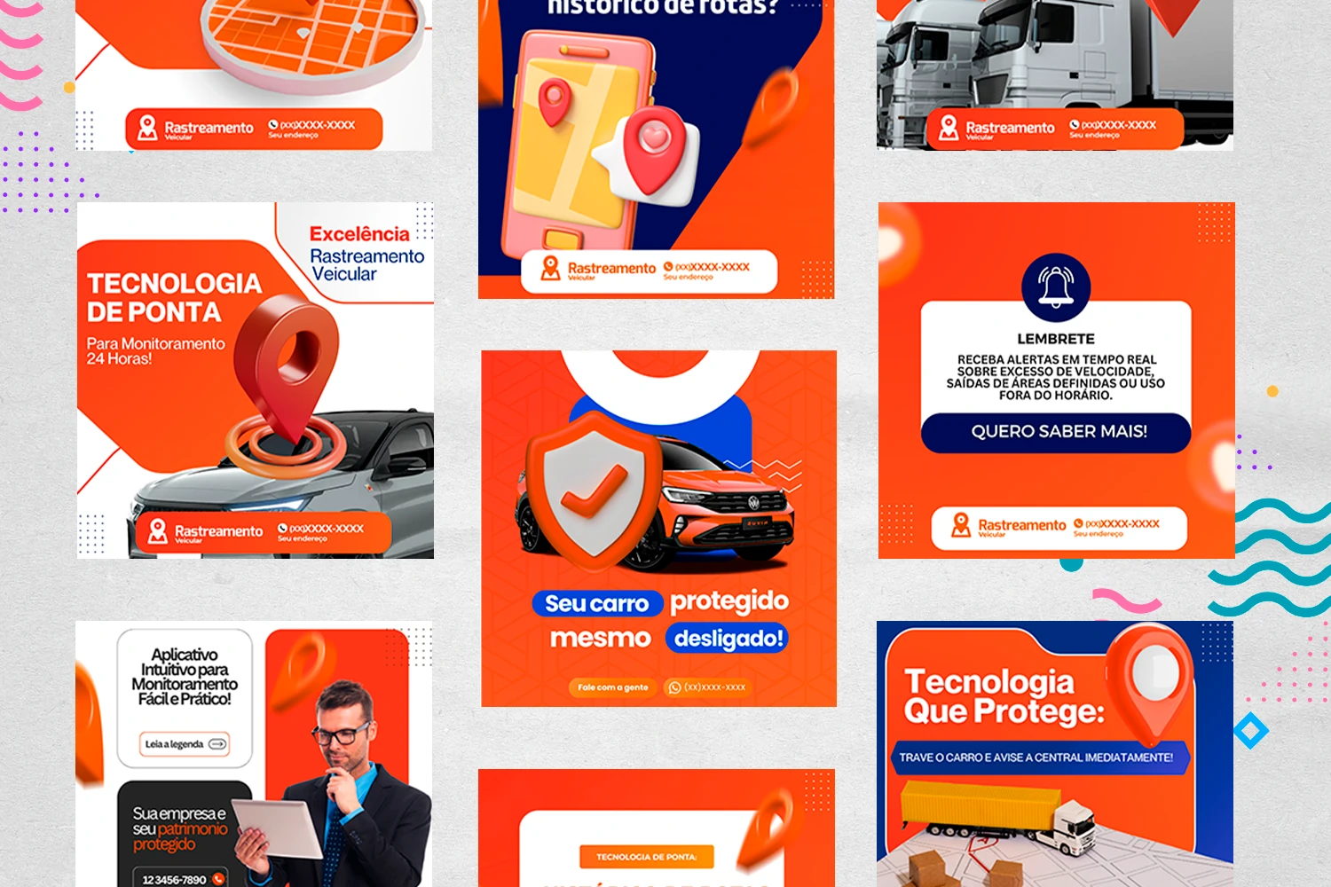 Atraia a atenção de potenciais clientes com conteúdos profissionais e atrativos, destacando os benefícios e a segurança dos seus serviços de rastreamento. Essa ampla coleção de artes garantirá uma presença digital impactante e envolvente. Não perca essa oportunidade! Eleve sua presença online, conquiste mais clientes e torne sua empresa de rastreamento veicular referência no mercado. Adquira agora mesmo o Pack sob demanda e alcance o sucesso que você merece! 📊🚗