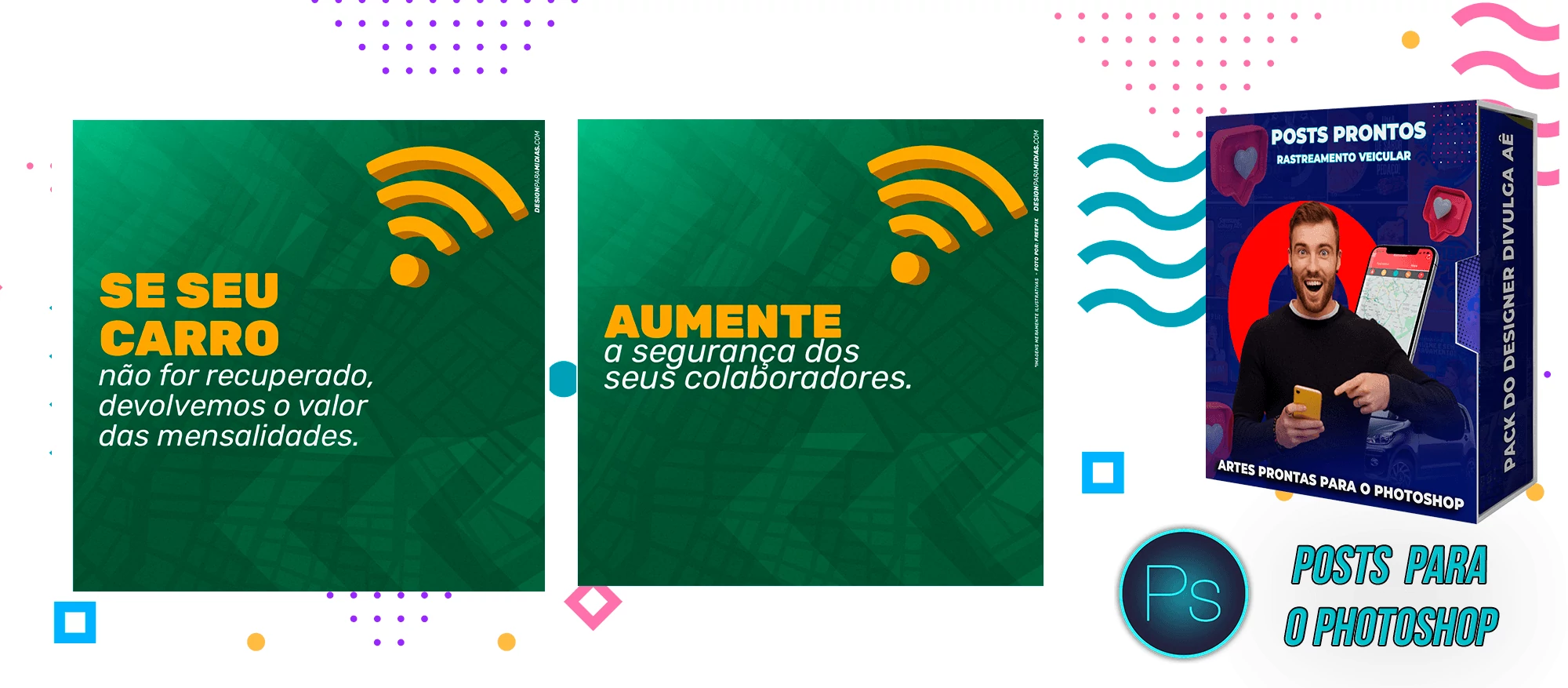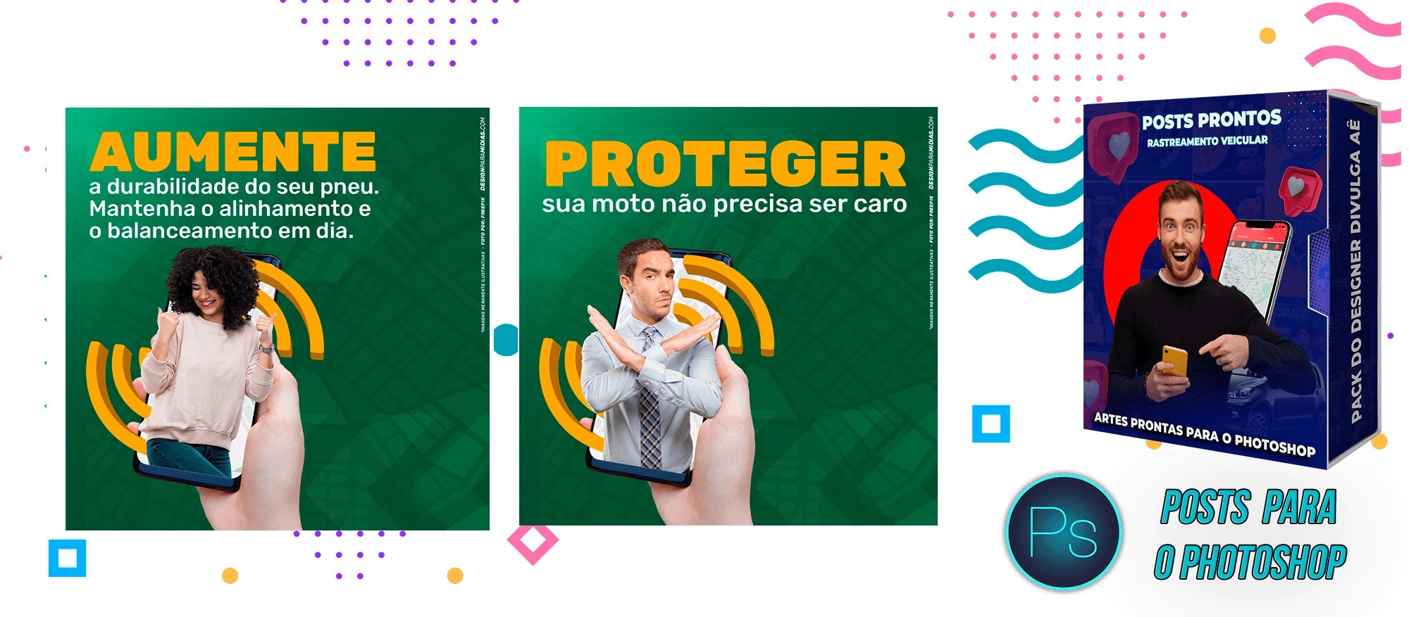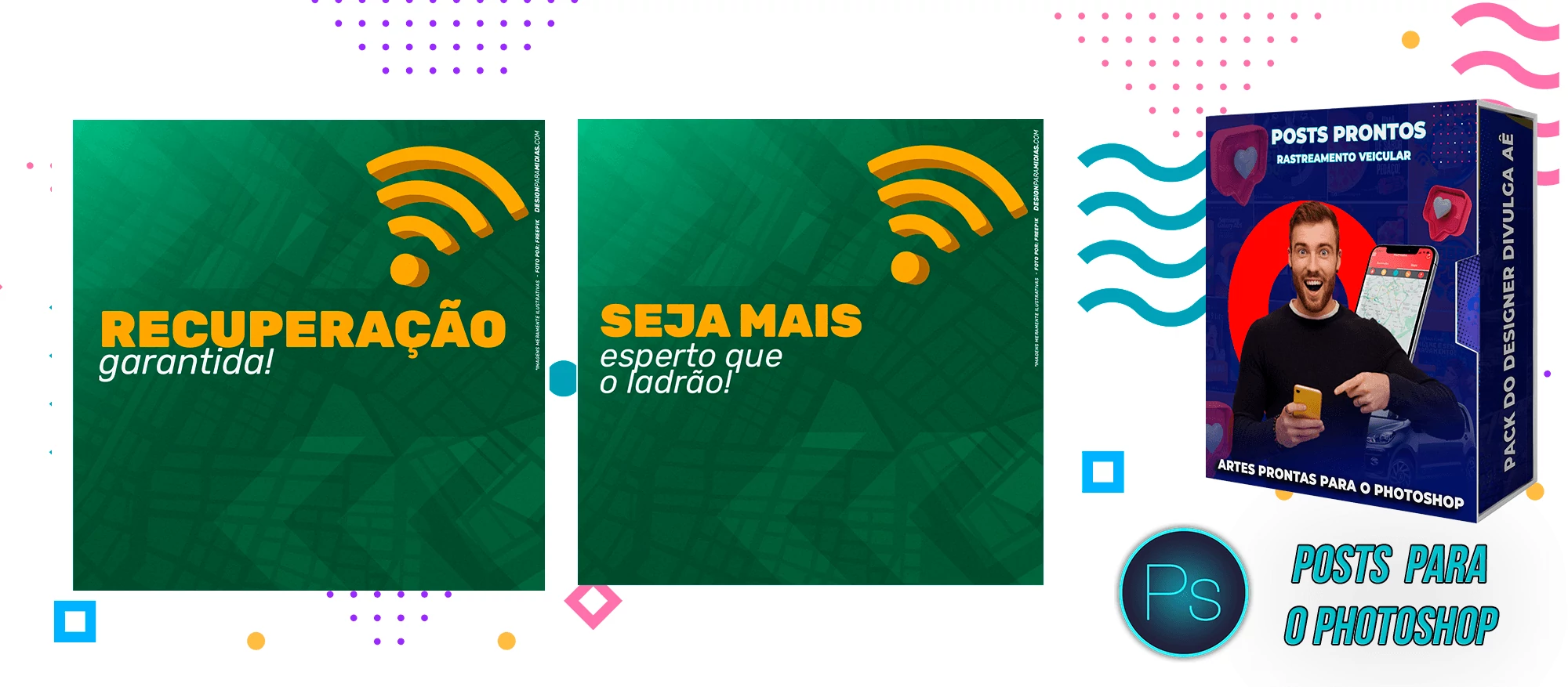 Pack elaborado sob demanda para Rastreamento Veicular + de 150 Artes incríveis, que vai promover o seu comércio. Para editar o arquivo basta apenas possuir o Photoshop para editar o Arquivo colocar a marca da empresa, alterar o nome, e adicionar o Whatsapp, tudo em poucos segundos!