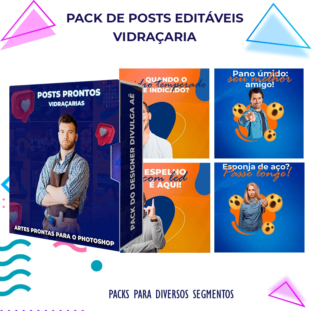 Pack elaborado sob demanda para Vidraçarias + de 150 Artes incríveis, que vai promover a sua Vidraçaria. Para editar o arquivo basta apenas possuir o  Photoshop  para editar o Arquivo colocar a marca da empresa, alterar o nome, e adicionar o Whatsapp, tudo em poucos segundos!