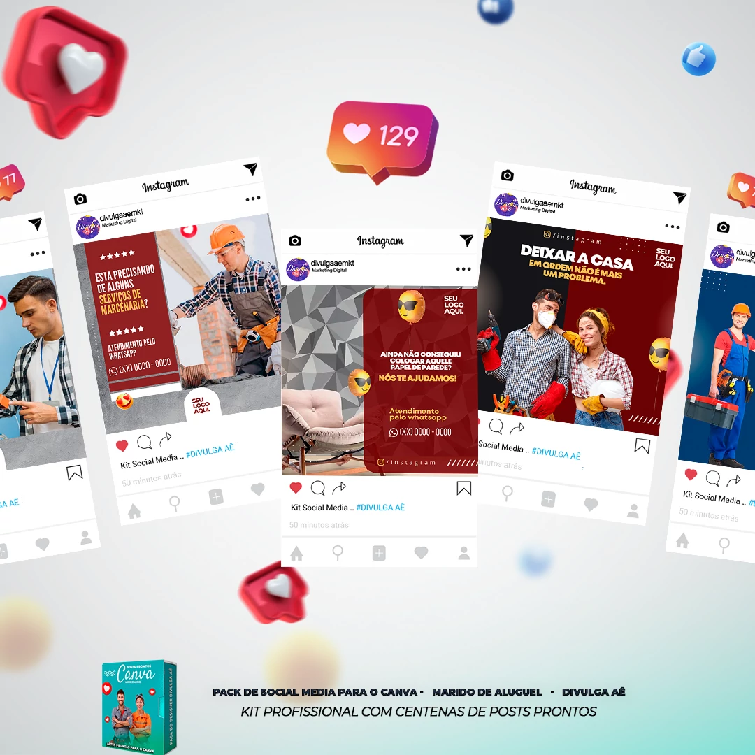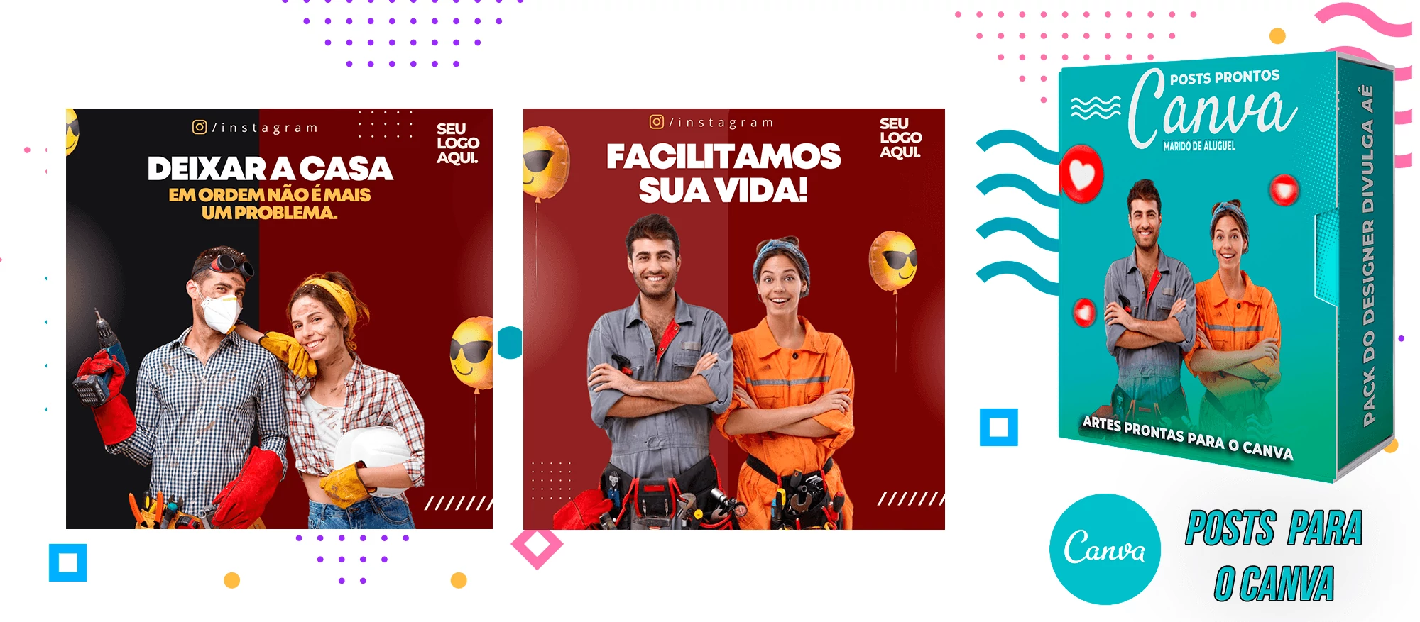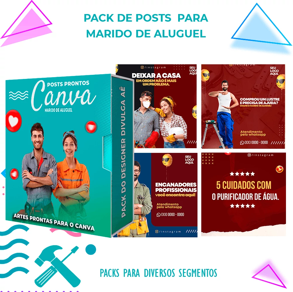✅   Pack de Posts com + 130 Posts Prontos para Marido de Aluguel no Canva