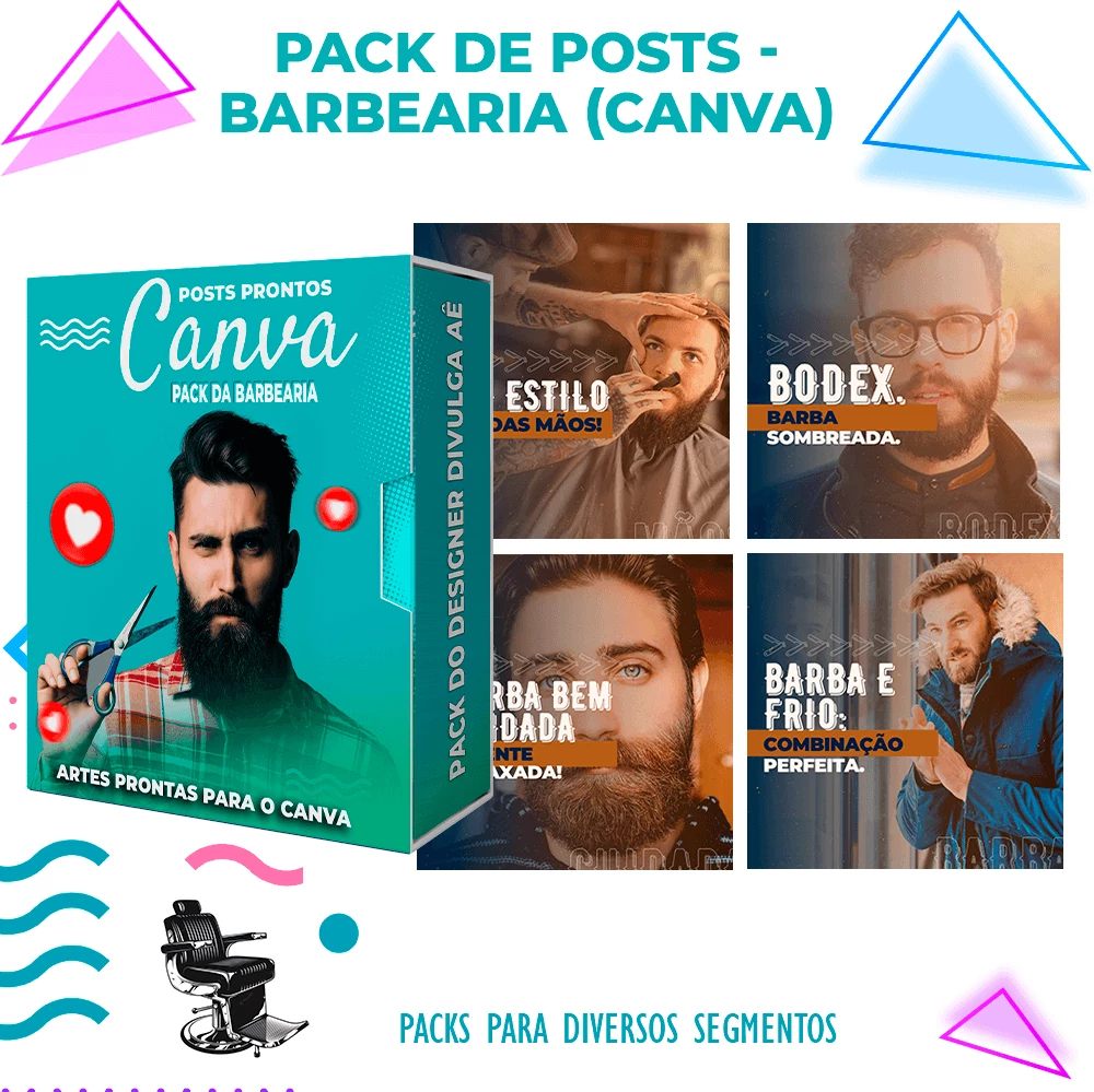 Pack elaborado sob demanda para Barbearia com mais de 300 Artes Editáveis  incríveis.  Bastando apenas possuir uma conta Gratuita no Canva  para editar o Template, tudo em poucos segundos!