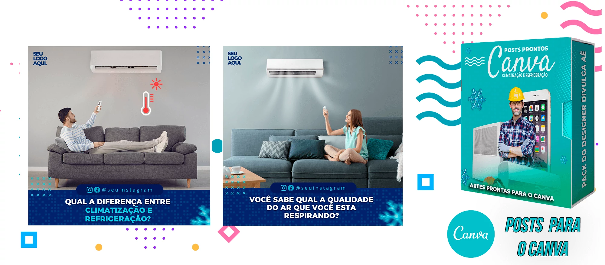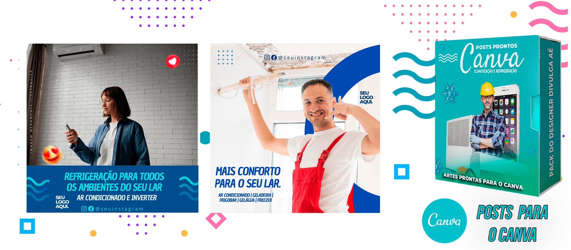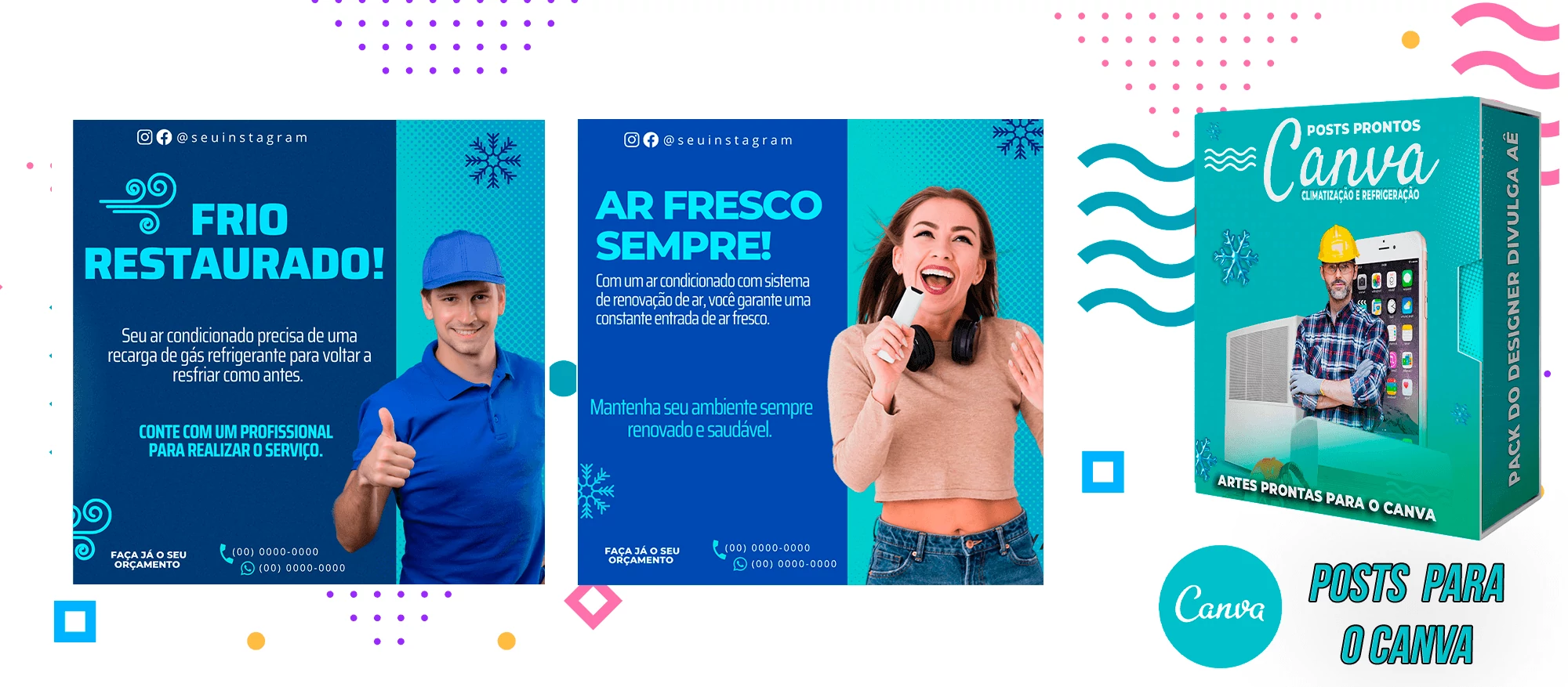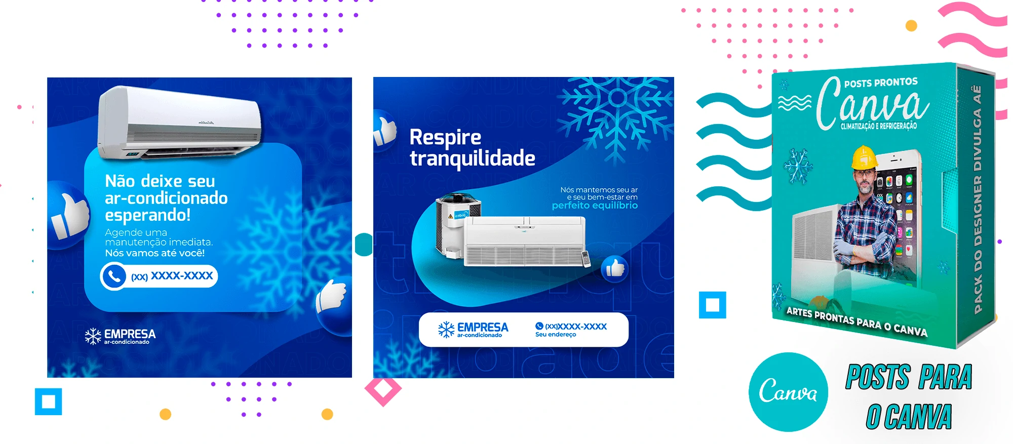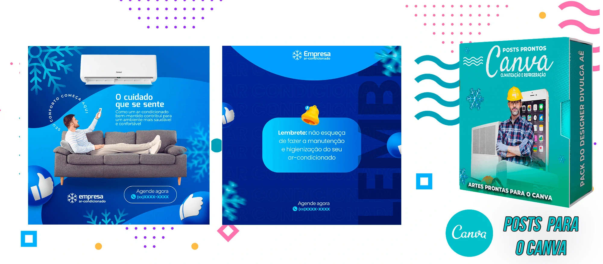 Pack de Posts Prontos para o Canva – Climatização e Refrigeração com Legendas
