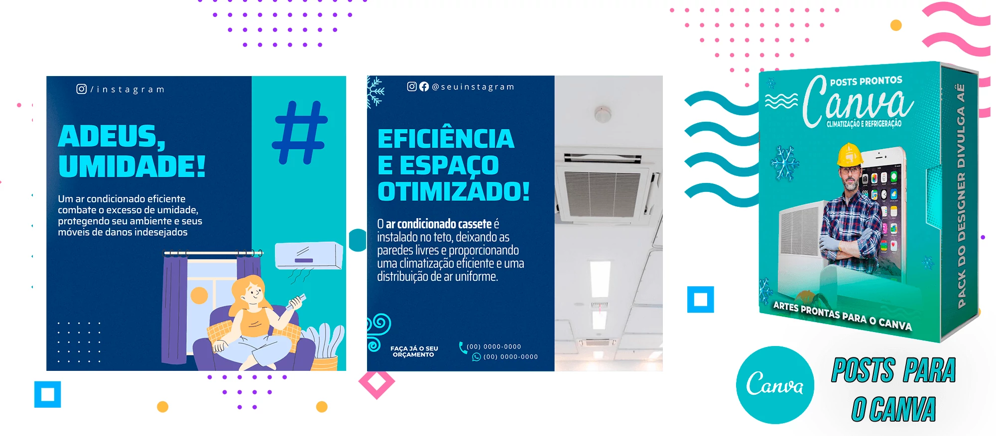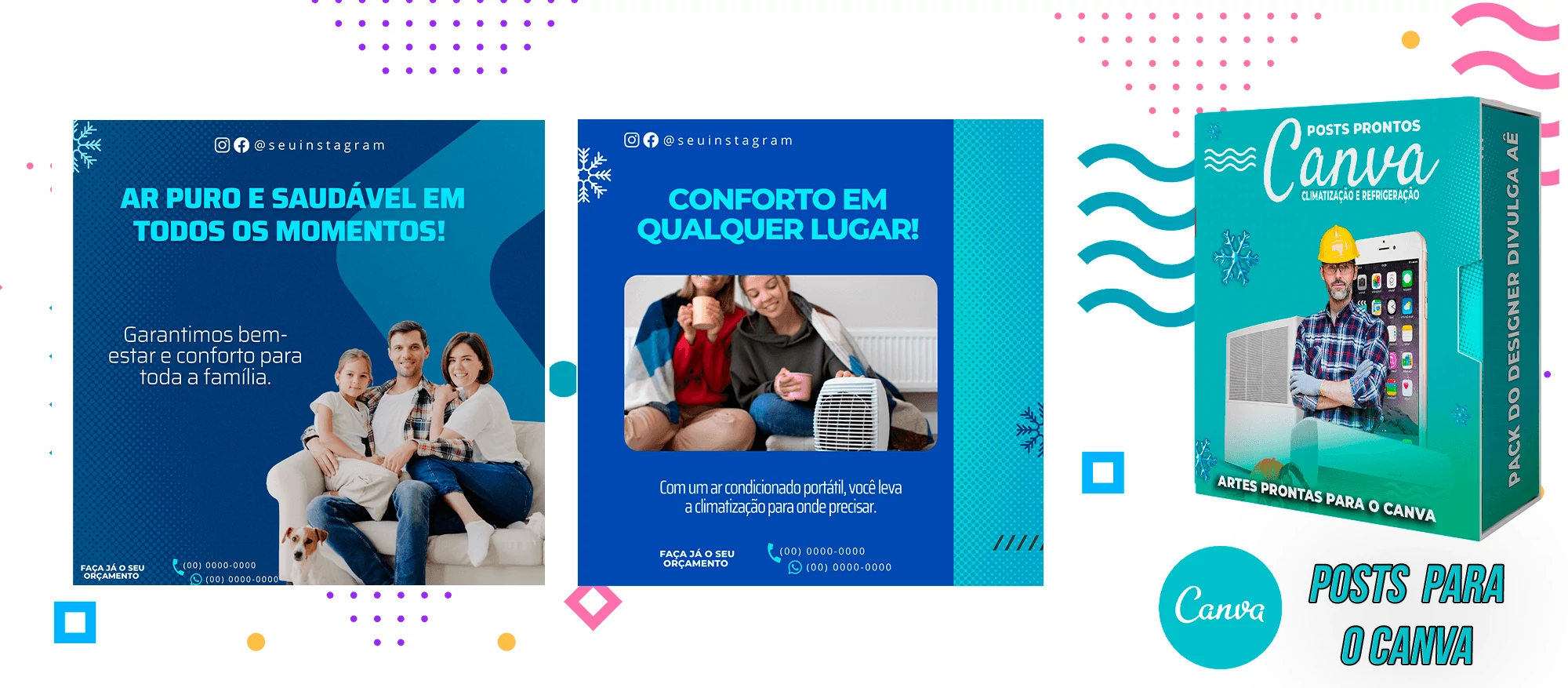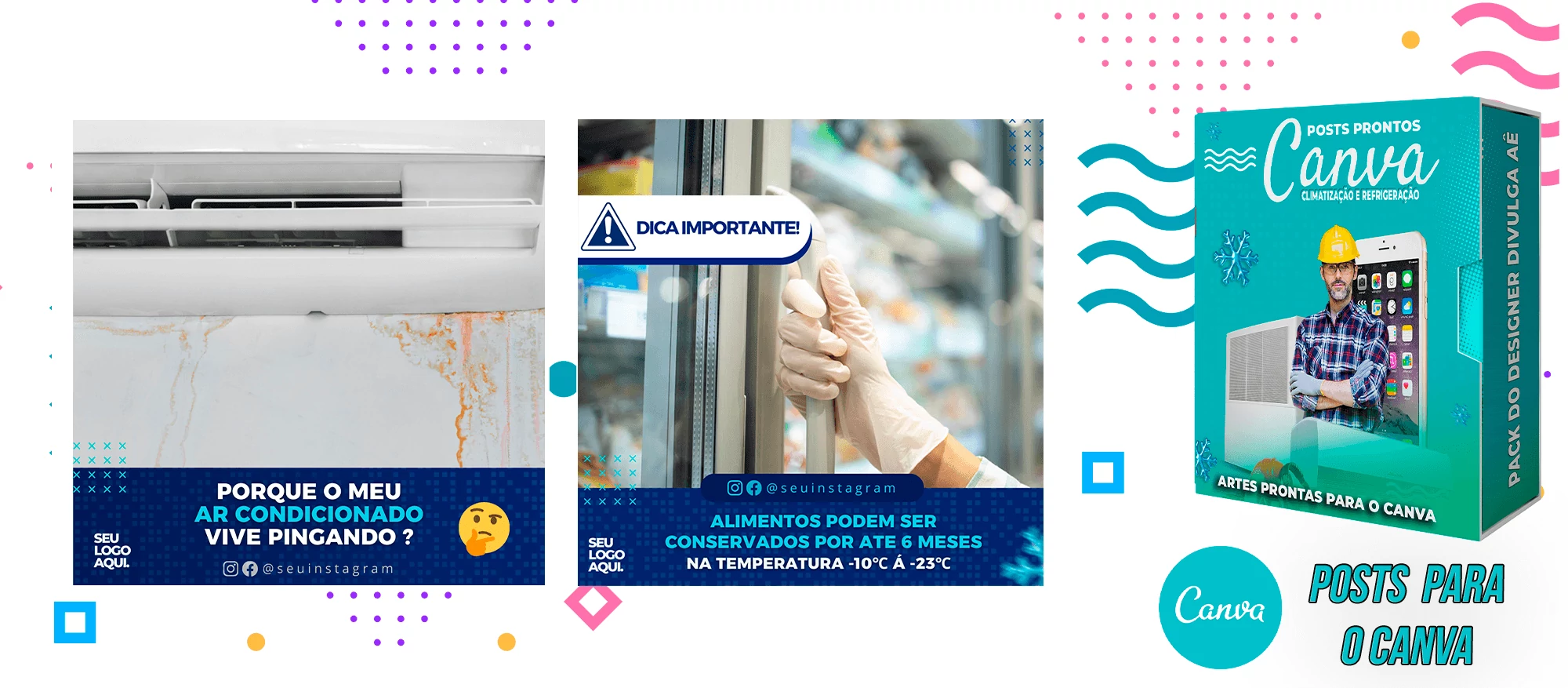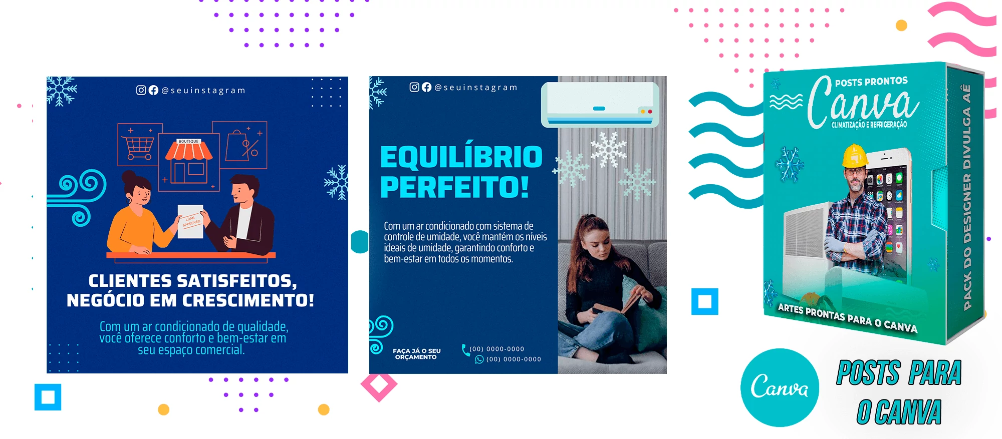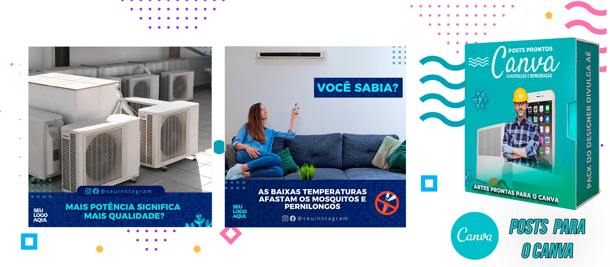 Pack de Posts Prontos para o Canva – Climatização e Refrigeração com Legendas