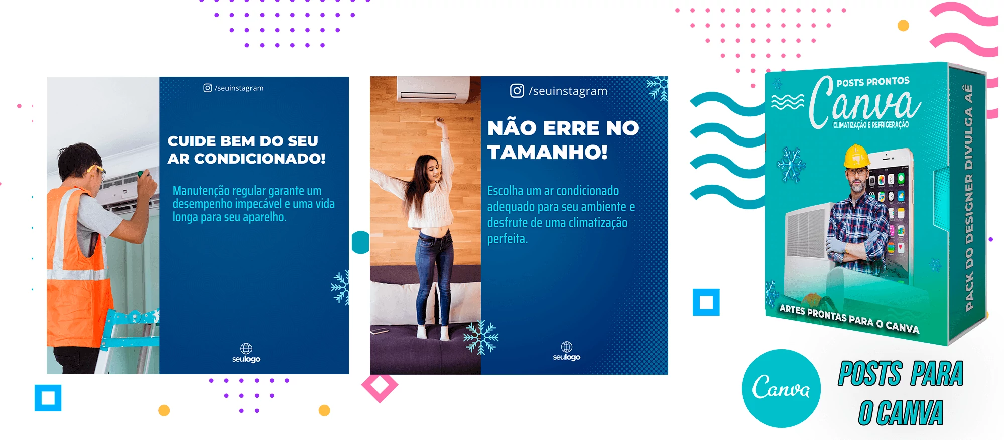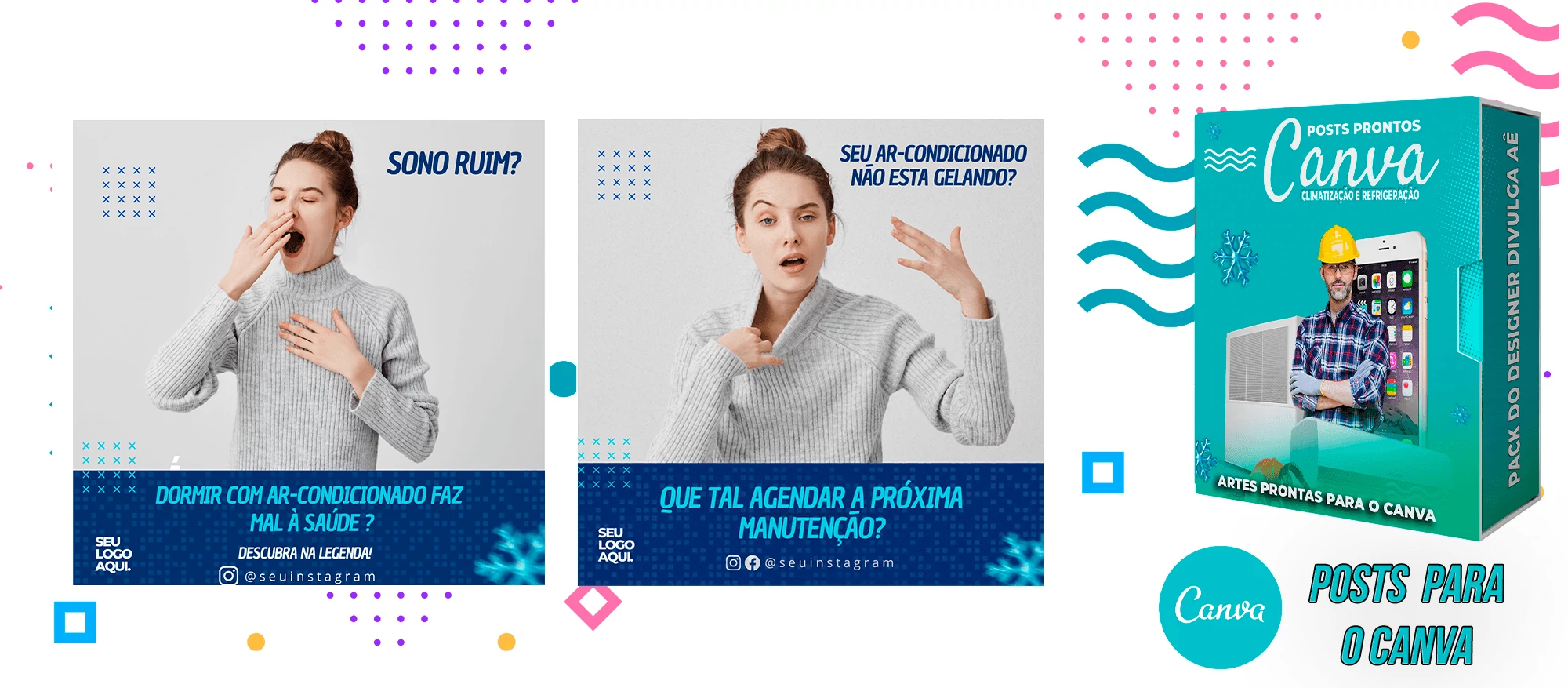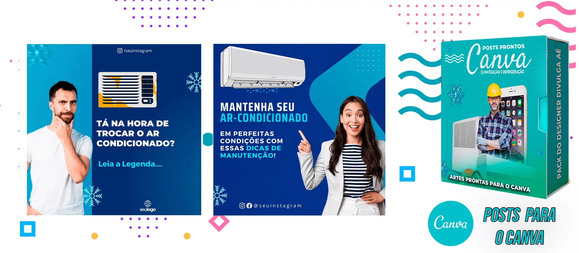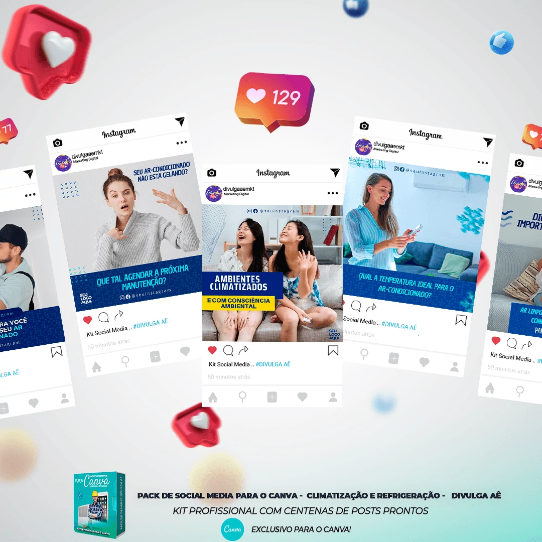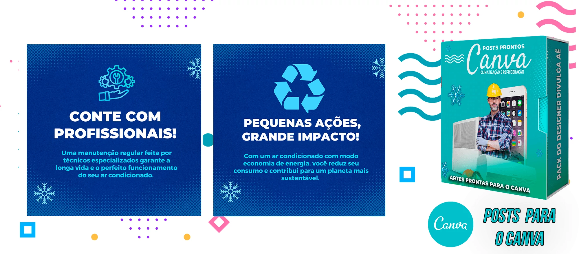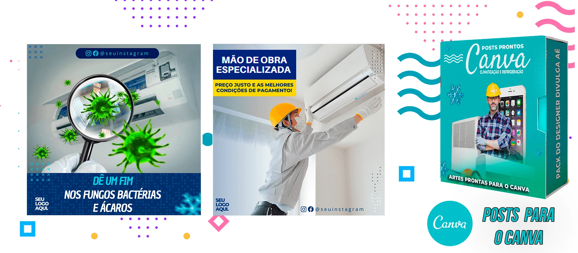 Pack de Posts Prontos para o Canva – Climatização e Refrigeração com Legendas